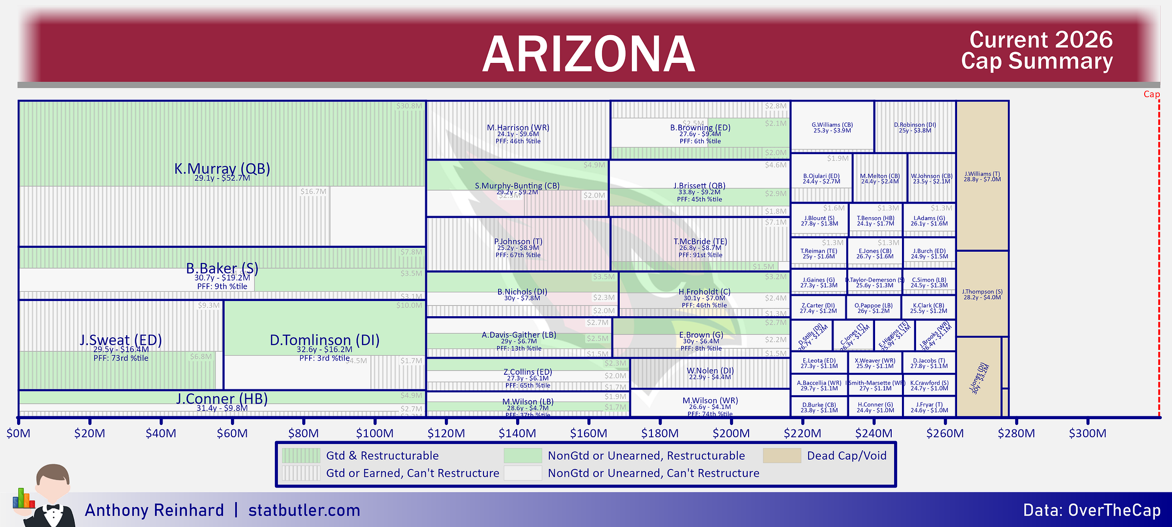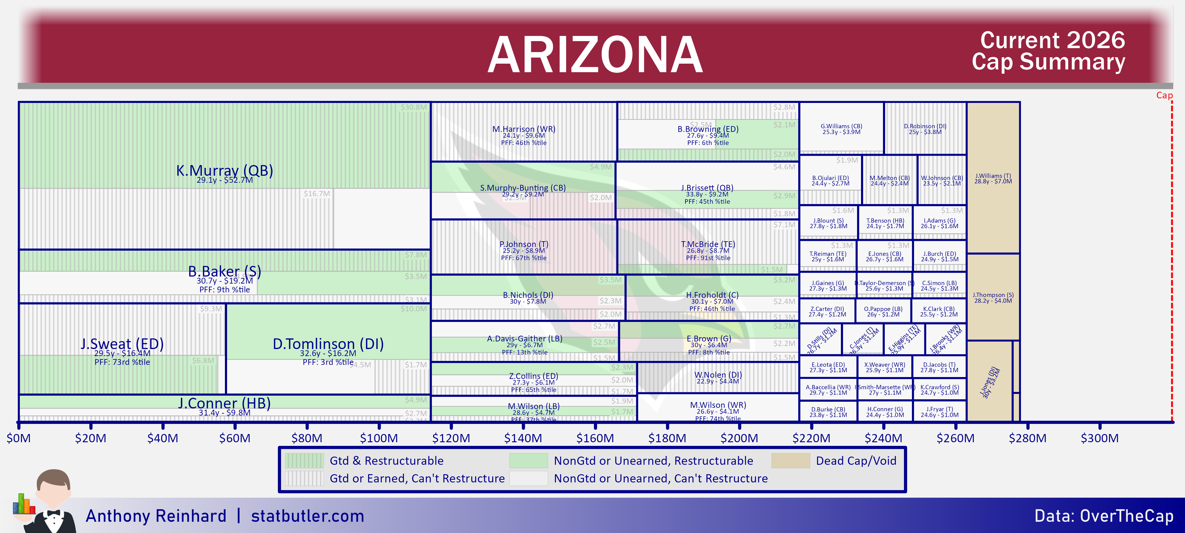 statbutler.com will be compiling offseason previews for all 32 teams in the lead up to free agency. Feel free to share any of the text/visuals below with attribution. All underlying contract data was collected by overthecap.com.