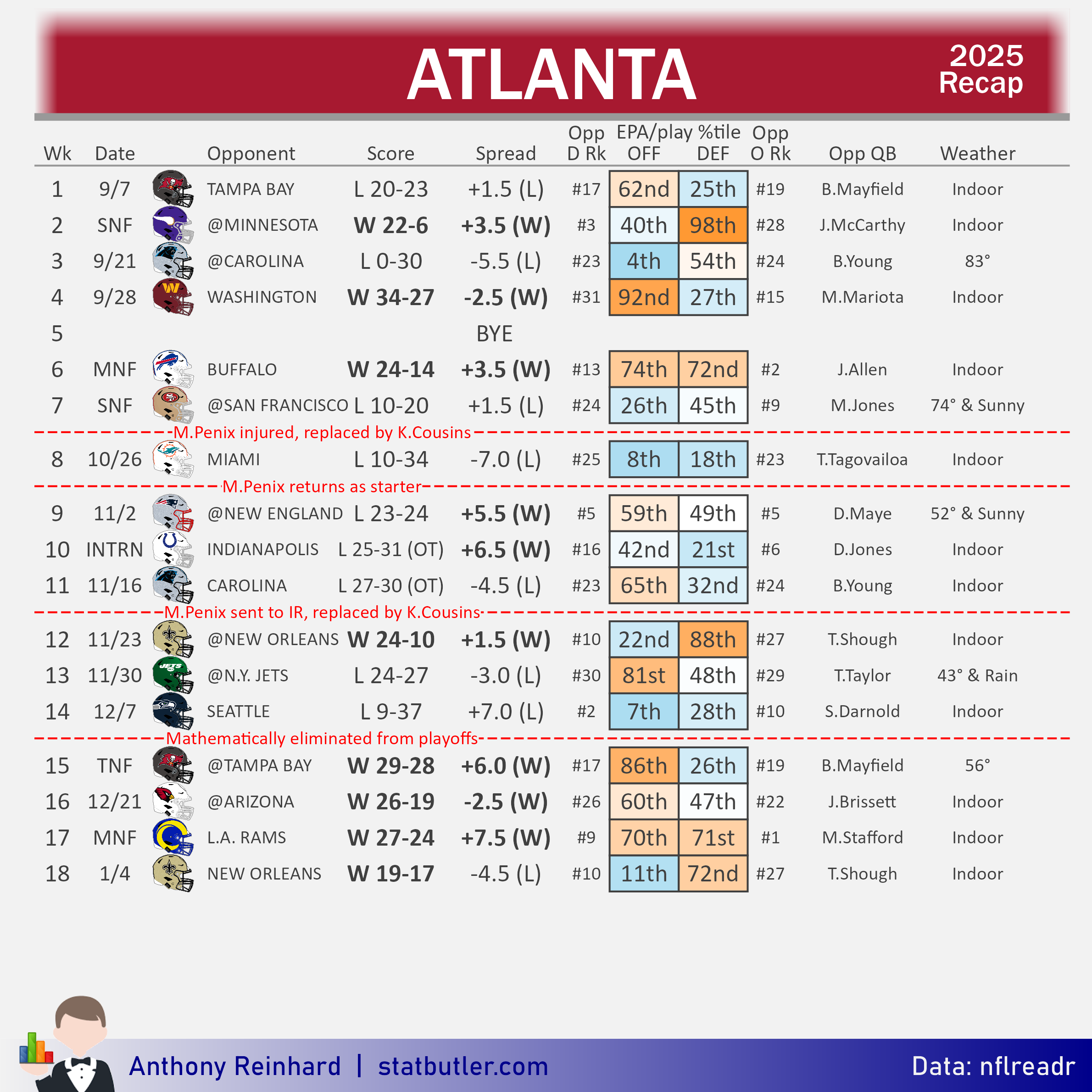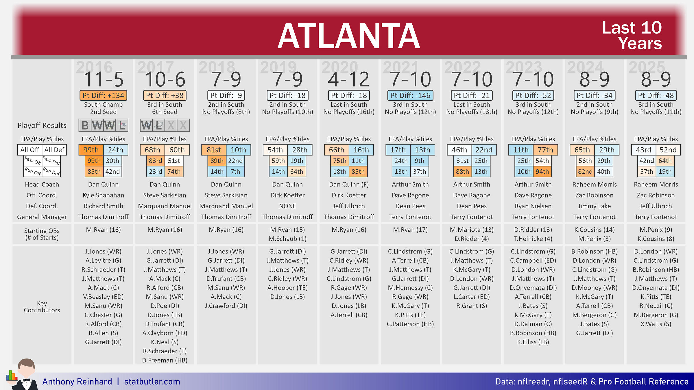 The Atlanta Falcons replaced their head coach & general manager at the conclusion of the 2025 season in an effort to salvage a young roster