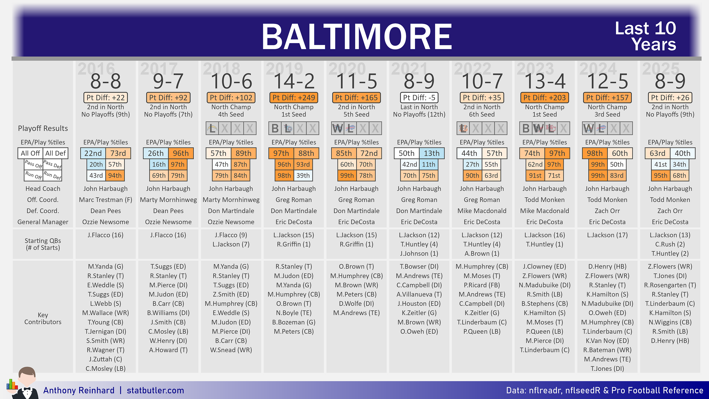For the second time in the 8 years since drafting Lamar Jackson, Baltimore missed out on the playoffs. Unfortunately, that success has only translated to a single trip to a conference championship game.