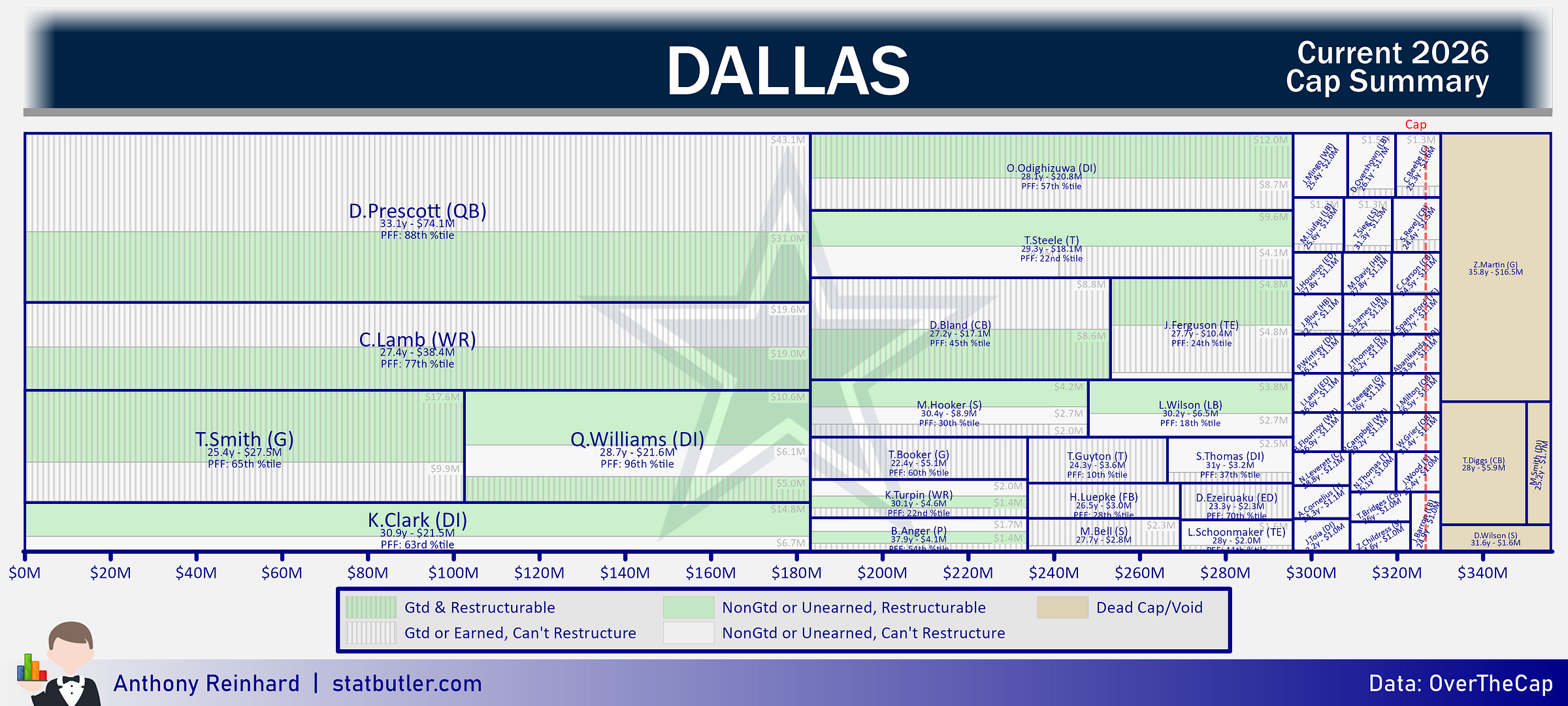 statbutler.com will be compiling offseason previews for all 32 teams in the lead up to free agency. Feel free to share any of the text/visuals below with attribution. All underlying contract data was collected by overthecap.com.
