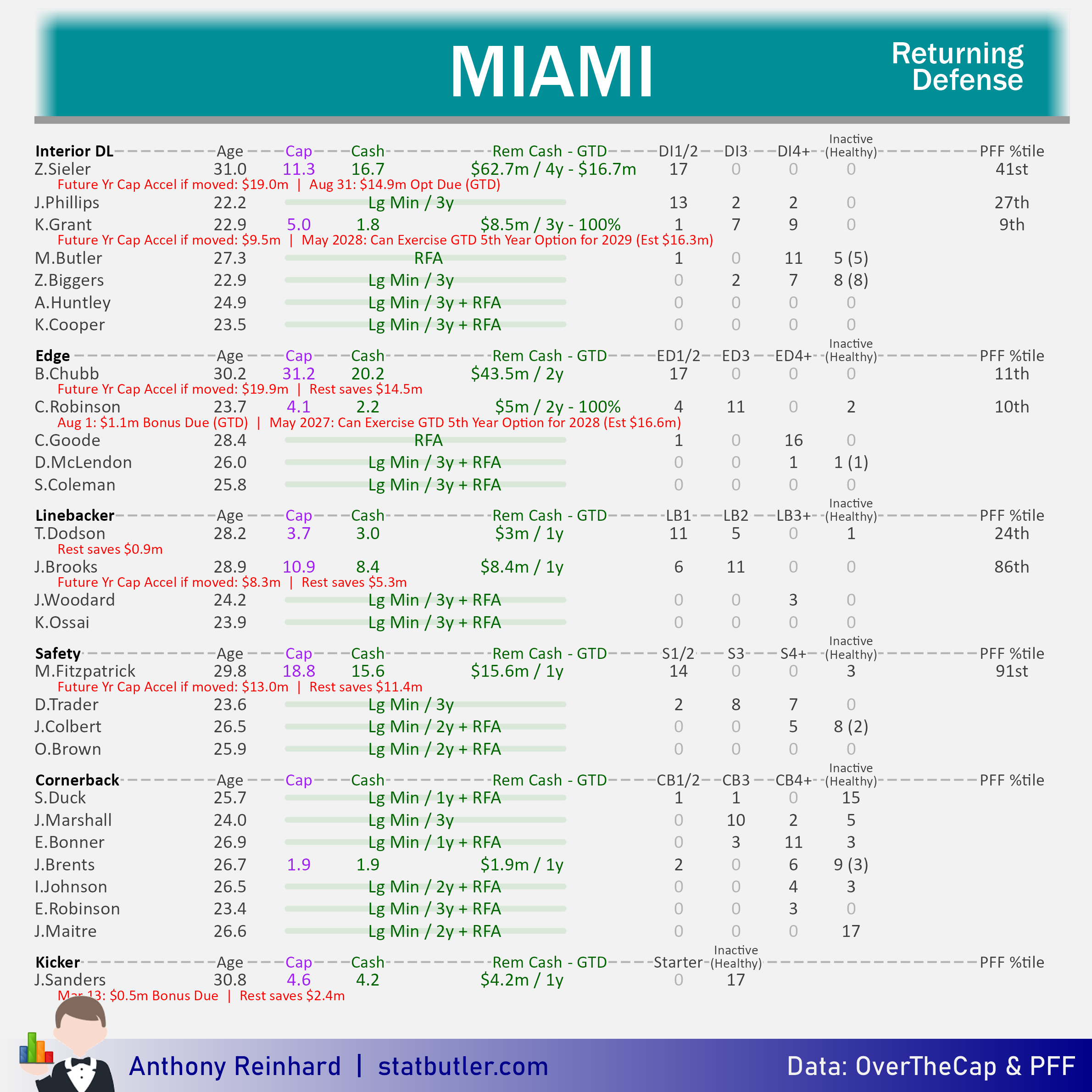 With just $28.9m in projected excess cap space (the amount I think the team can dedicate to extensions and free agents), Miami is in a extremely undesirable position. There is still a large chunk of Tua’s cap hit that will need to hit the cap in the next year or two and just not enough resources to fill the holes. It’ll take some time to get things back on track.