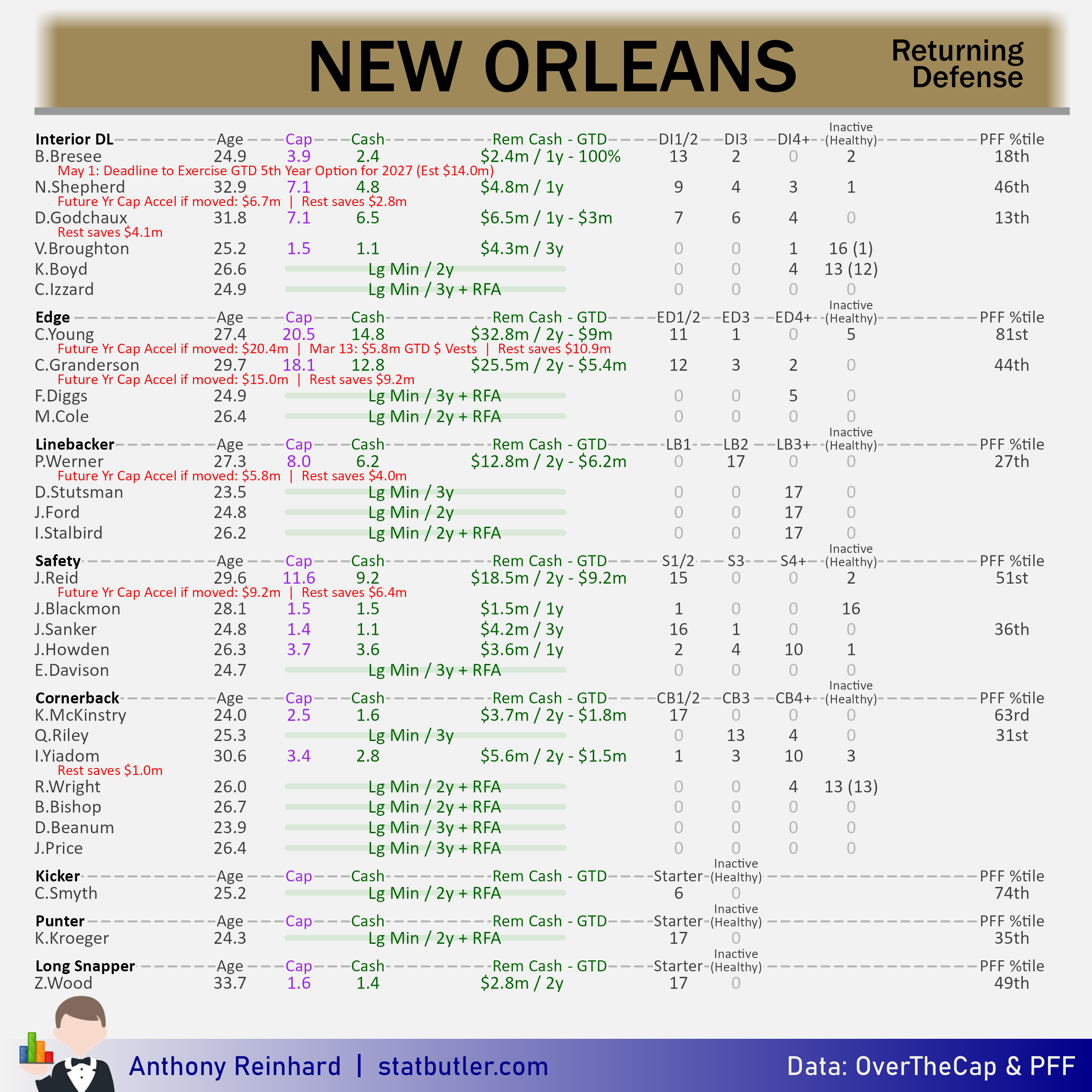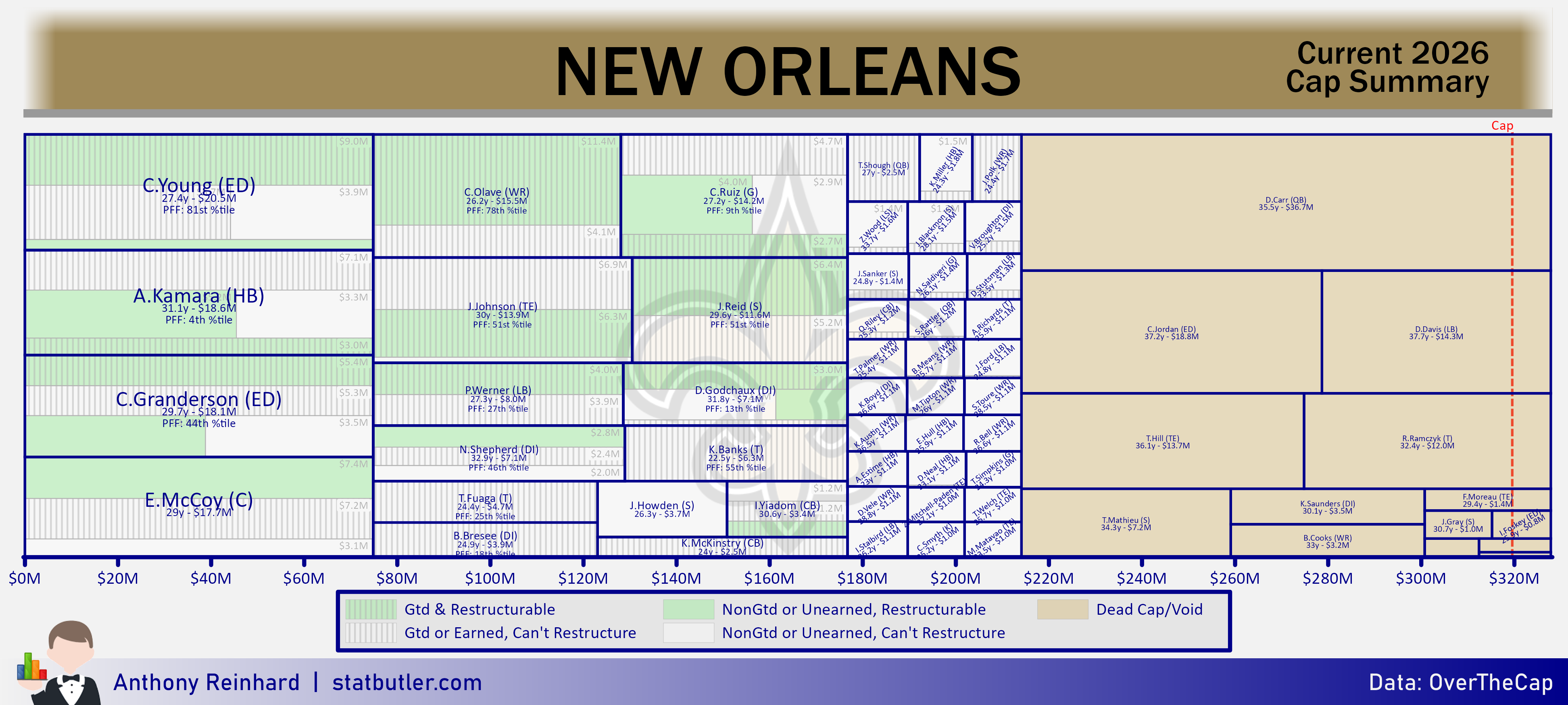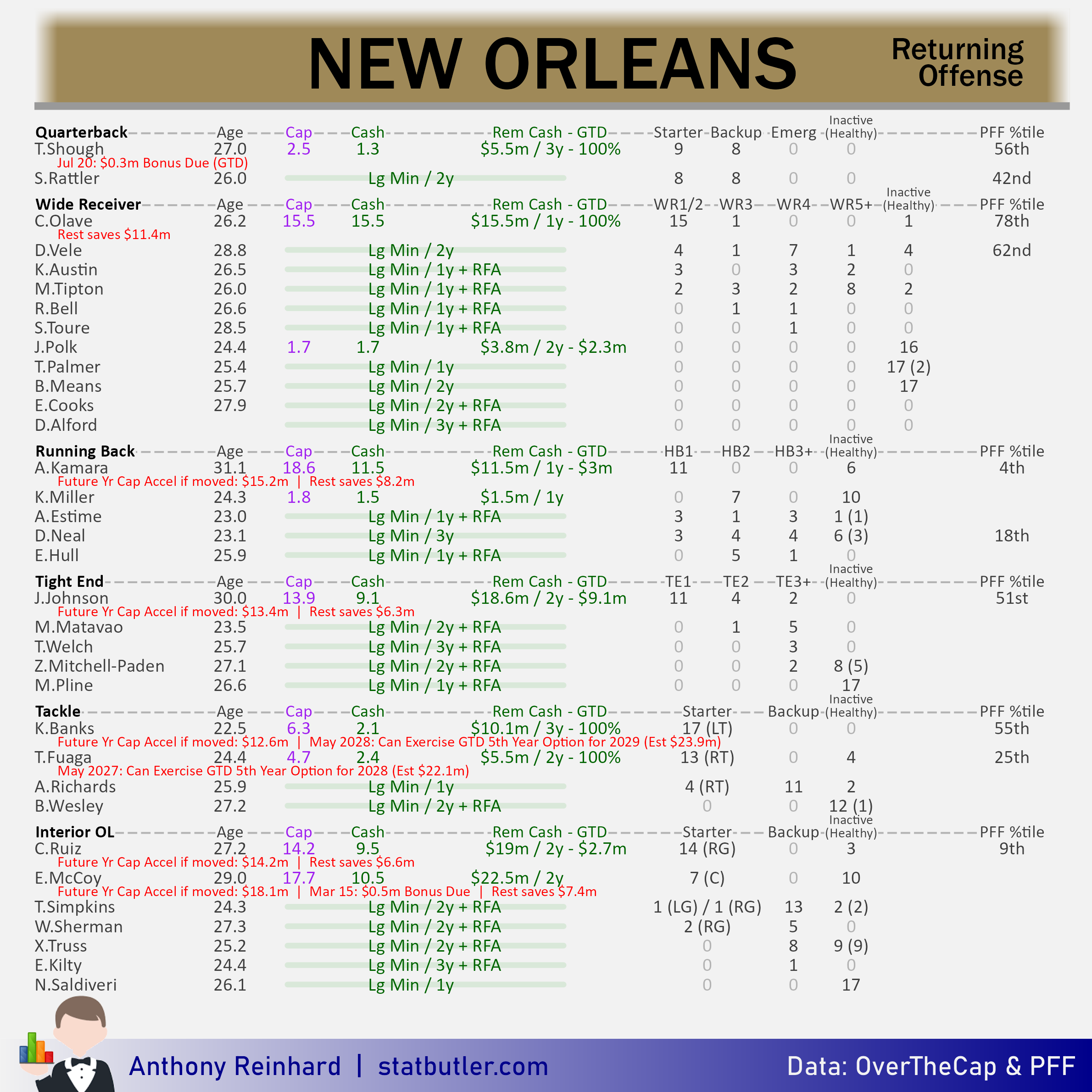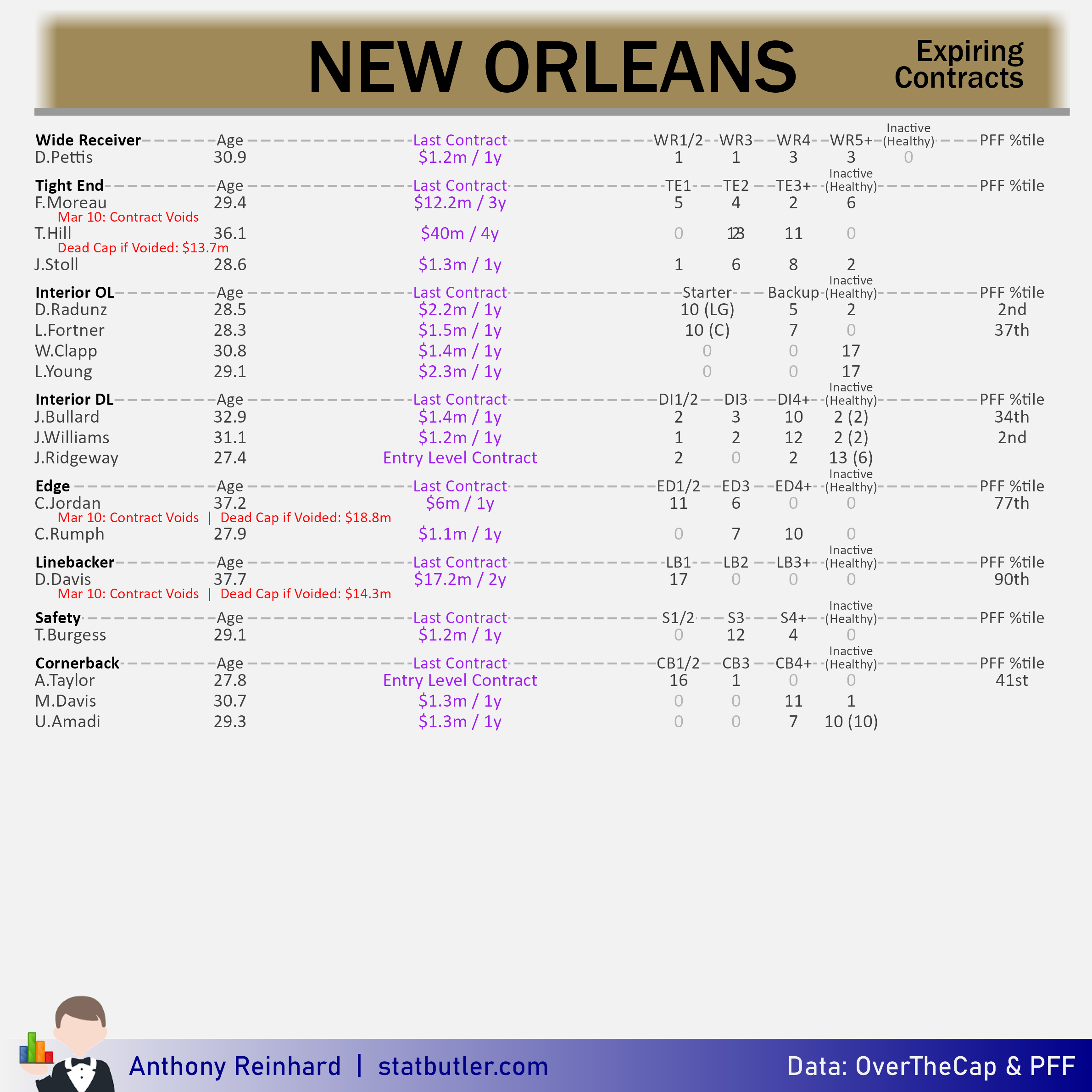 statbutler.com will be compiling offseason previews for all 32 teams in the lead up to free agency. Feel free to share any of the text/visuals below with attribution. All underlying contract data was collected by overthecap.com.