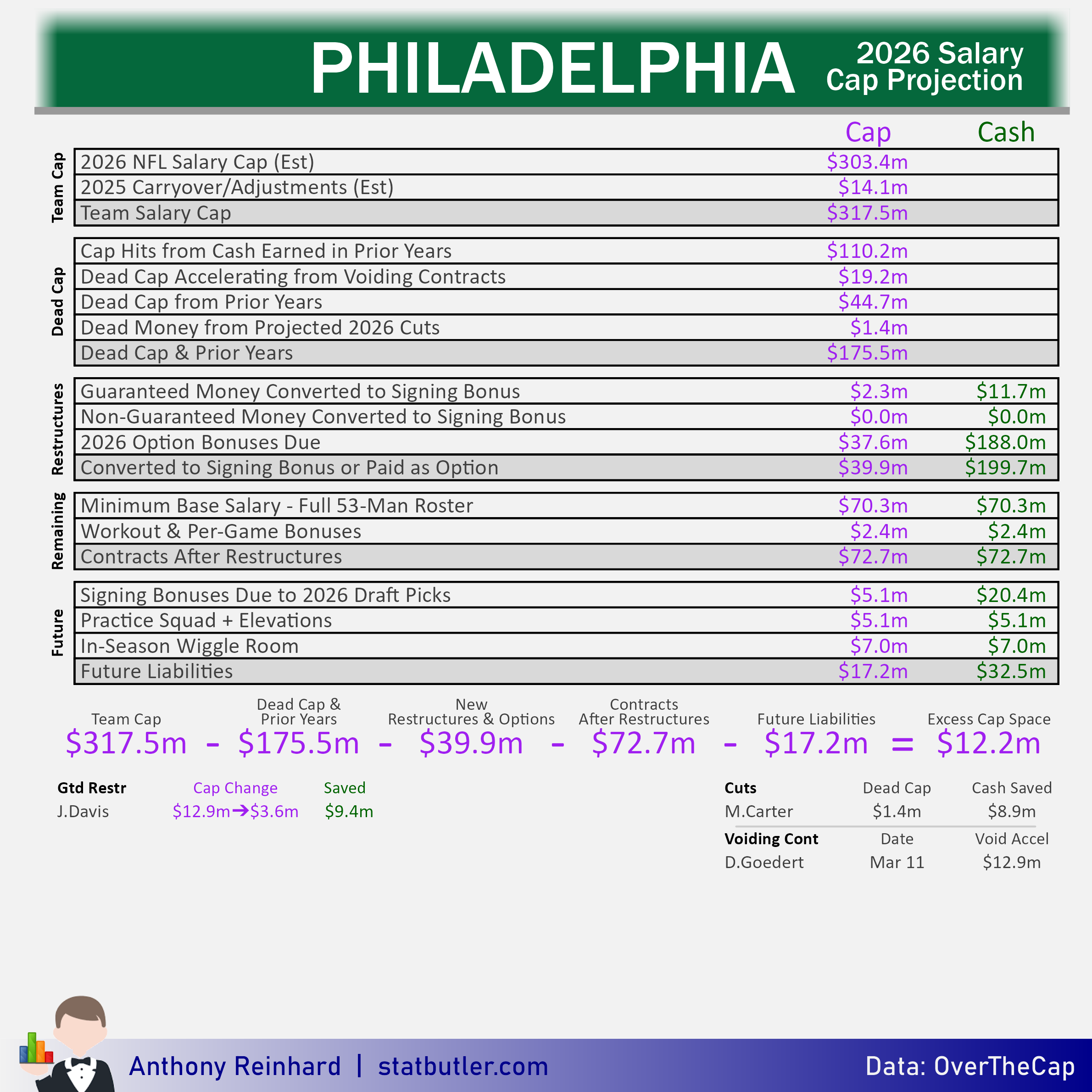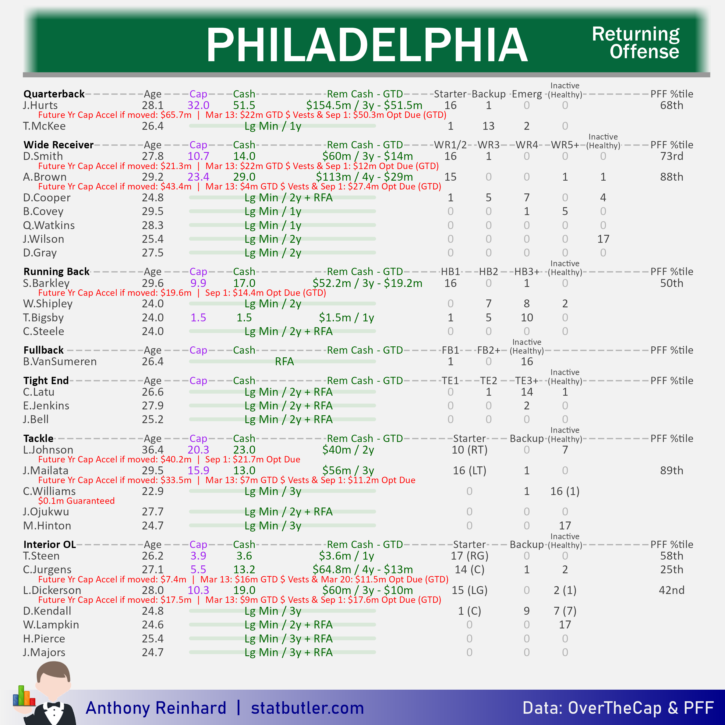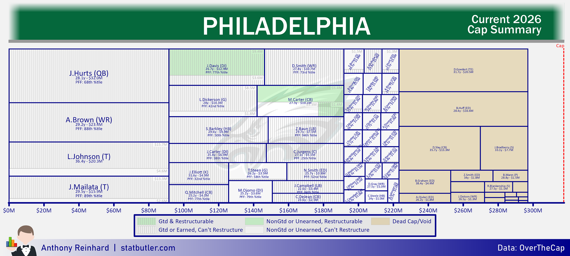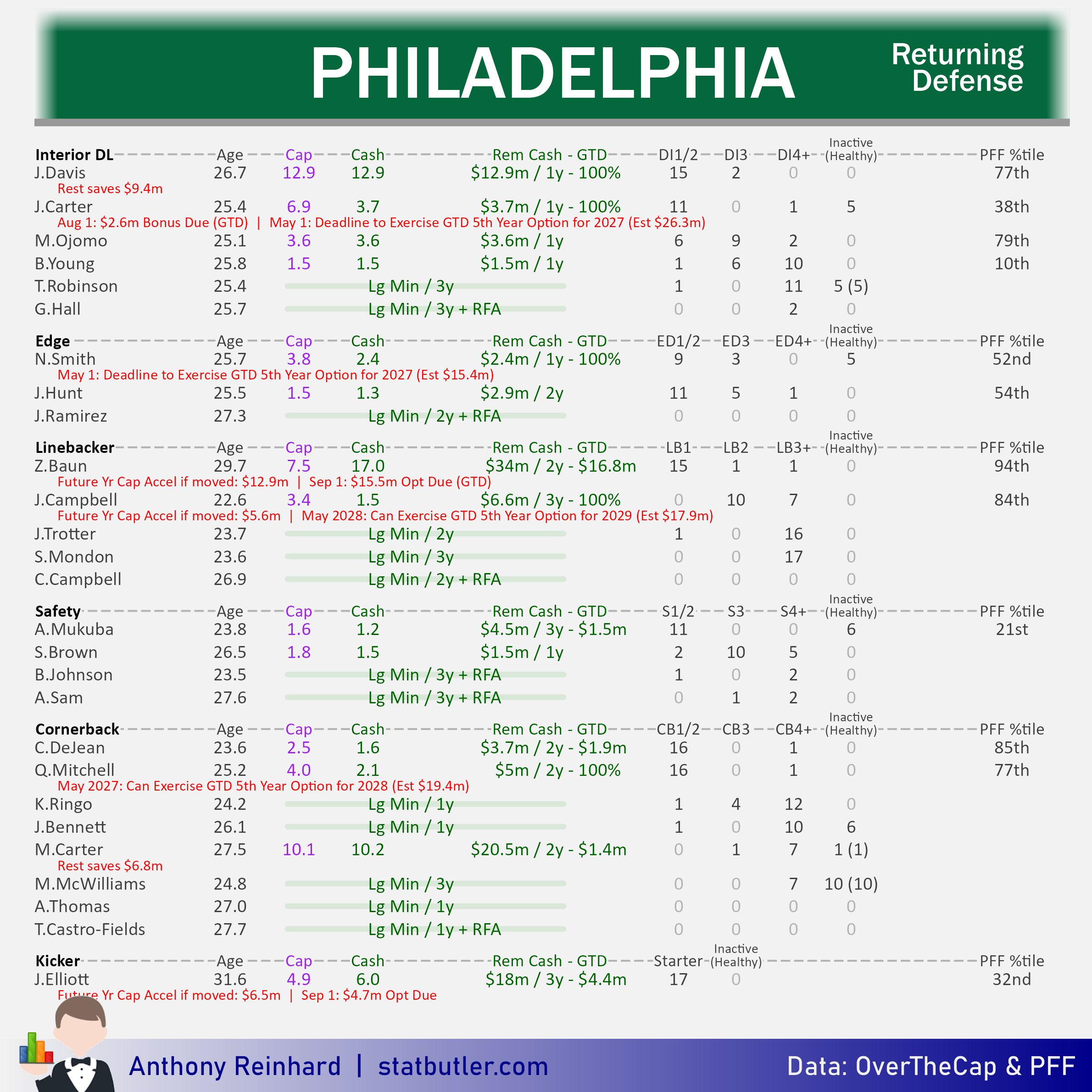 Unlike the Saints from a few years ago, Philadelphia’s setup essentially assumes a “restructure” in advance through option bonuses. It is a different path to the same destination. The Eagles approach makes very clear though how much maneuverability they really have.