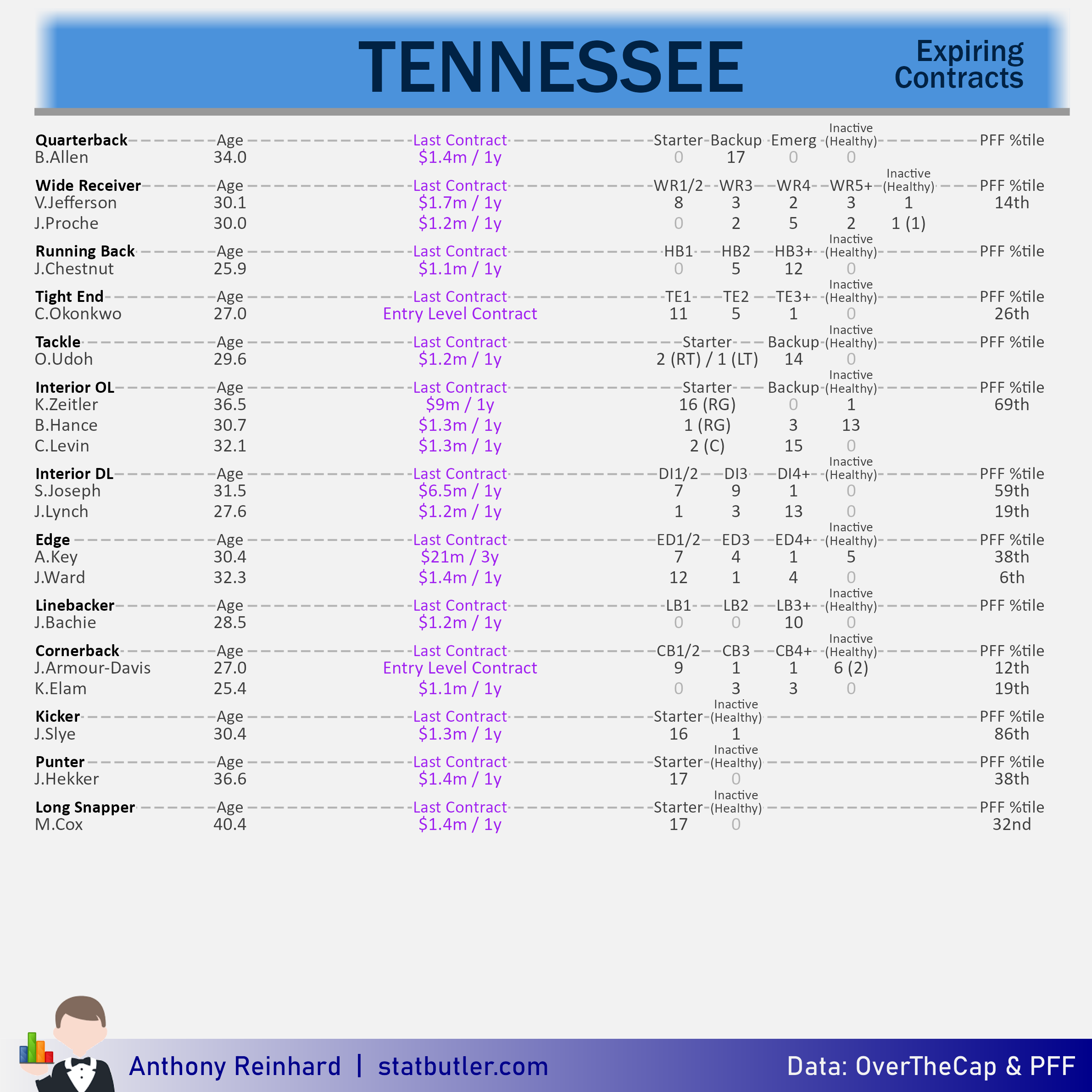 Joey Slye might be among the only free agents that Tennessee gives serious consideration to bringing back. I fear Kevin Zeitler (36) and Sebastian Joseph-Day (31) may be too old for this team to spend serious money on. Perhaps they’ll make an exception for Arden Key given how desperate they will be for edge rusher talent.