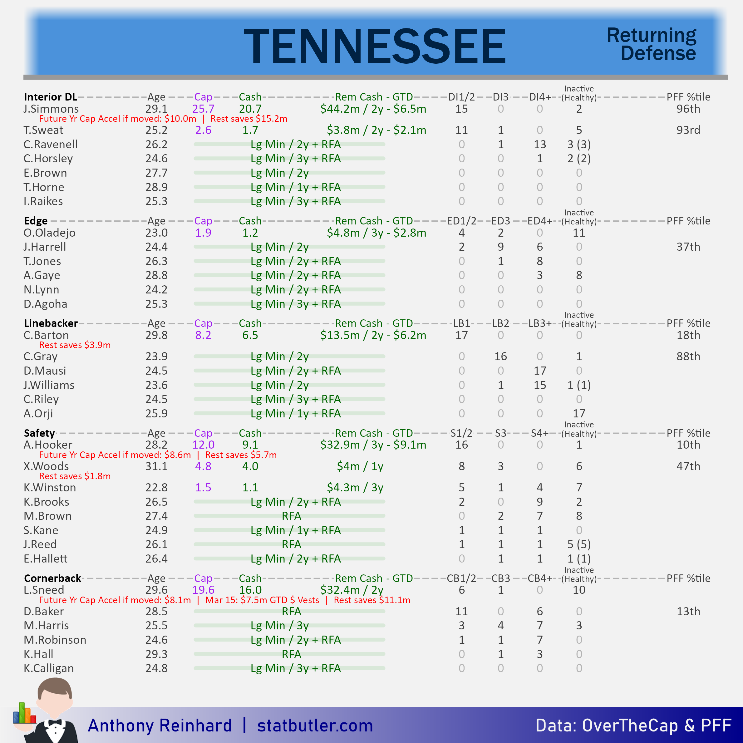 Cap space shouldn’t be a consideration for Tennessee in any form. Their focus should be getting good young players at good numbers as frequently as they can.