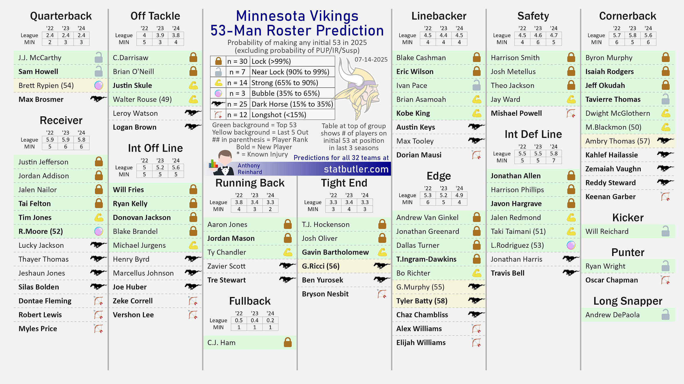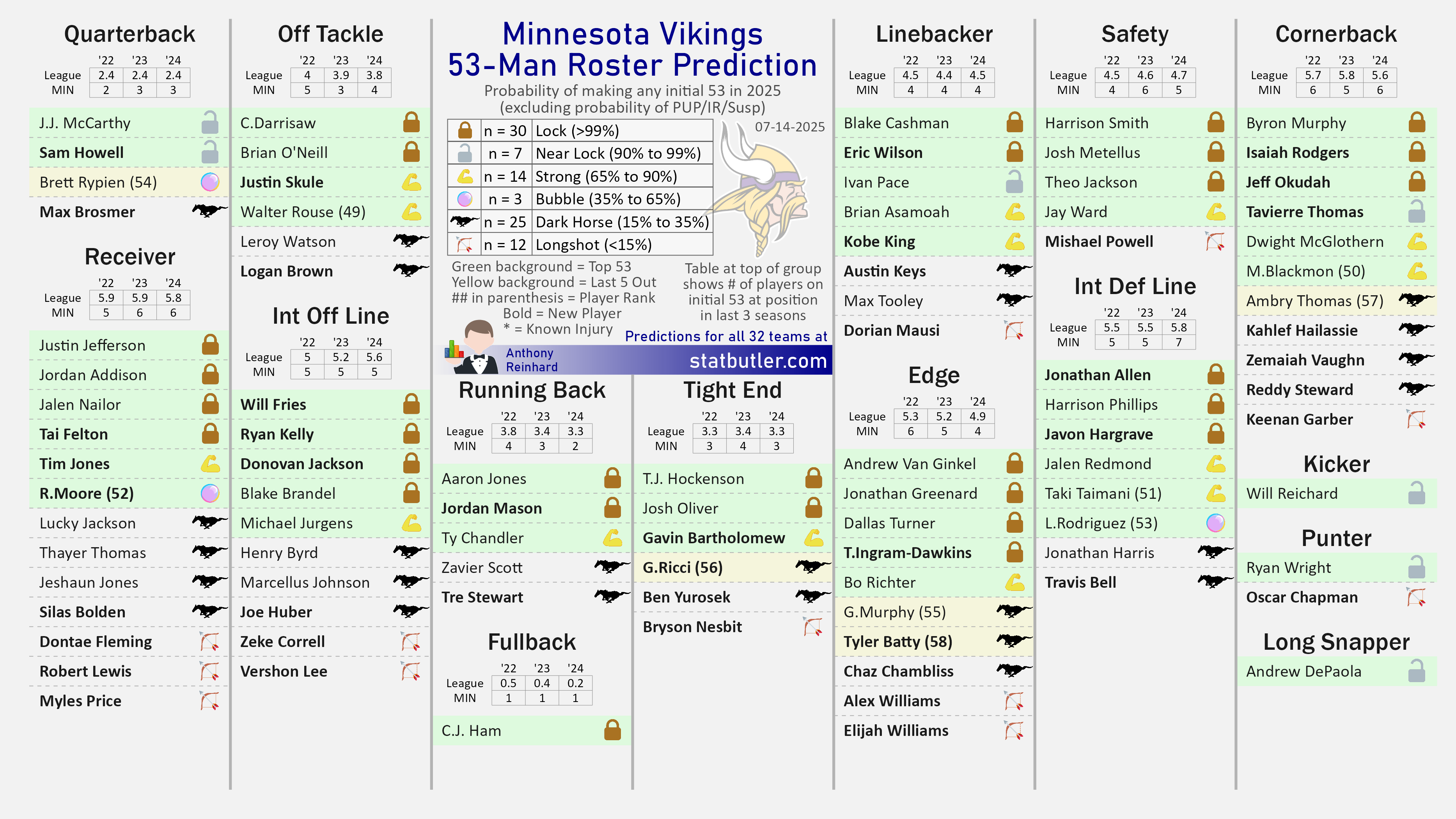 My initial roster projections for the Vikings, Packers, Lions, and Bears