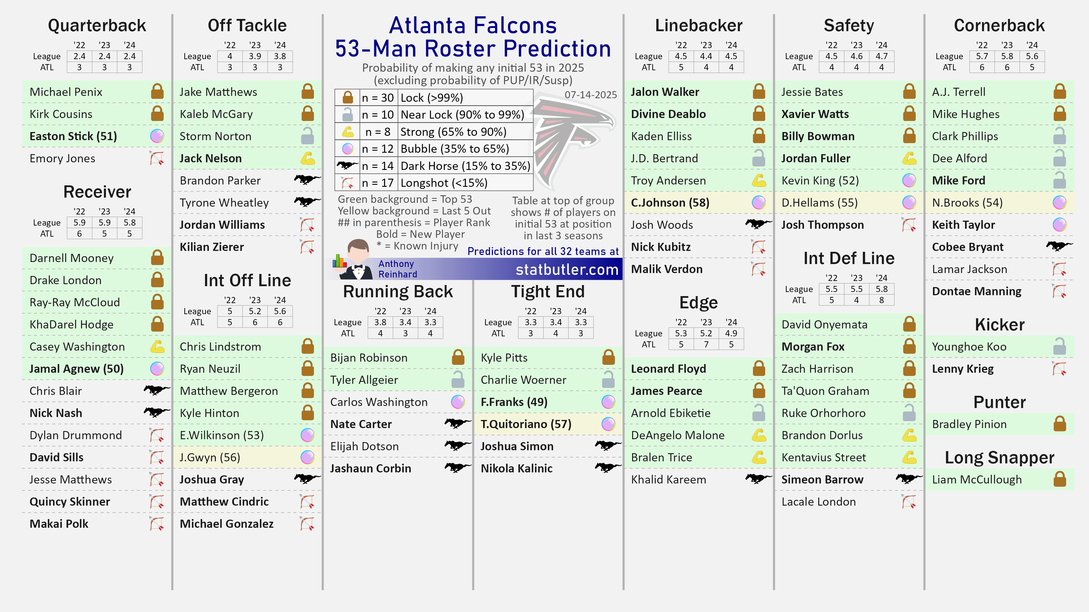 32 53s: NFC South Pre-Training Camp 53-man Roster Projection