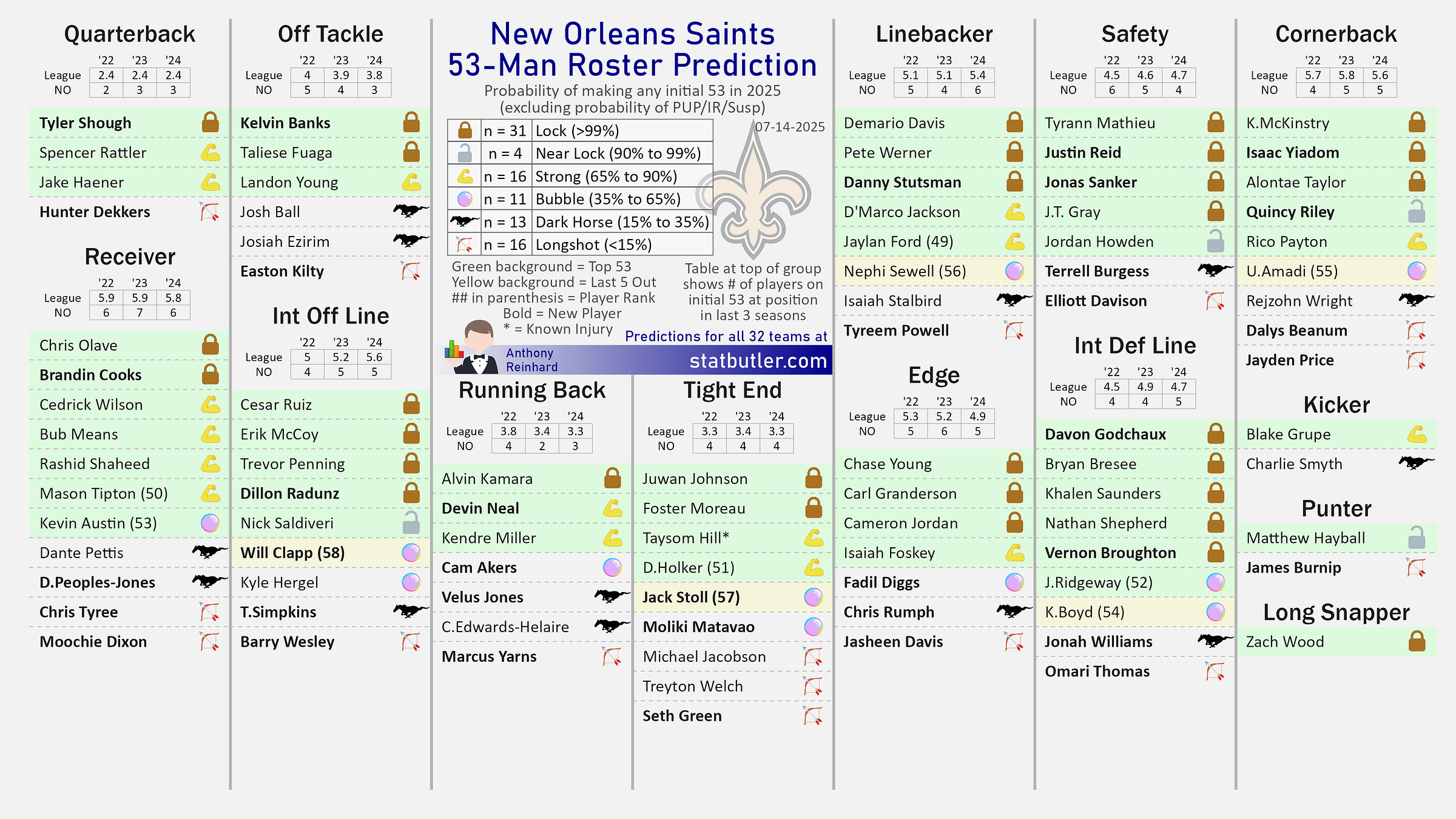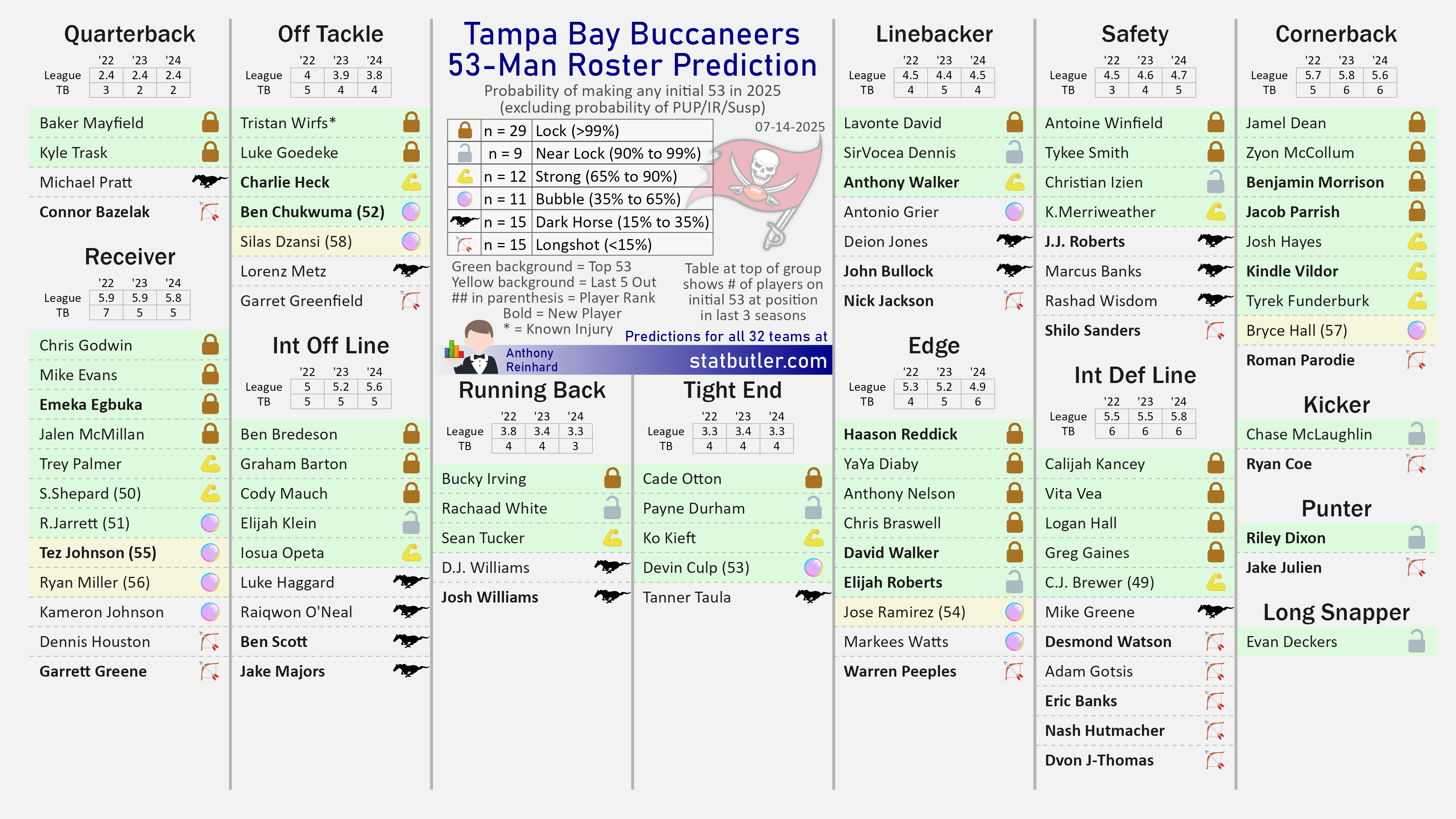My initial roster projections for the Panthers, Saints, Bucs, and Falcons