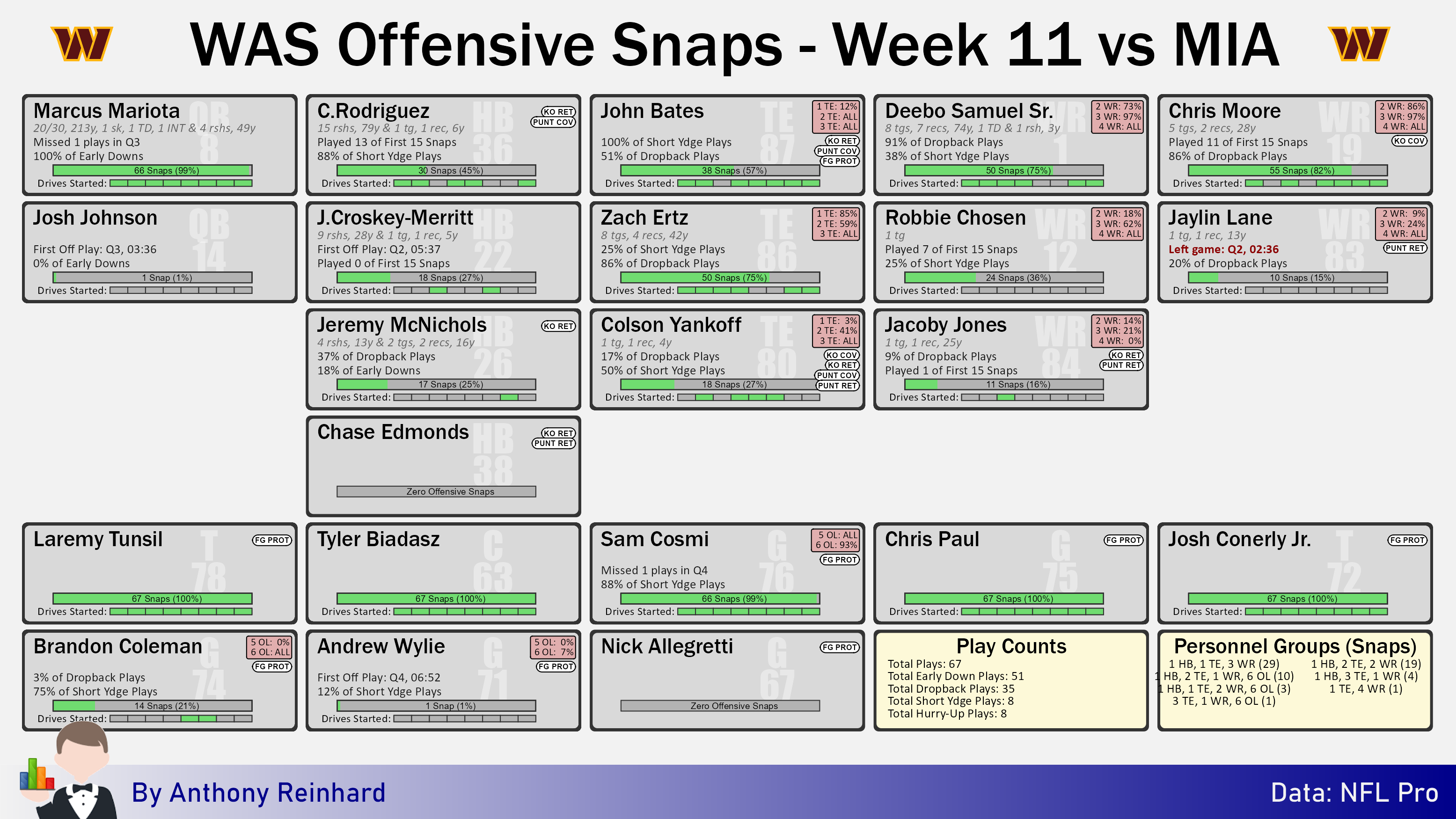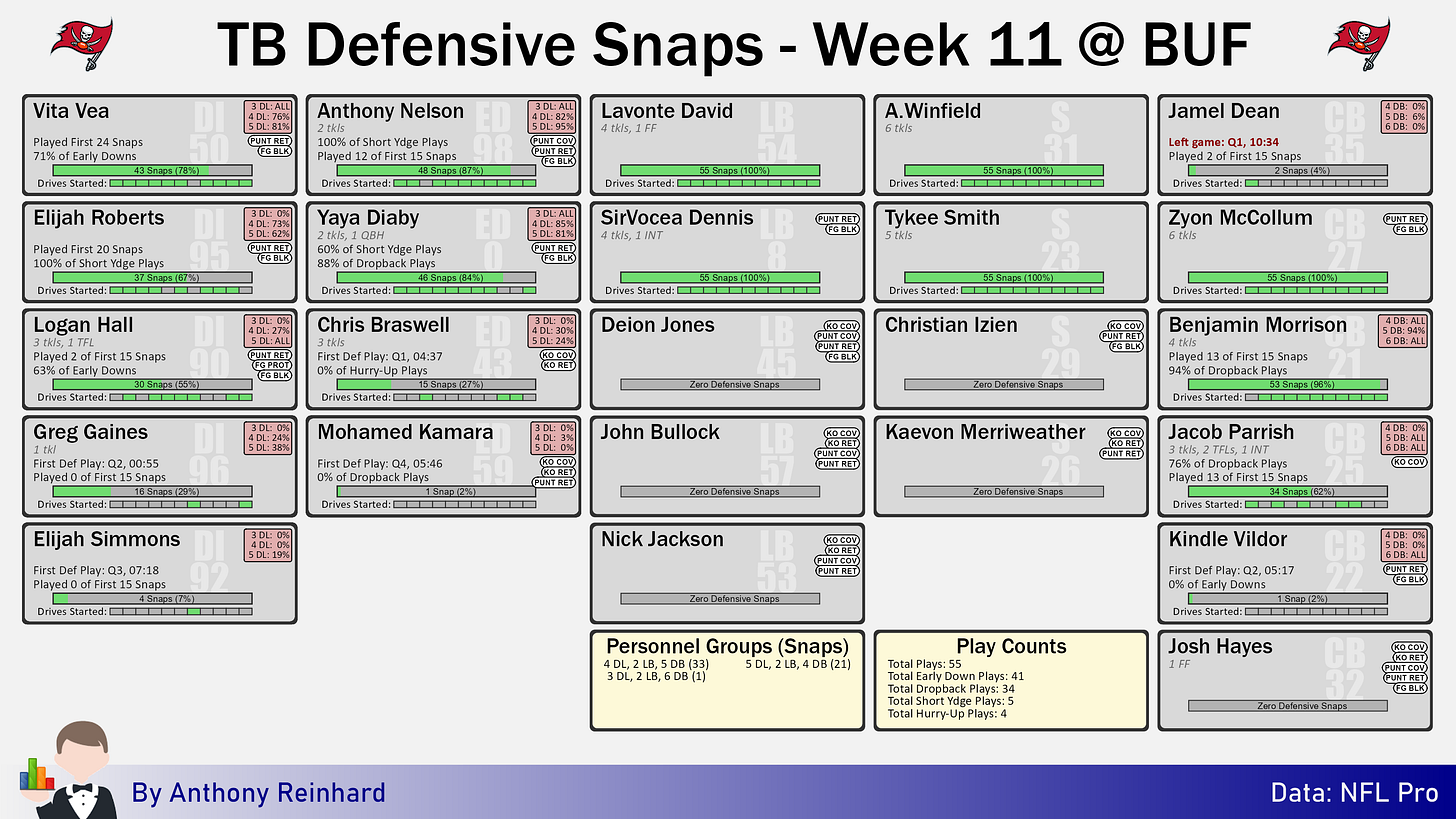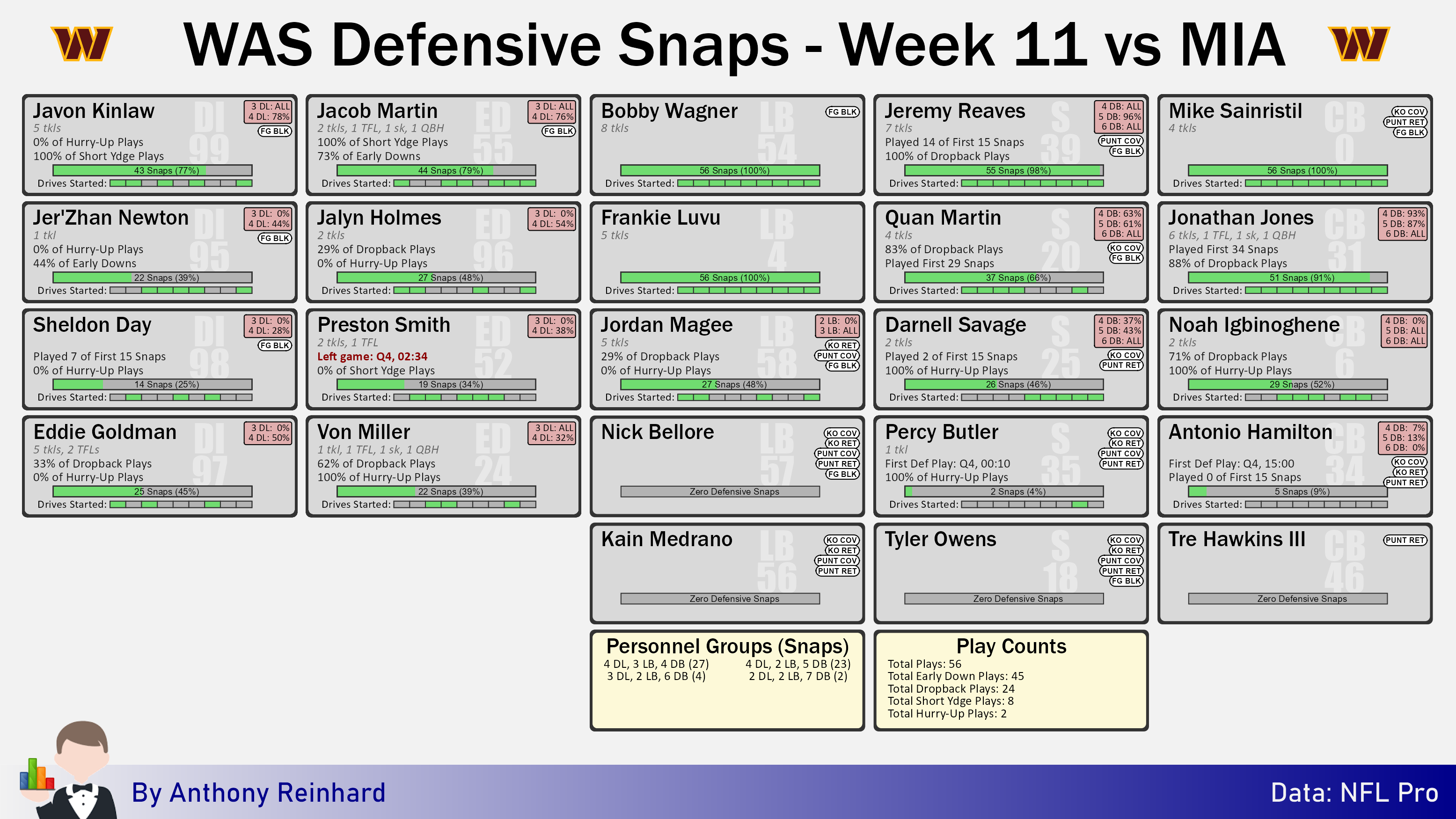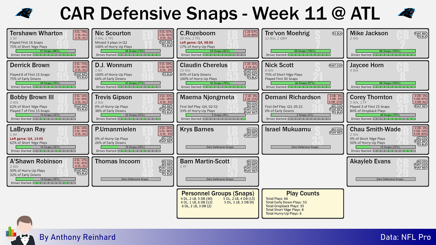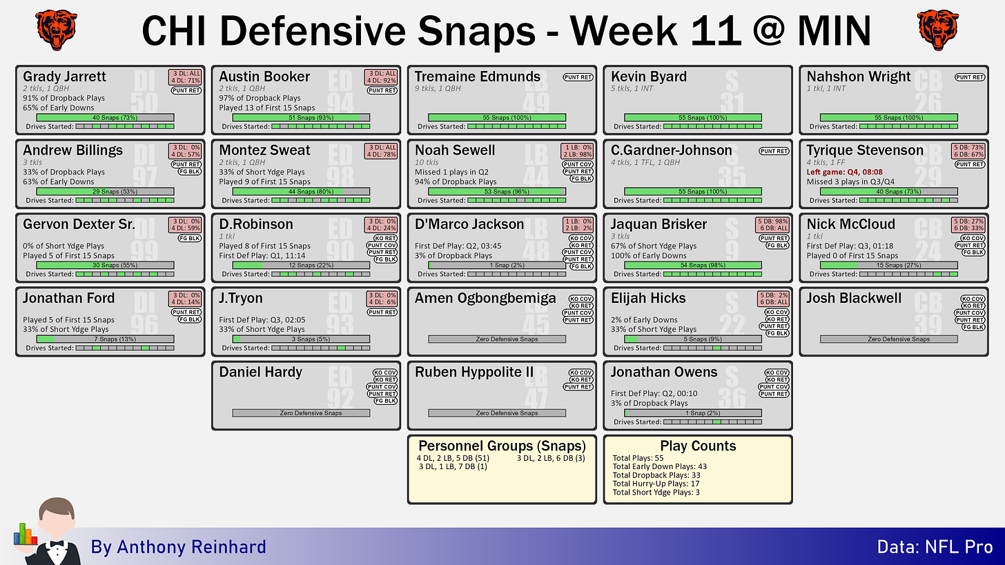Snap Counts: Week 11Snap Count graphs for each team in Week 11Anthony ReinhardNov 17, 2025ShareNYJ-NEWAS-MIACAR-ATLTB-BUFLAC-JAXCHI-MINGB-NYGCIN-PITHOU-TENSF-ARISEA-LABAL-CLEKC-DENDET-PHIDAL-LVComing Soon!Thanks for reading!SubscribePrevious