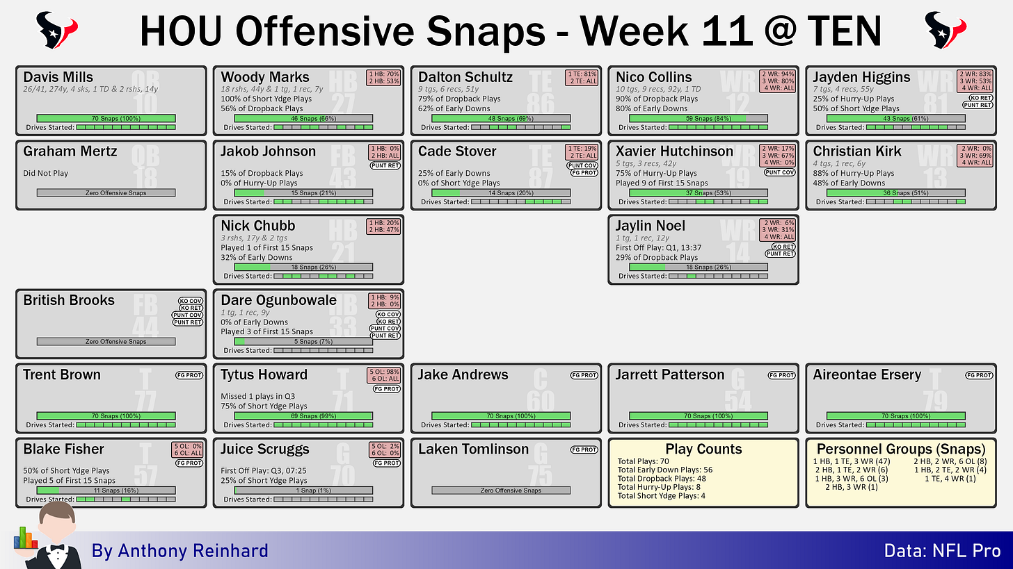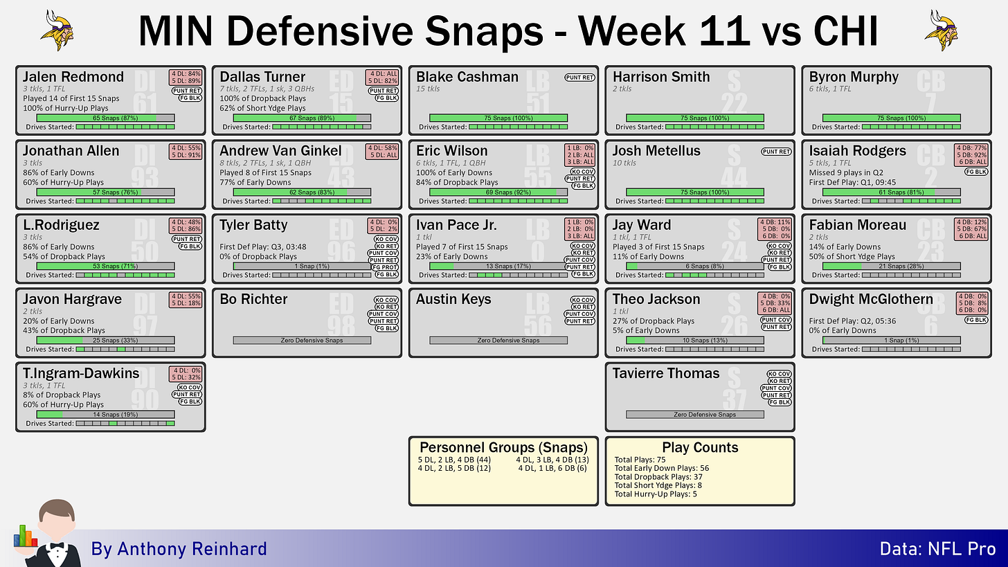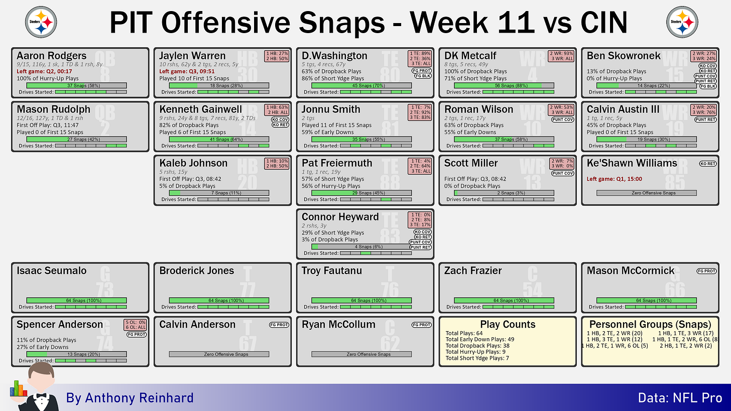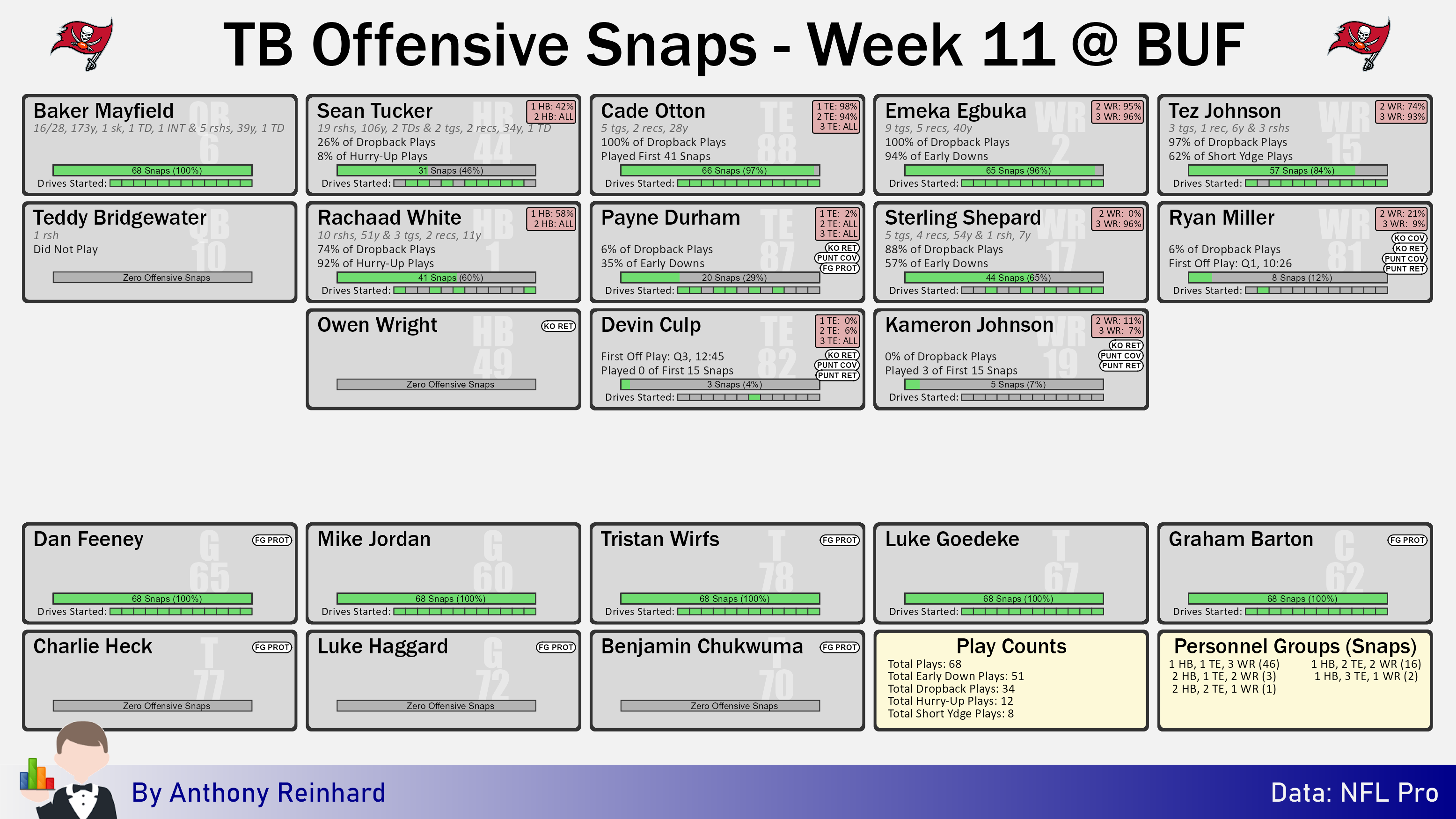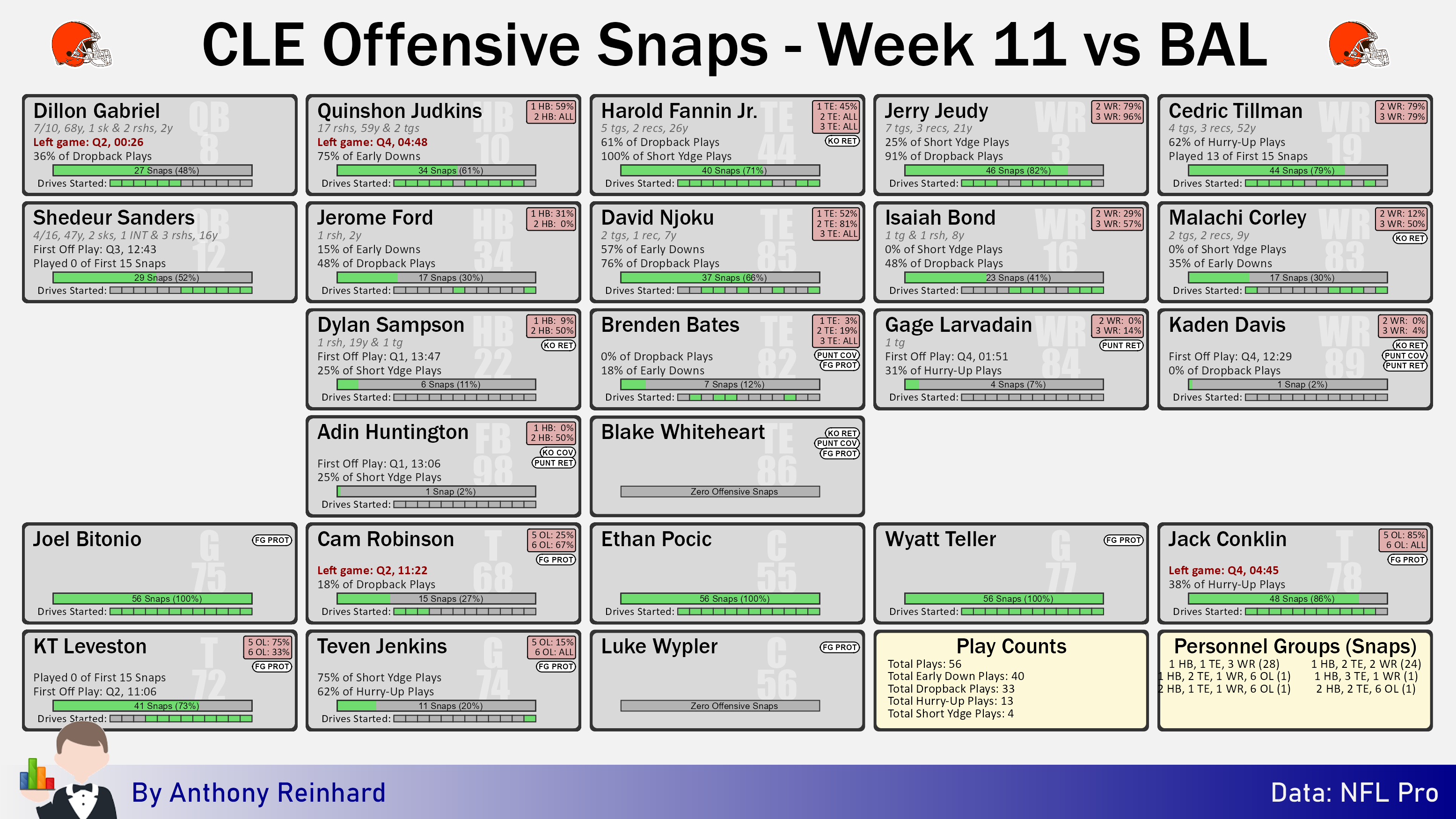 Snap Counts: Week 11Snap Count graphs for each team in Week 11Anthony ReinhardNov 17, 2025ShareNYJ-NEWAS-MIACAR-ATLTB-BUFLAC-JAXCHI-MINGB-NYGCIN-PITHOU-TENSF-ARISEA-LABAL-CLEKC-DENDET-PHIDAL-LVComing Soon!Thanks for reading!SubscribePrevious