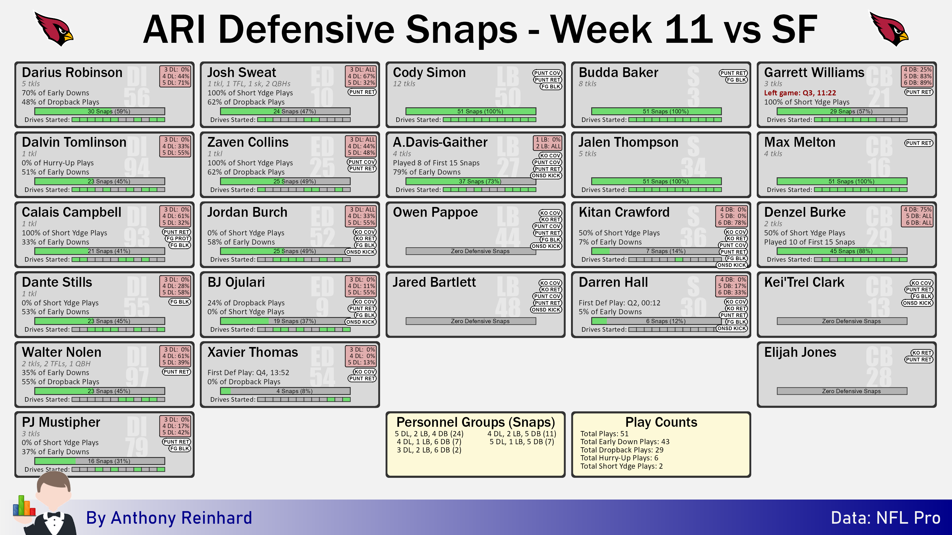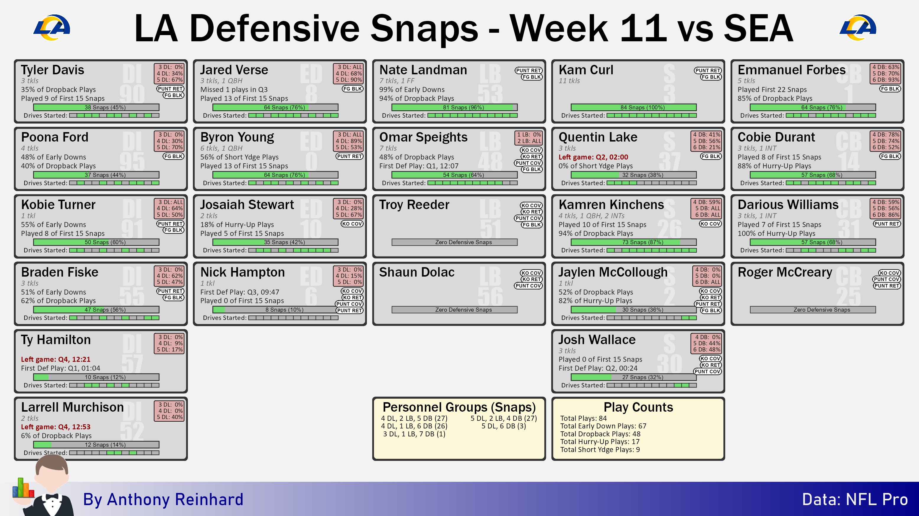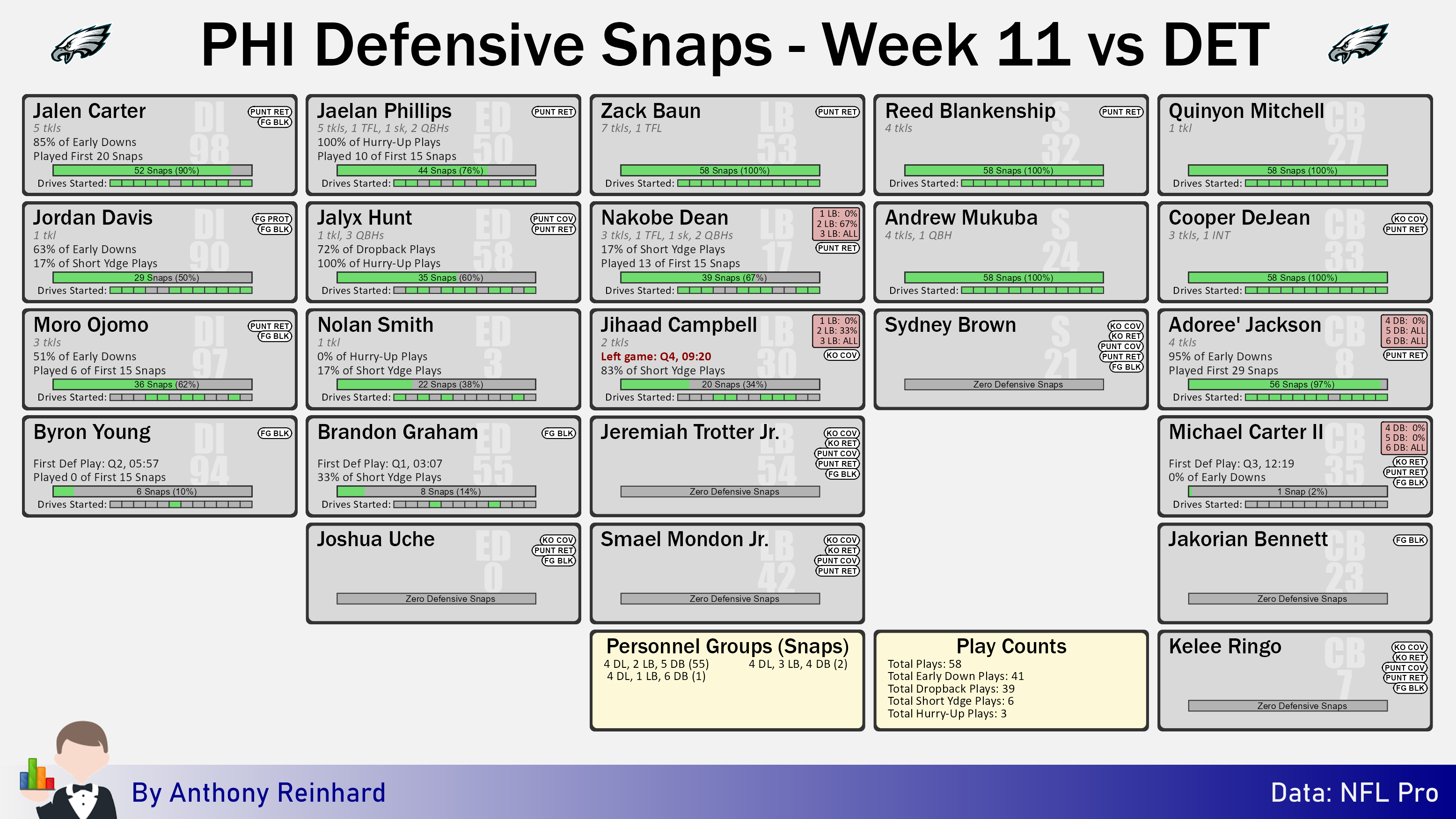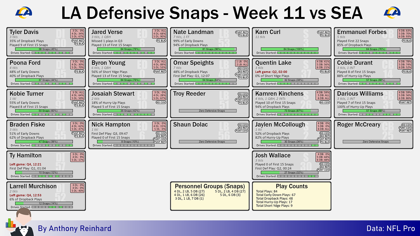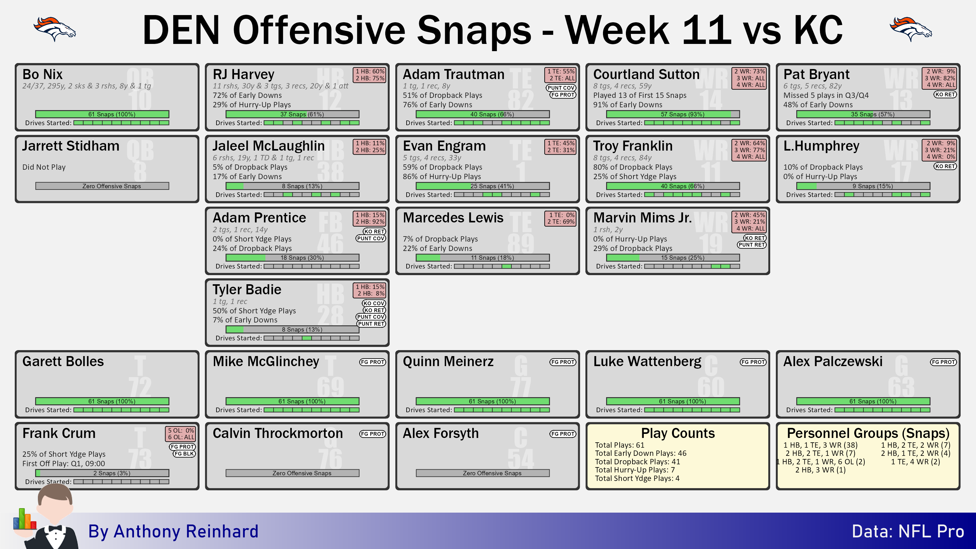 Snap Counts: Week 11Snap Count graphs for each team in Week 11Anthony ReinhardNov 17, 2025ShareNYJ-NEWAS-MIACAR-ATLTB-BUFLAC-JAXCHI-MINGB-NYGCIN-PITHOU-TENSF-ARISEA-LABAL-CLEKC-DENDET-PHIDAL-LVComing Soon!Thanks for reading!SubscribePrevious
