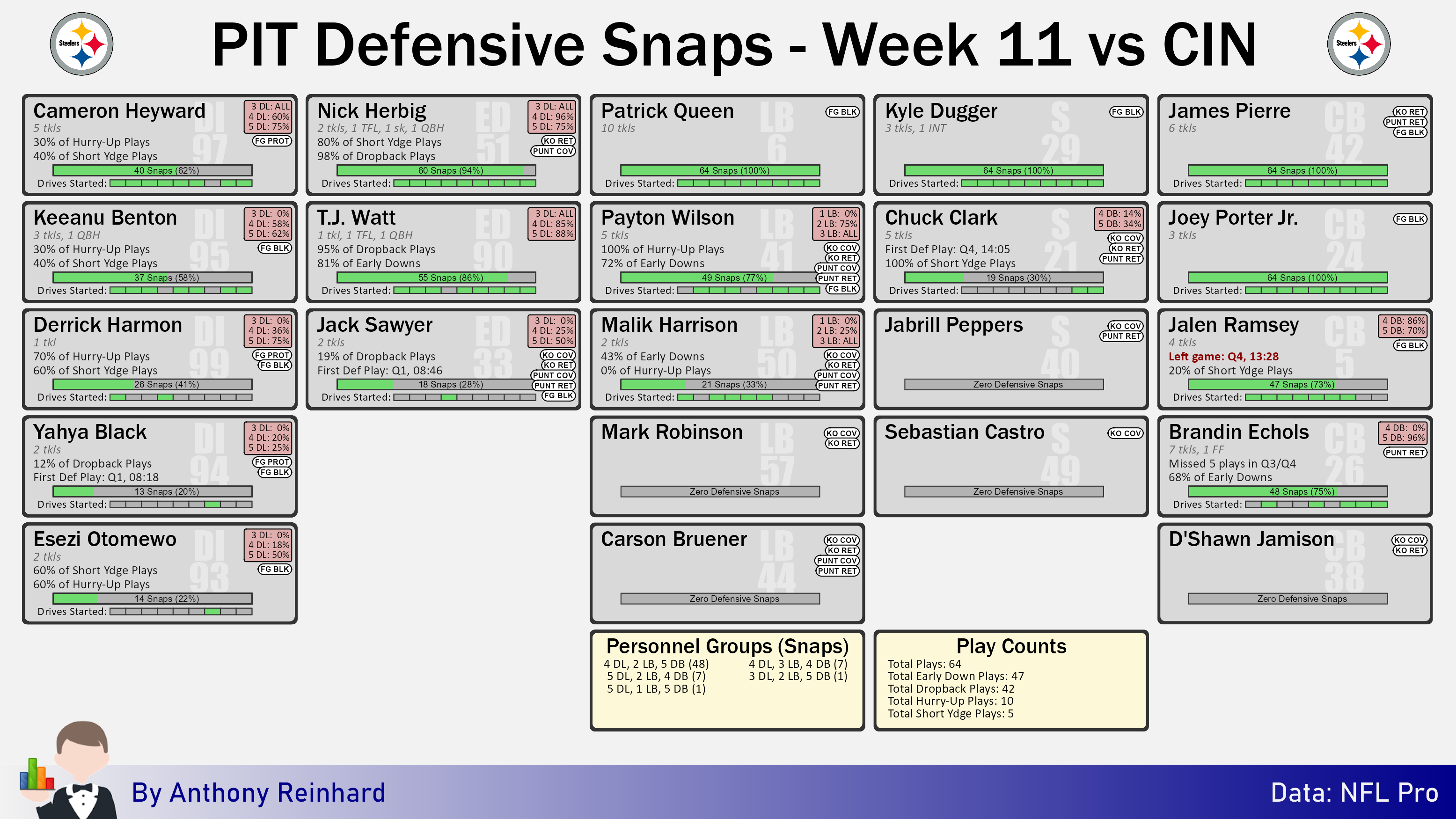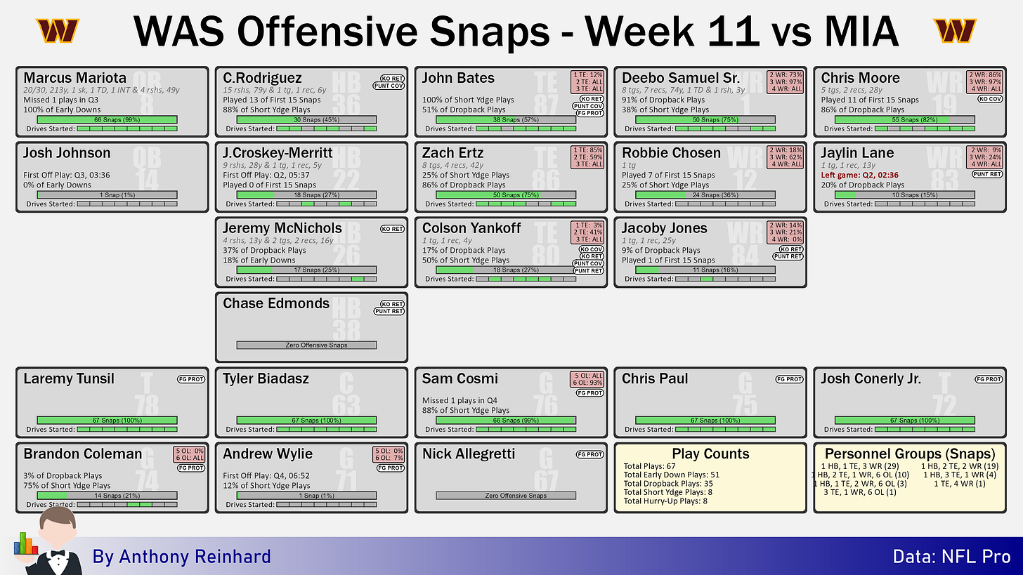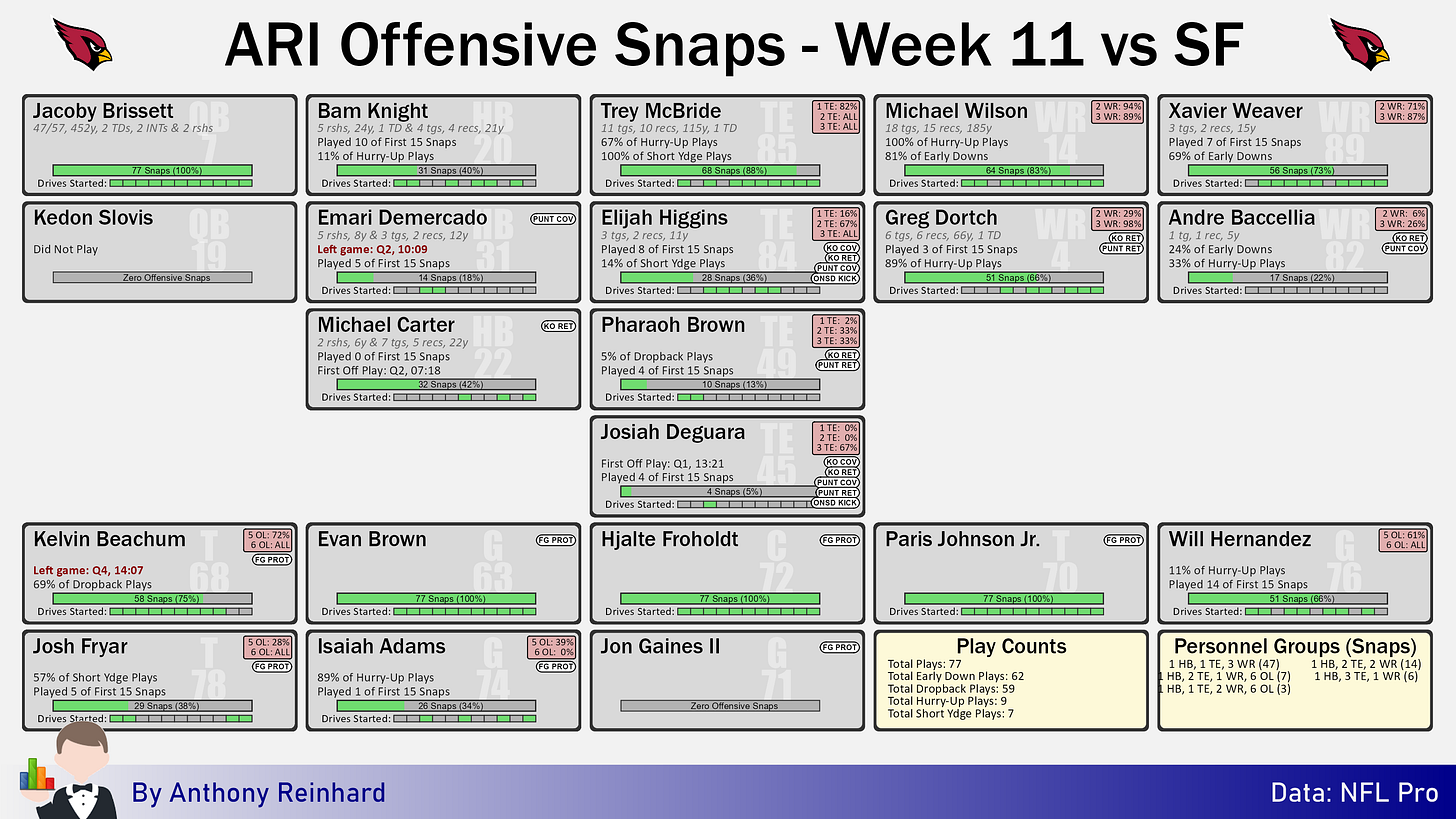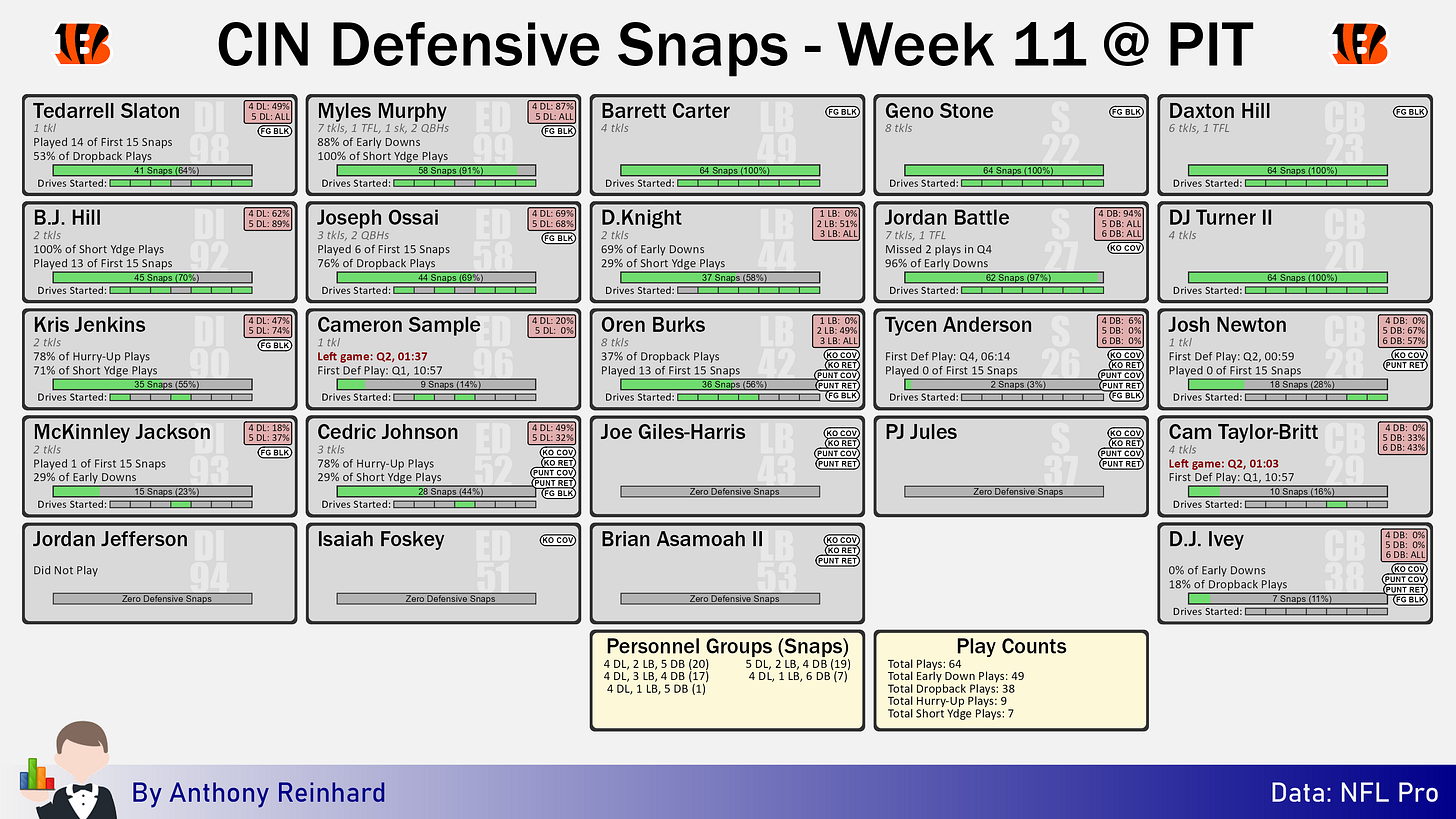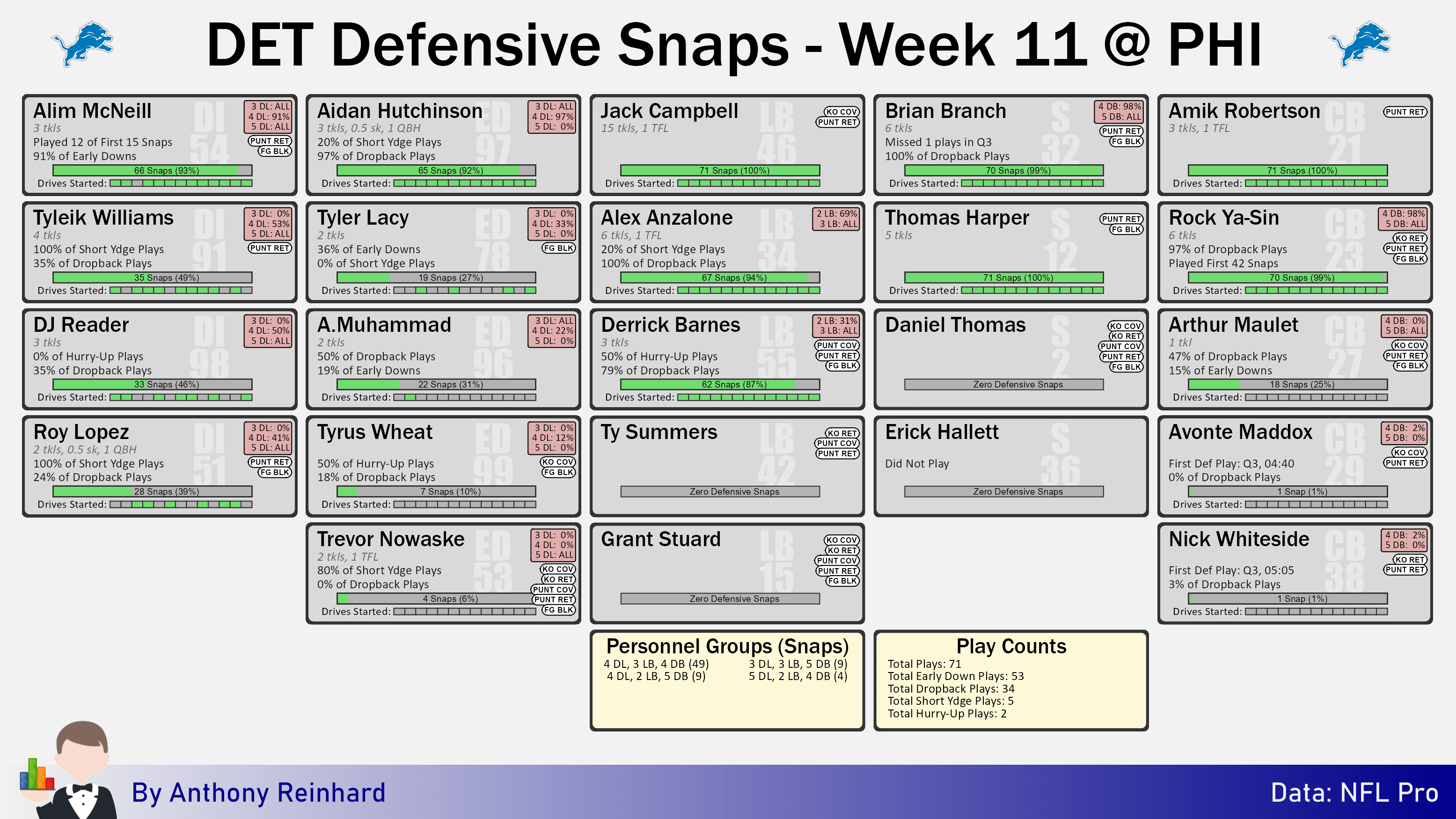 Snap Counts: Week 11Snap Count graphs for each team in Week 11Anthony ReinhardNov 17, 2025ShareNYJ-NEWAS-MIACAR-ATLTB-BUFLAC-JAXCHI-MINGB-NYGCIN-PITHOU-TENSF-ARISEA-LABAL-CLEKC-DENDET-PHIDAL-LVComing Soon!Thanks for reading!SubscribePrevious