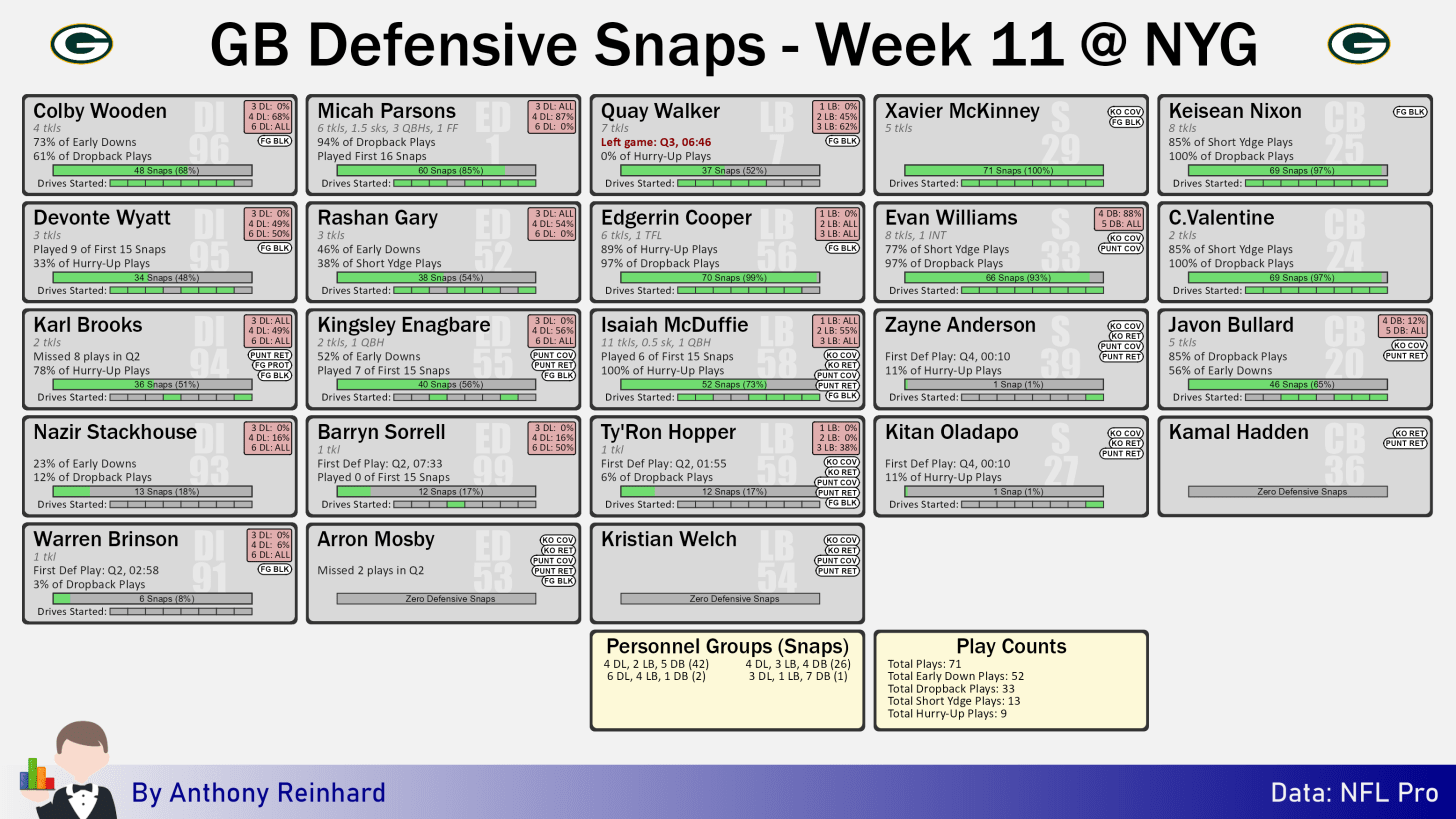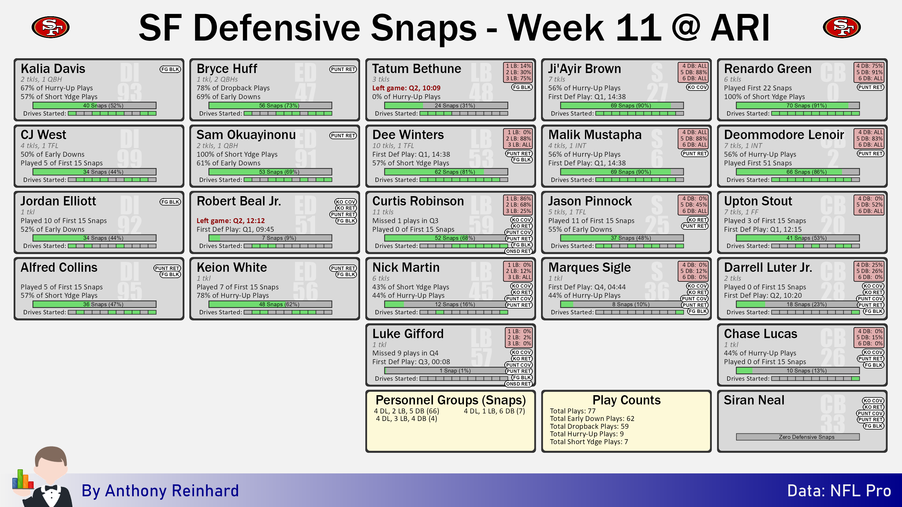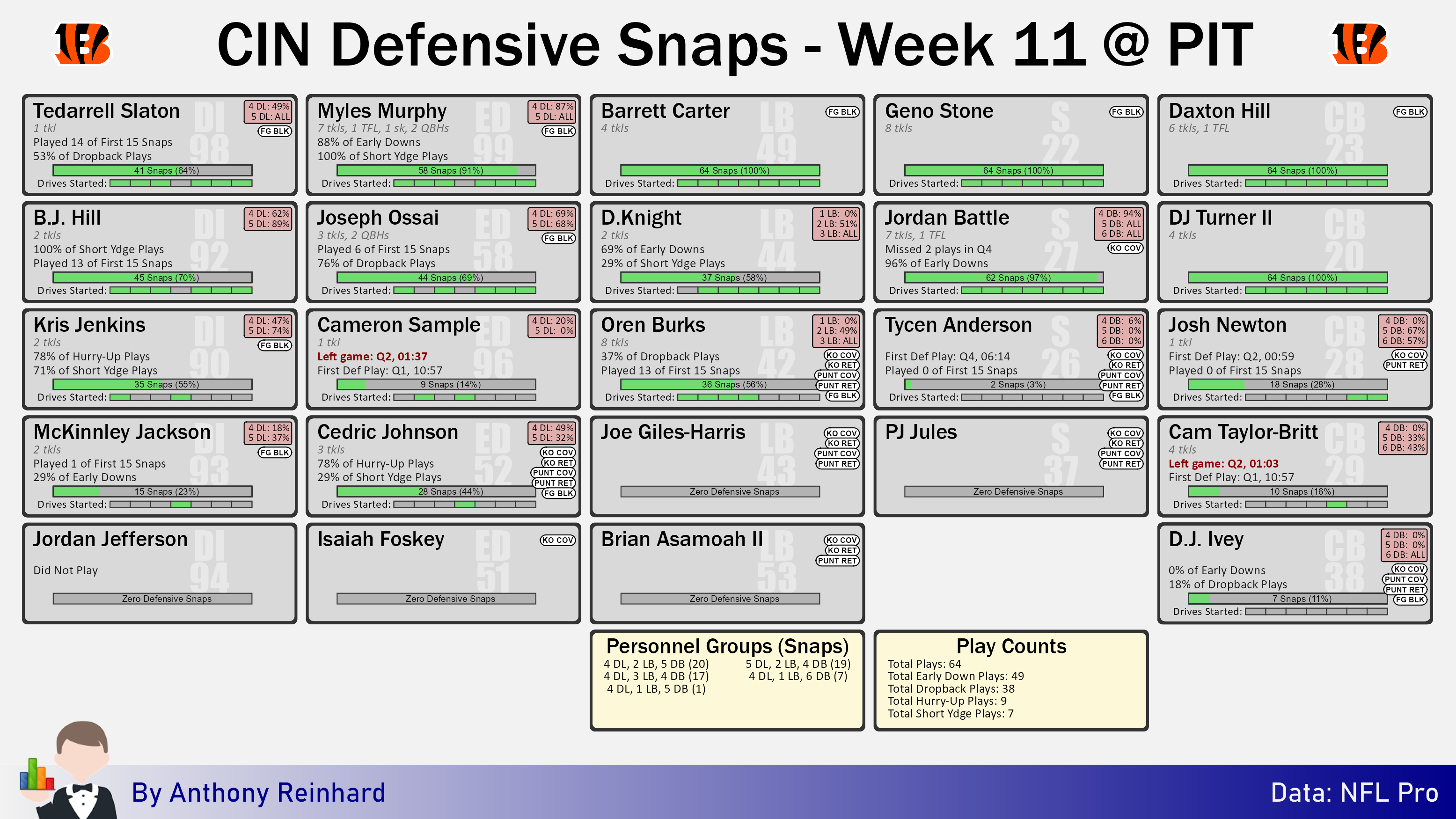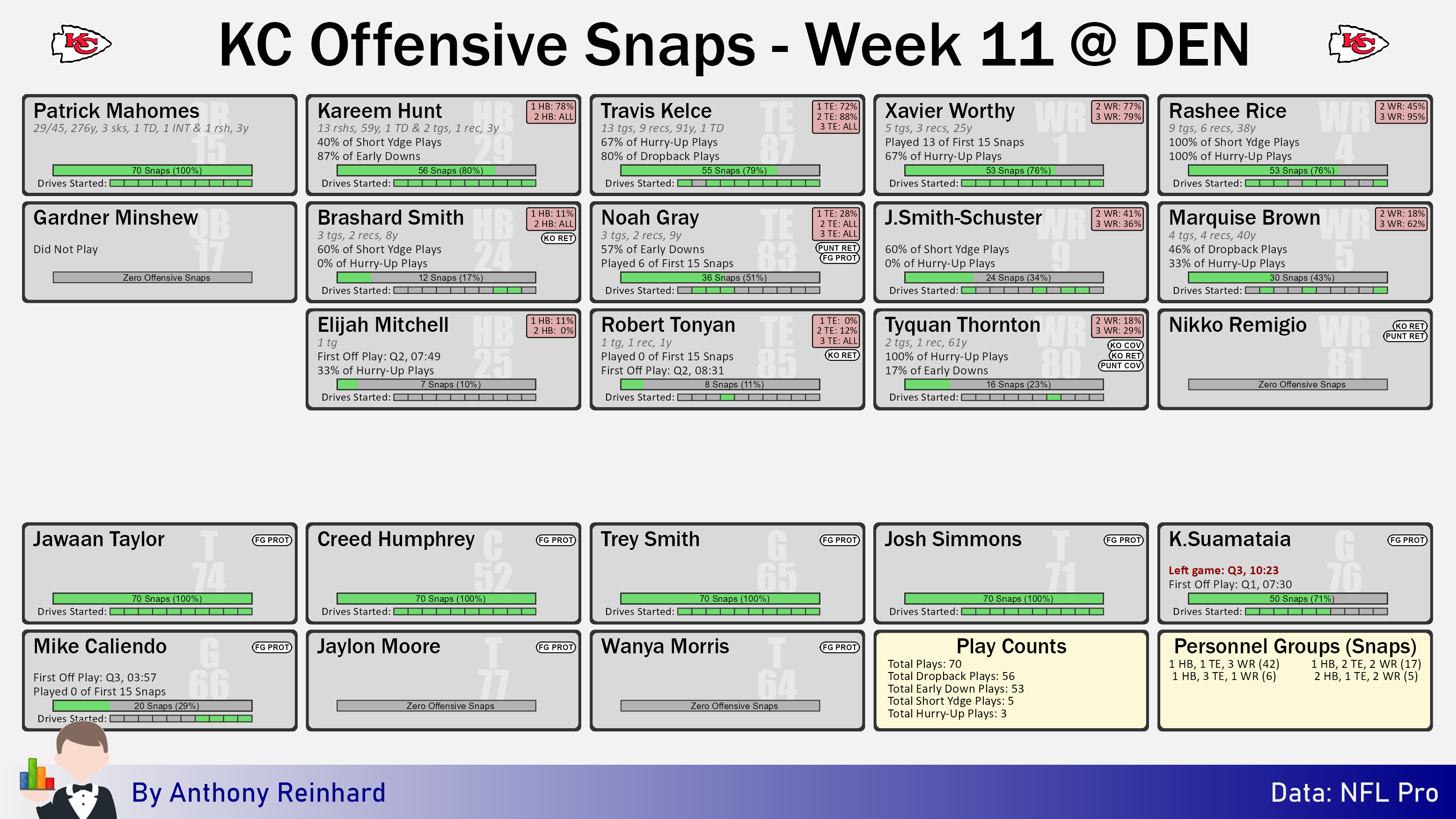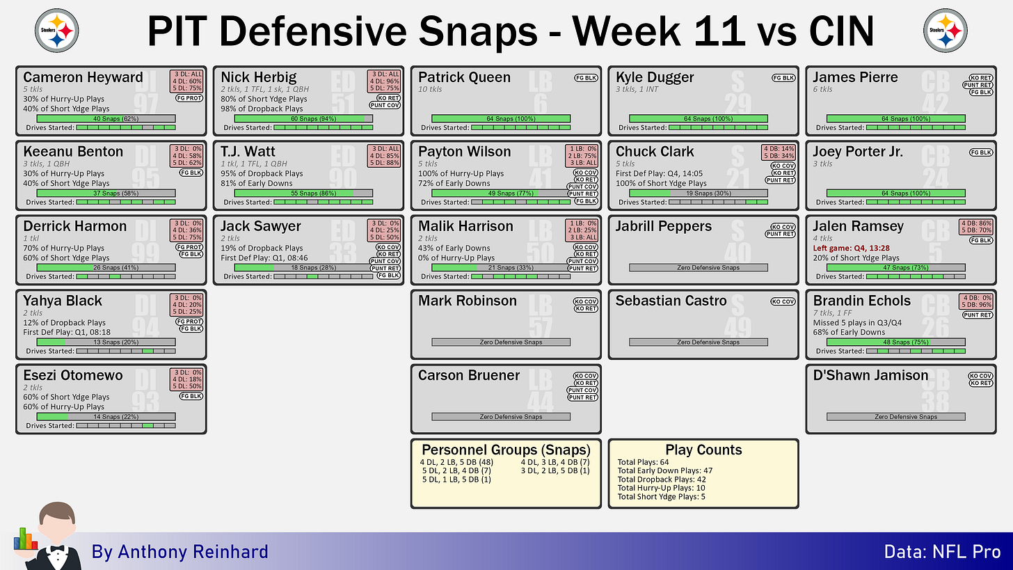 Snap Counts: Week 11Snap Count graphs for each team in Week 11Anthony ReinhardNov 17, 2025ShareNYJ-NEWAS-MIACAR-ATLTB-BUFLAC-JAXCHI-MINGB-NYGCIN-PITHOU-TENSF-ARISEA-LABAL-CLEKC-DENDET-PHIDAL-LVComing Soon!Thanks for reading!SubscribePrevious