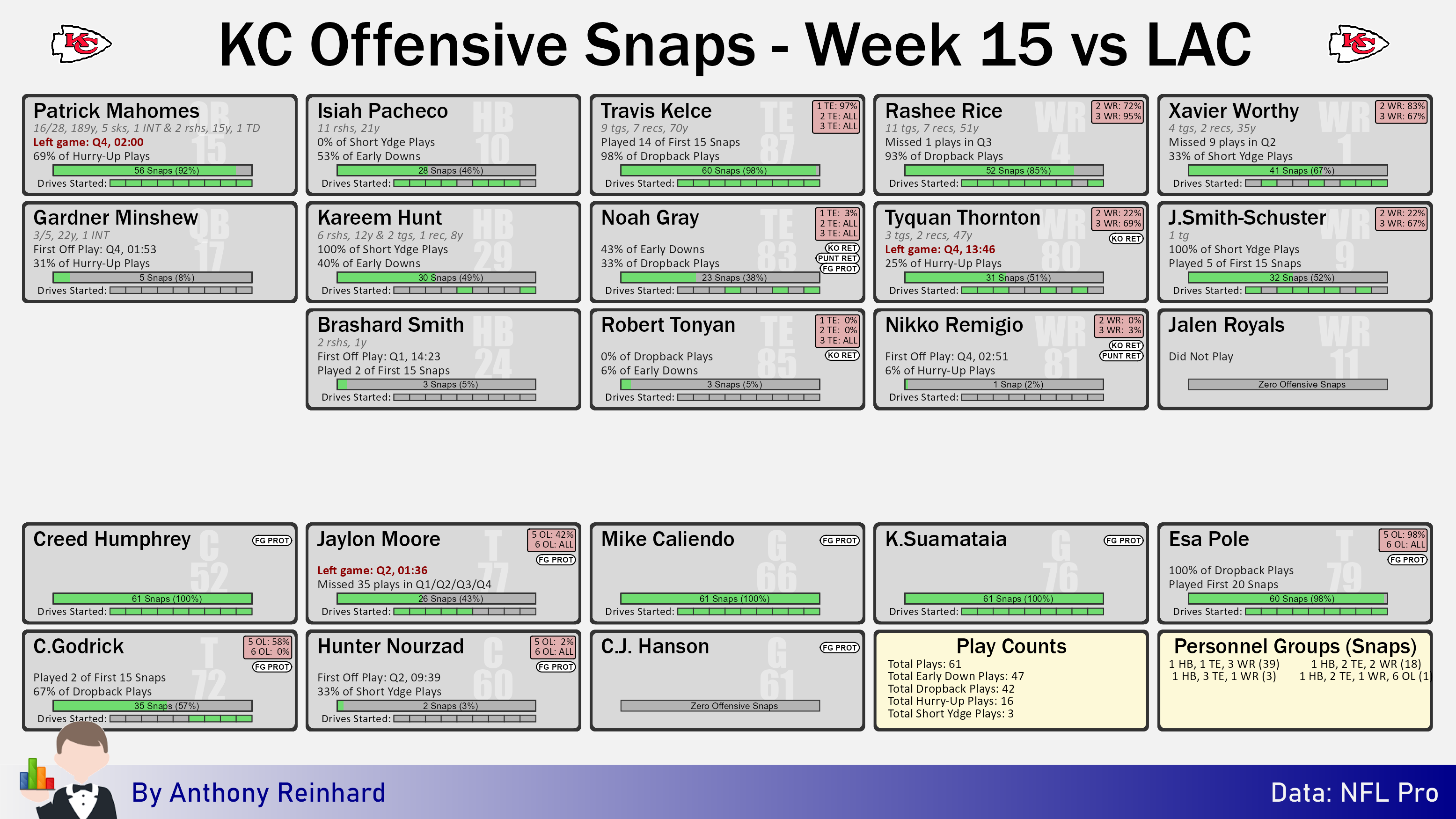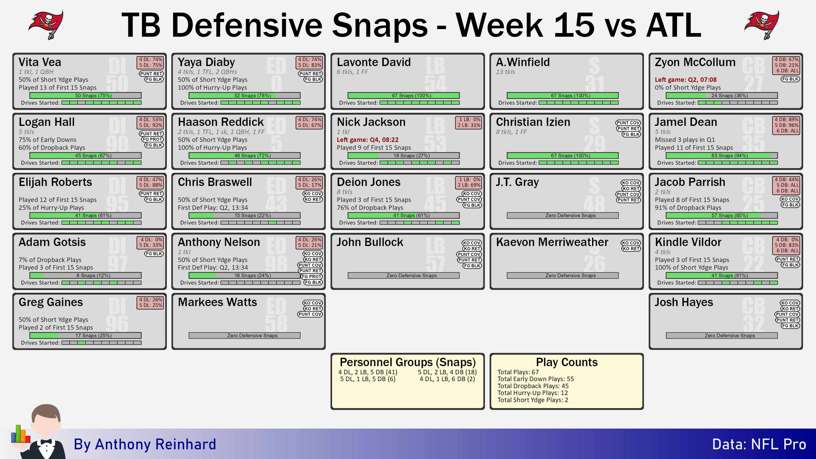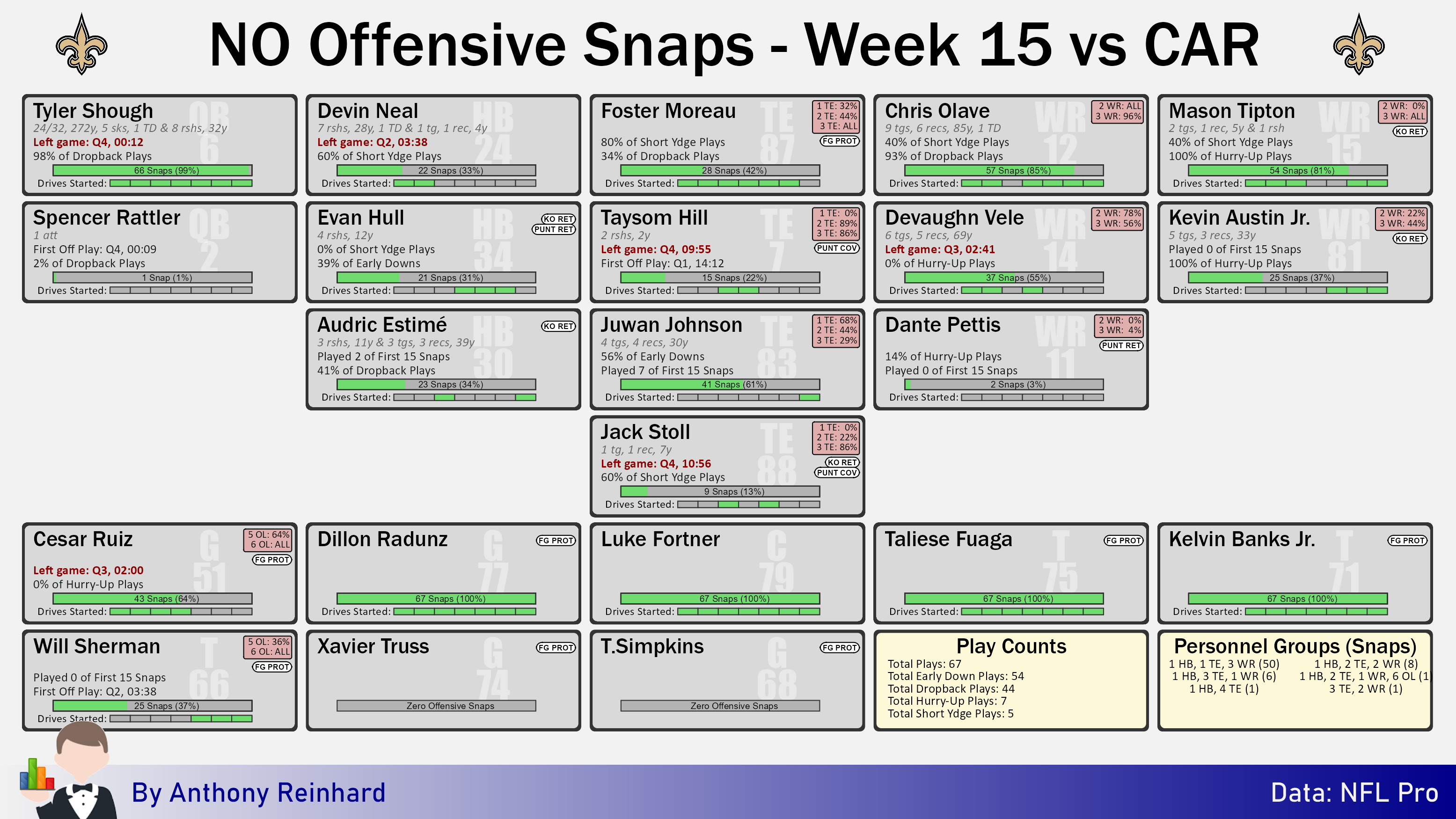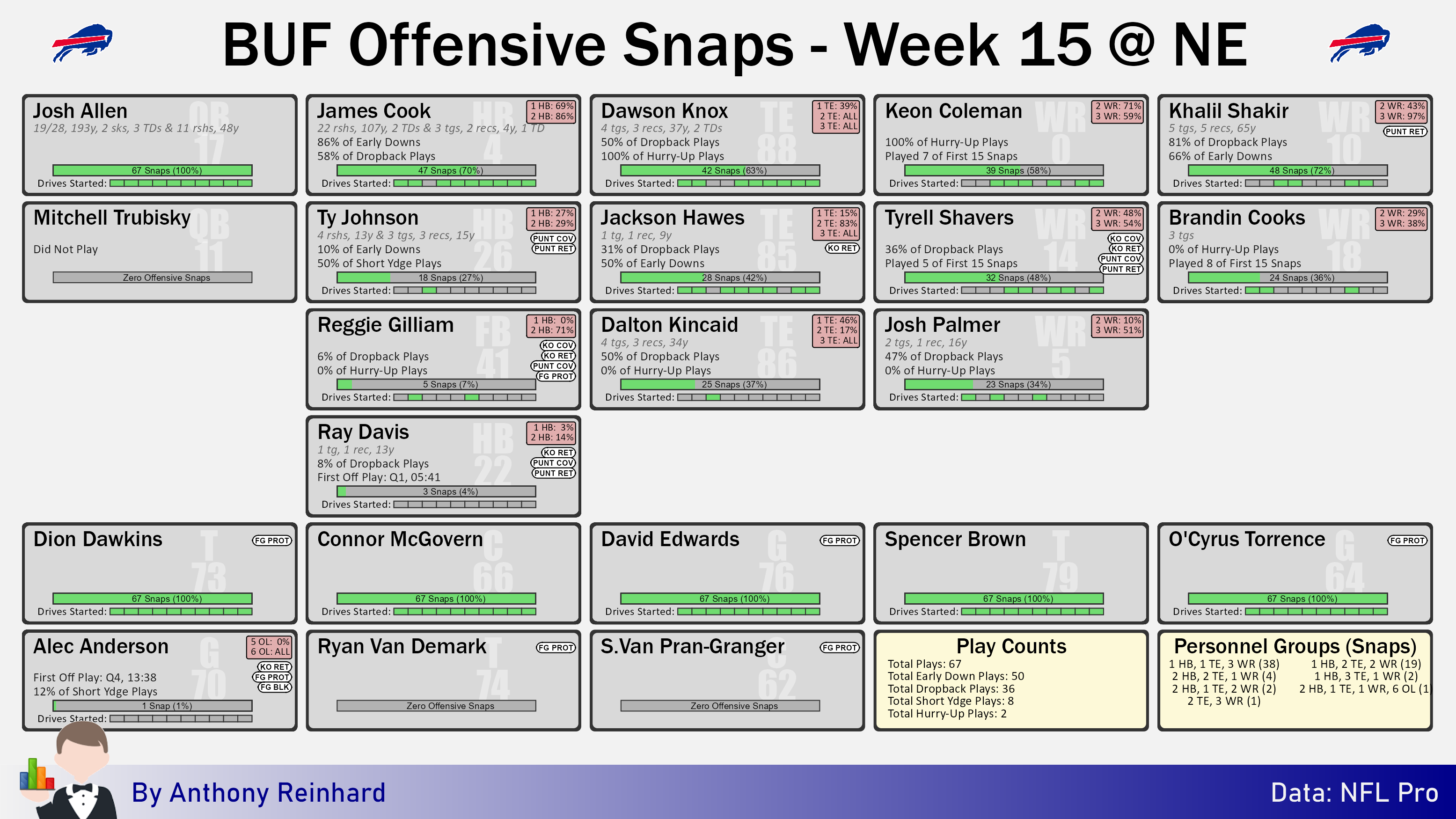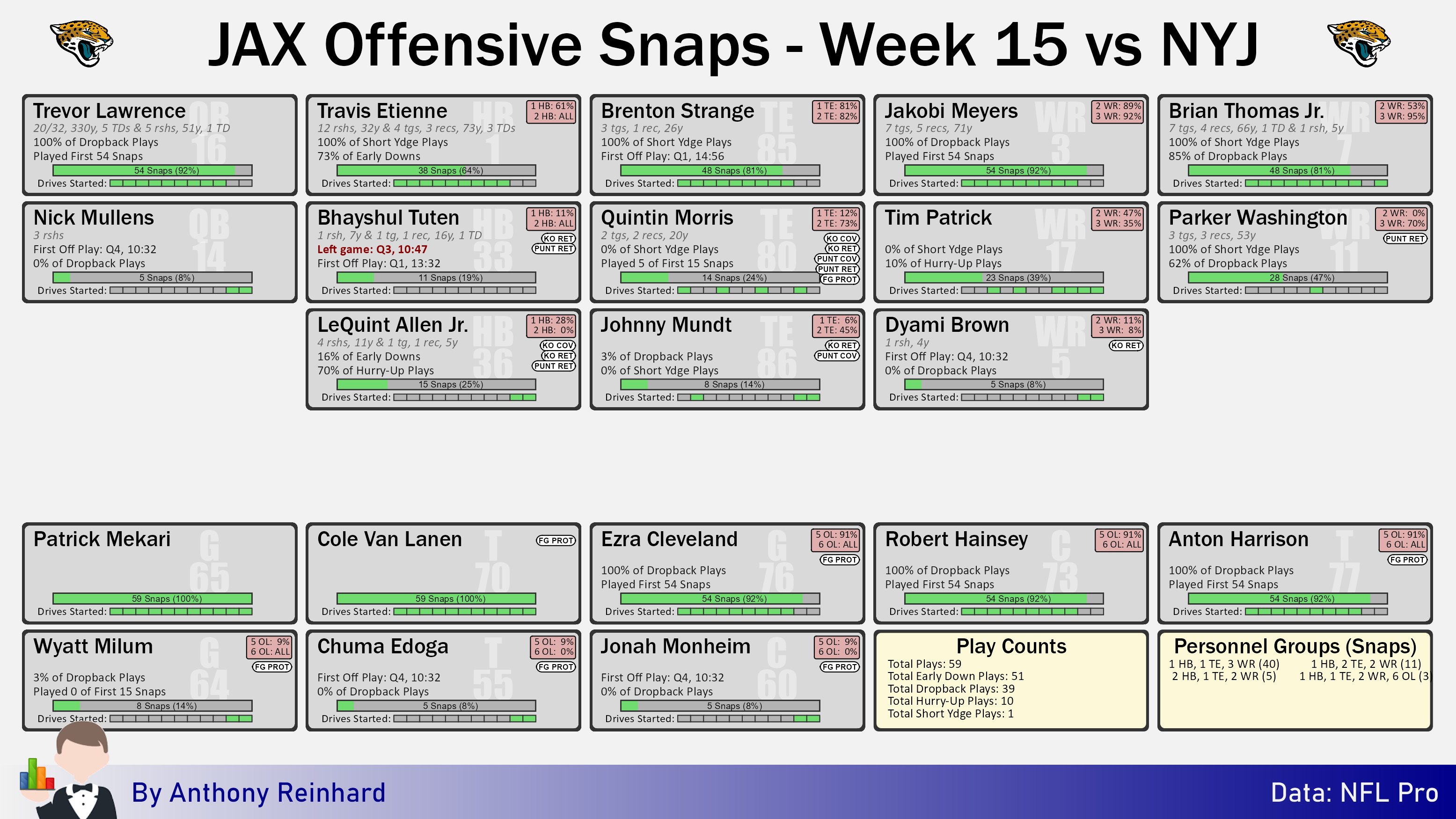 Snap Counts: Week 15Snap Count graphs for each team in Week 15Anthony ReinhardDec 15, 20252ShareATL-TBCLE-CHIBAL-CINARI-HOUNYJ-JAXLAC-KCBUF-NEWAS-NYGLV-PHIGB-DENDET-LACAR-NOIND-SEATEN-SFMIN-DALMIA-PITSubscribePreviousNext