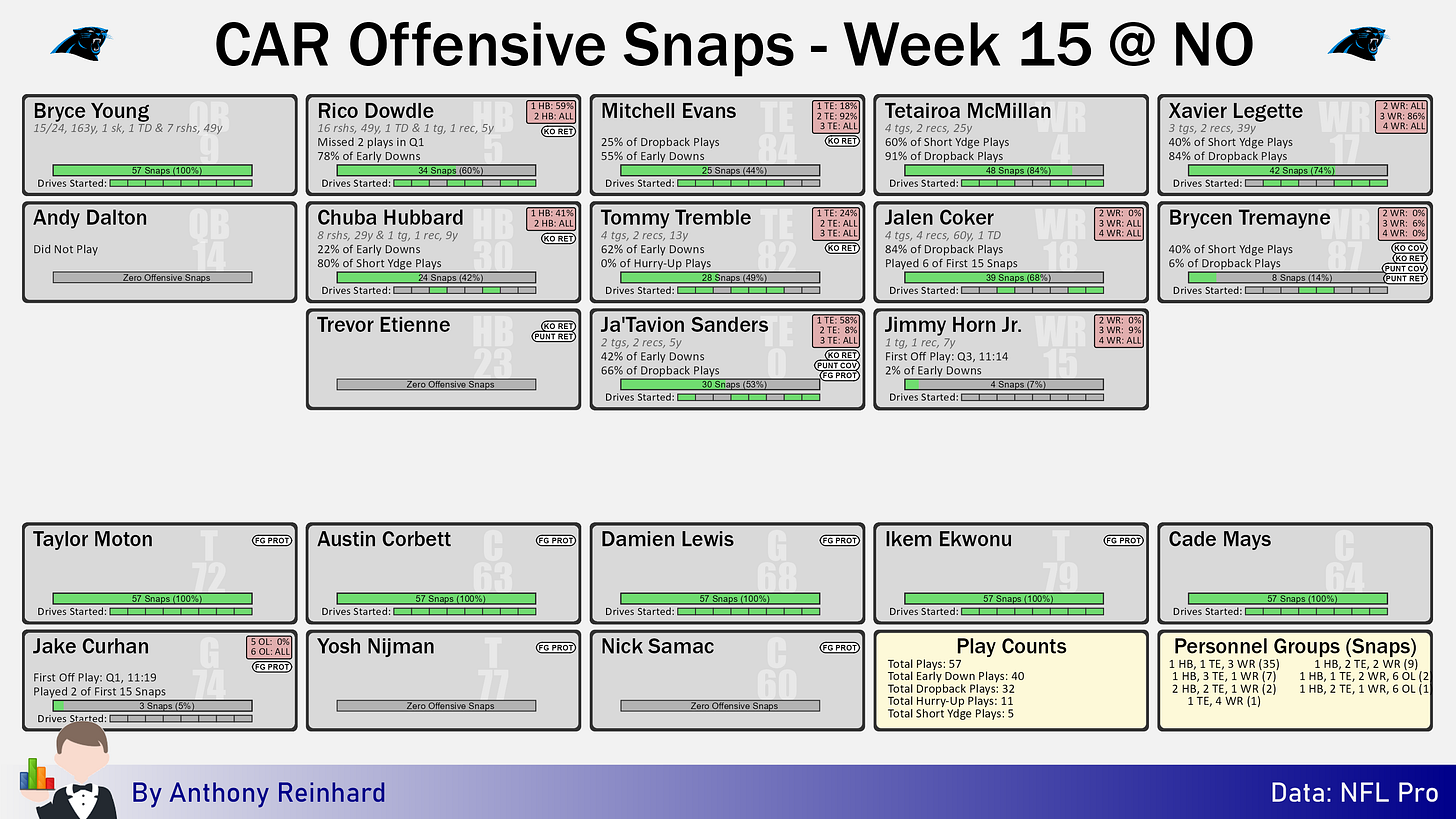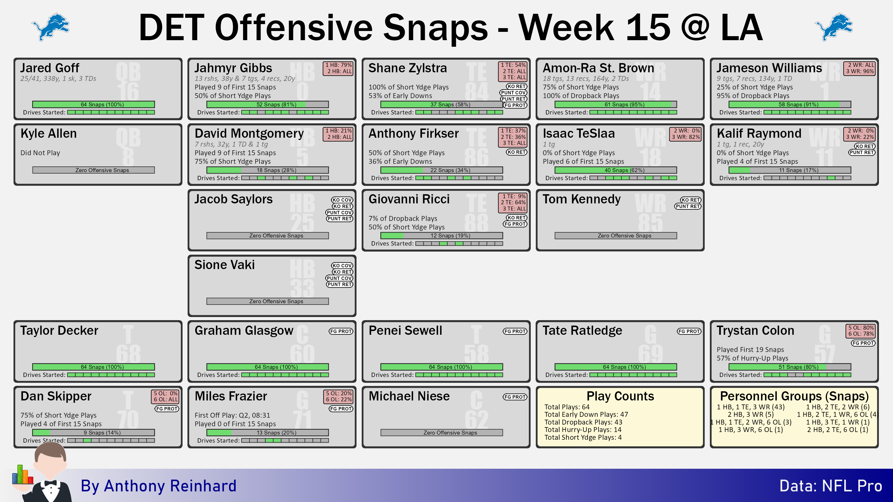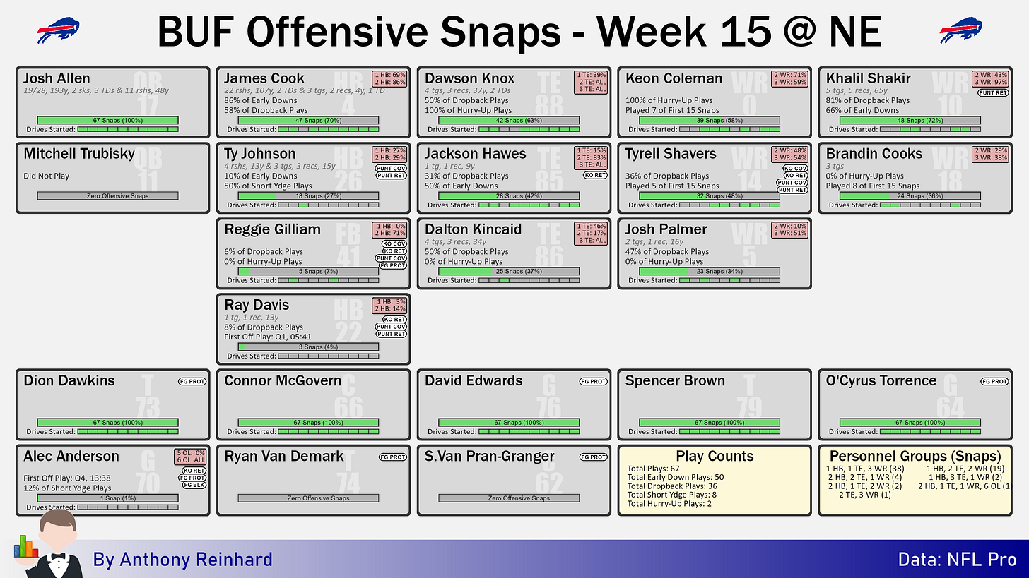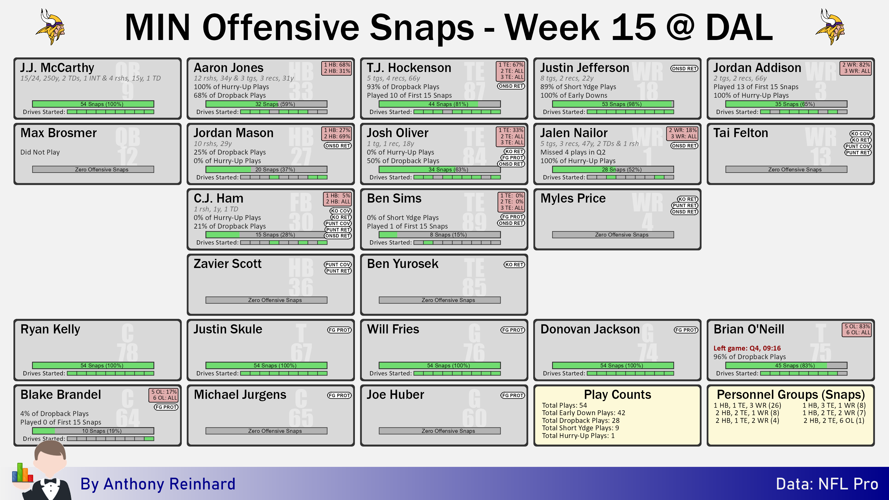 Snap Counts: Week 15Snap Count graphs for each team in Week 15Anthony ReinhardDec 15, 20252ShareATL-TBCLE-CHIBAL-CINARI-HOUNYJ-JAXLAC-KCBUF-NEWAS-NYGLV-PHIGB-DENDET-LACAR-NOIND-SEATEN-SFMIN-DALMIA-PITSubscribePreviousNext