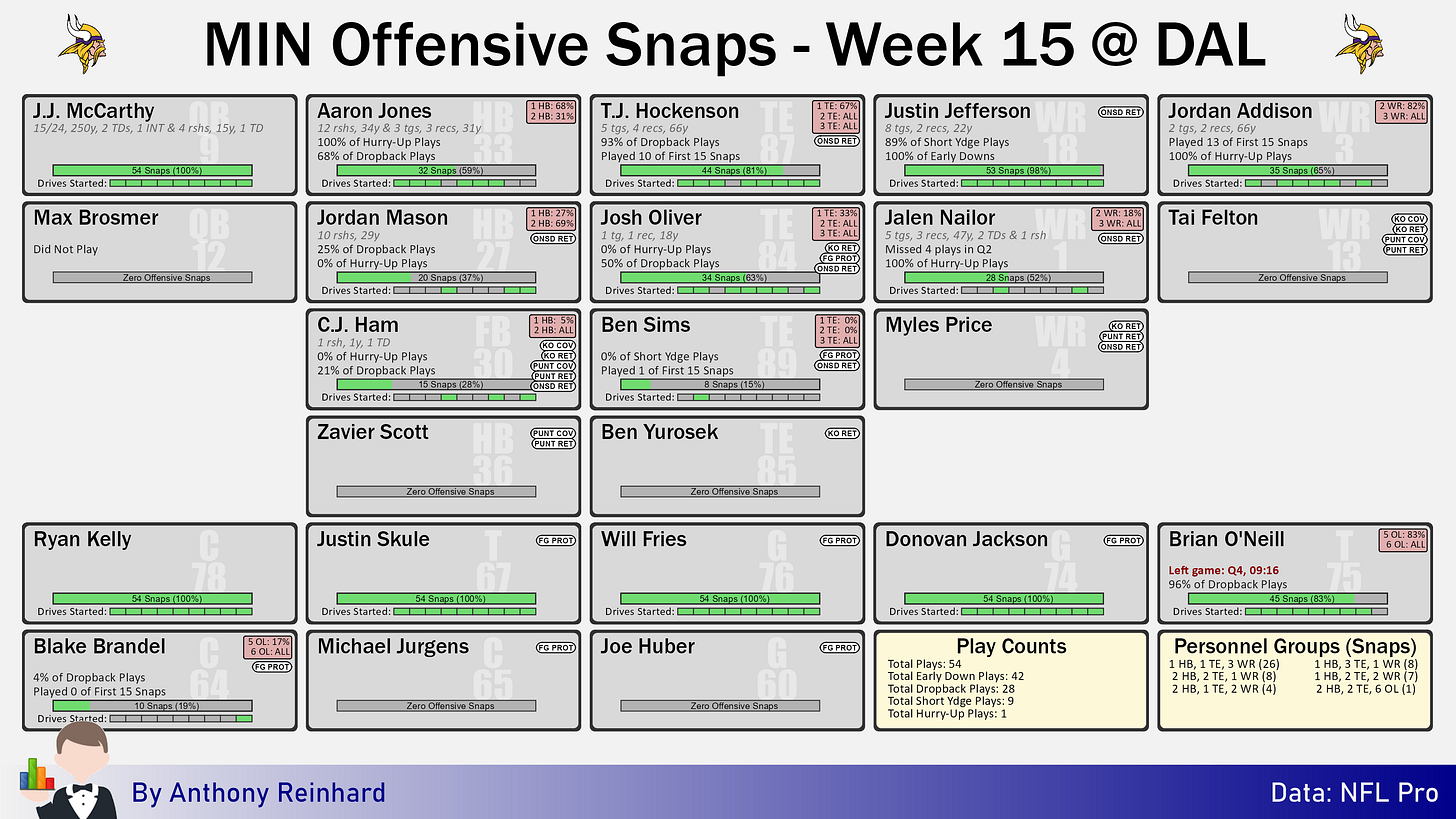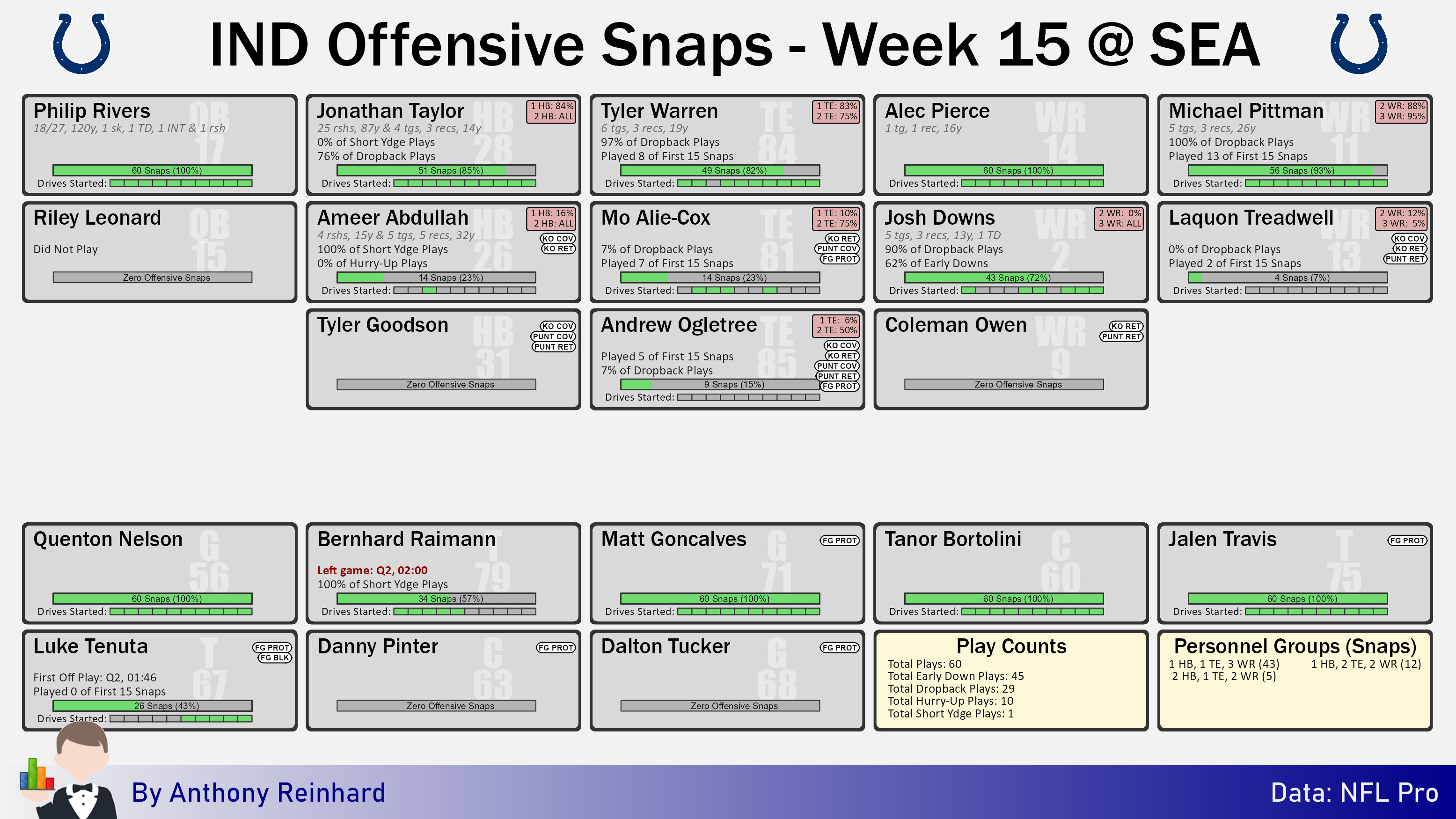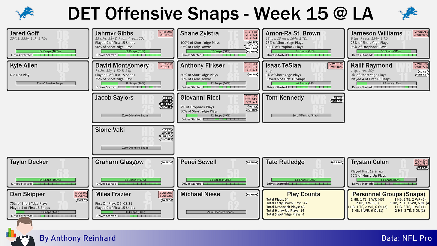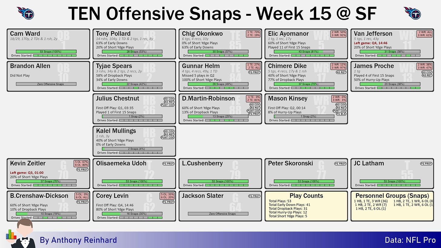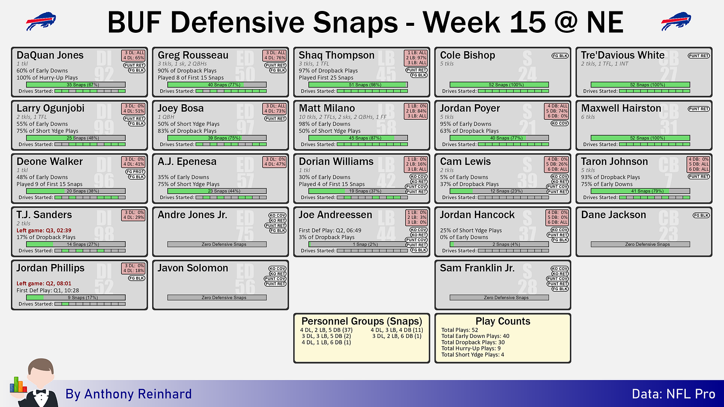 Snap Counts: Week 15Snap Count graphs for each team in Week 15Anthony ReinhardDec 15, 20252ShareATL-TBCLE-CHIBAL-CINARI-HOUNYJ-JAXLAC-KCBUF-NEWAS-NYGLV-PHIGB-DENDET-LACAR-NOIND-SEATEN-SFMIN-DALMIA-PITSubscribePreviousNext