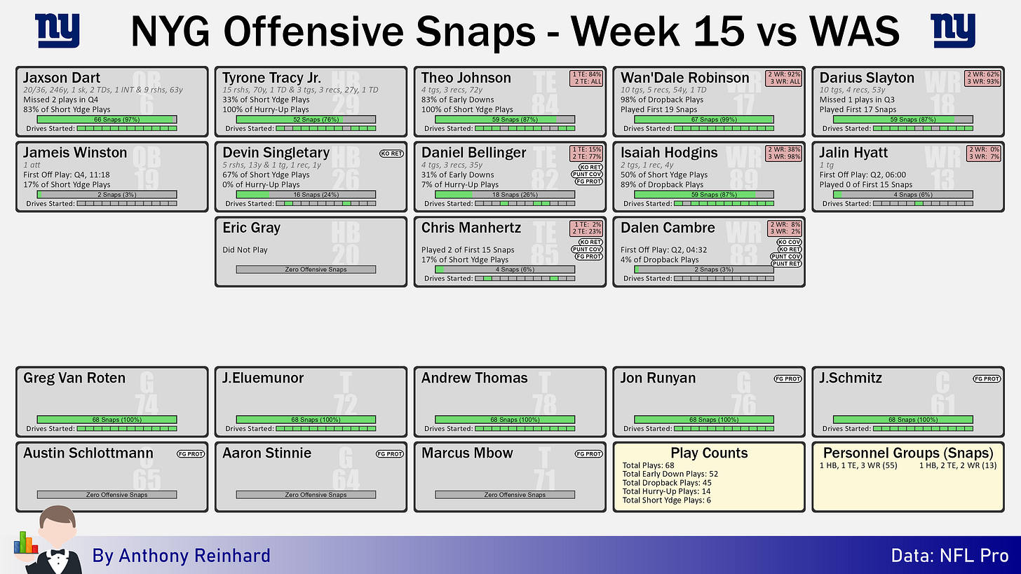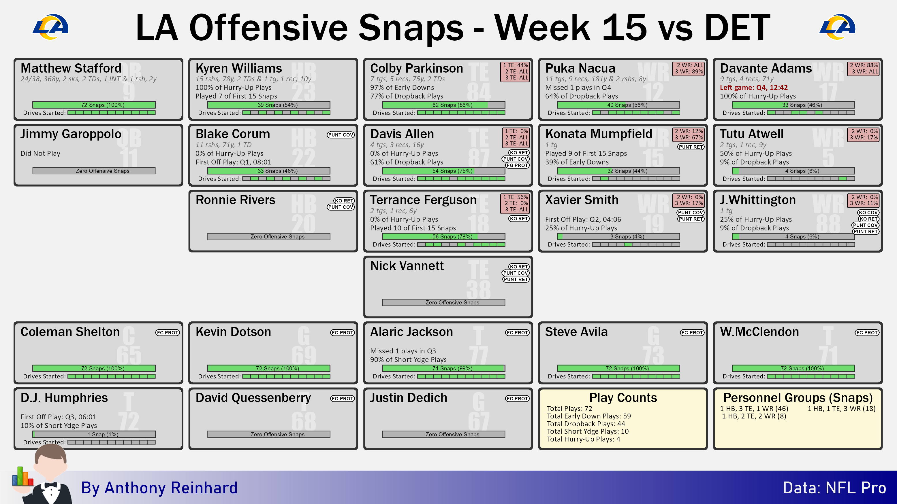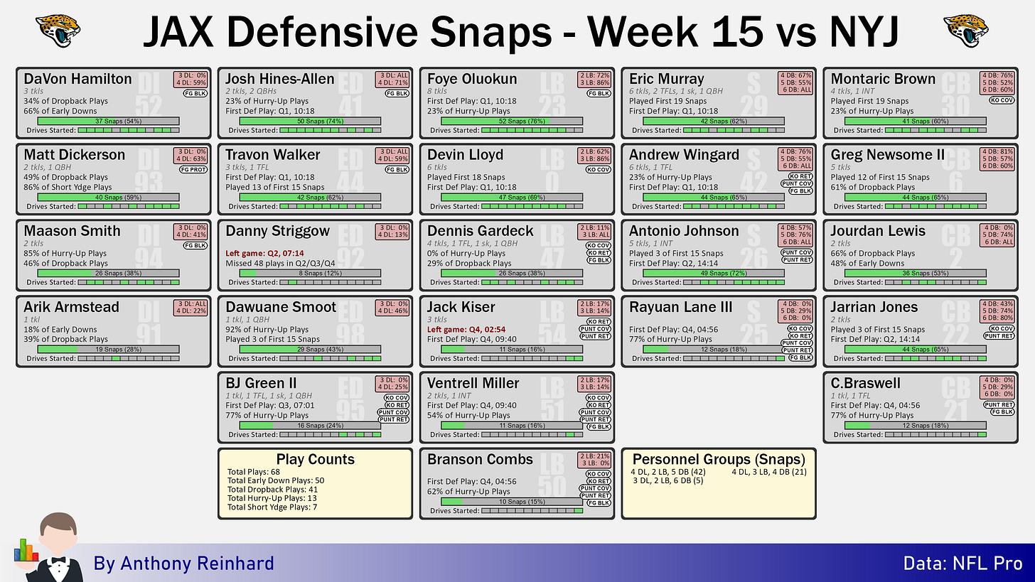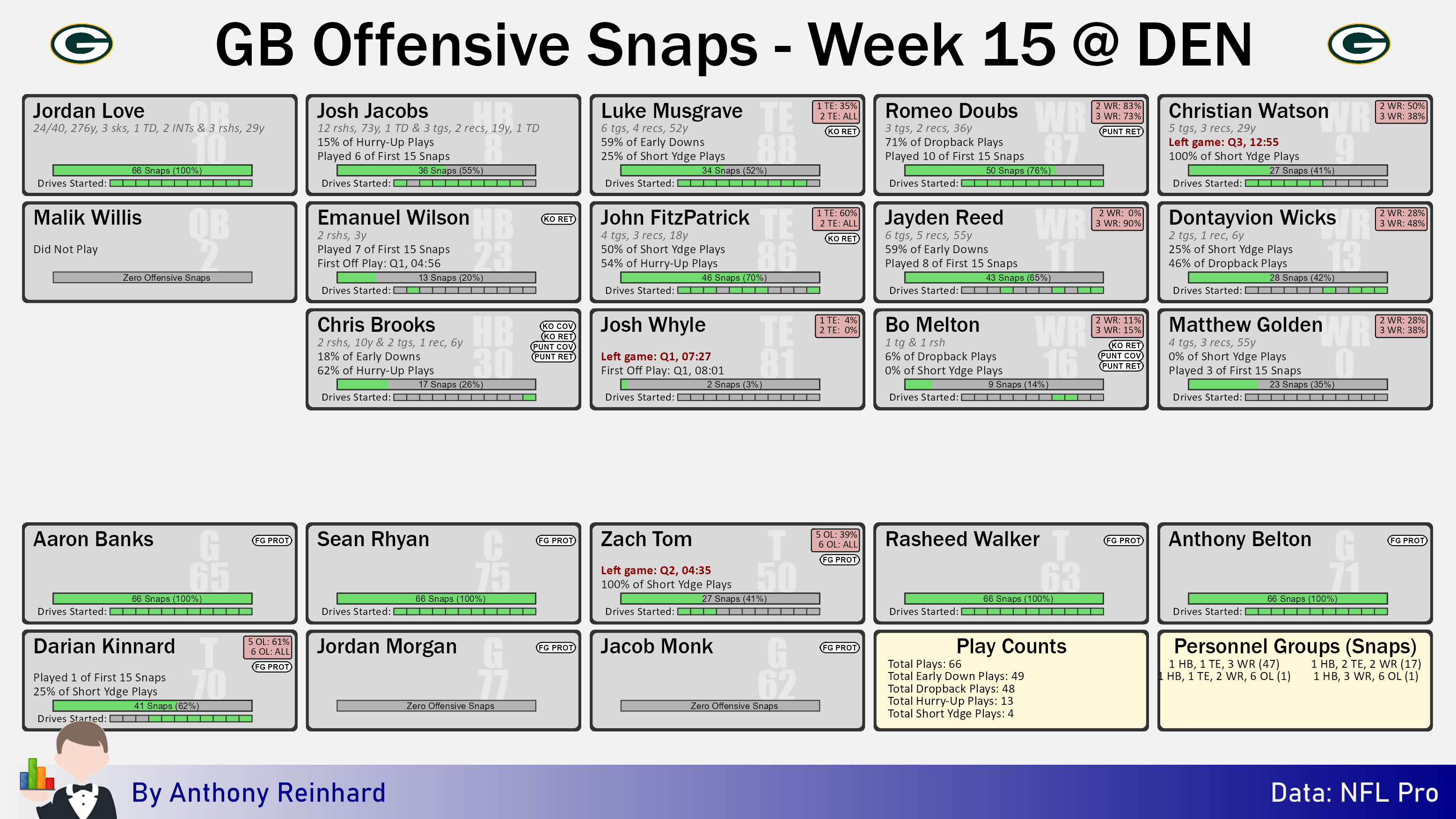 Snap Counts: Week 15Snap Count graphs for each team in Week 15Anthony ReinhardDec 15, 20252ShareATL-TBCLE-CHIBAL-CINARI-HOUNYJ-JAXLAC-KCBUF-NEWAS-NYGLV-PHIGB-DENDET-LACAR-NOIND-SEATEN-SFMIN-DALMIA-PITSubscribePreviousNext