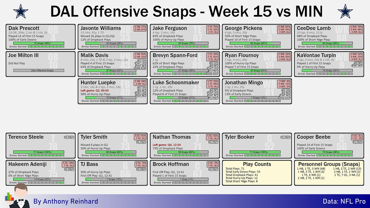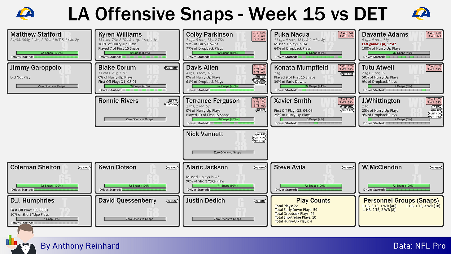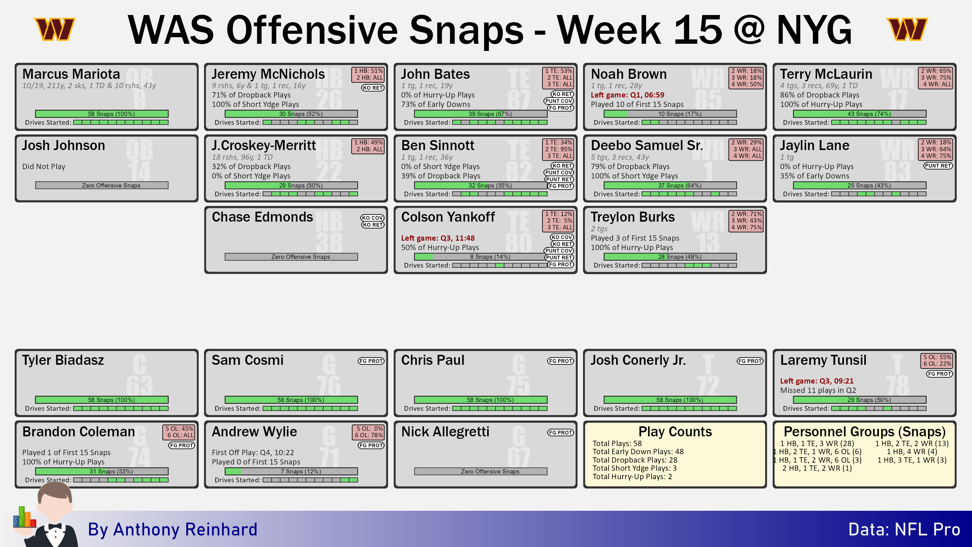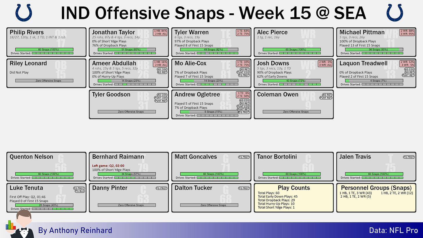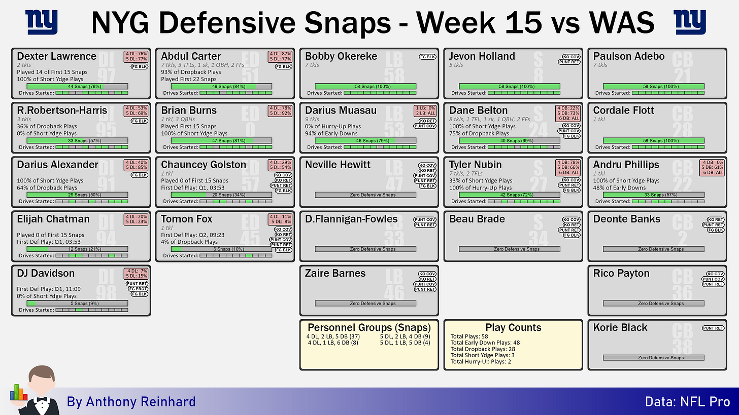 Snap Counts: Week 15Snap Count graphs for each team in Week 15Anthony ReinhardDec 15, 20252ShareATL-TBCLE-CHIBAL-CINARI-HOUNYJ-JAXLAC-KCBUF-NEWAS-NYGLV-PHIGB-DENDET-LACAR-NOIND-SEATEN-SFMIN-DALMIA-PITSubscribePreviousNext