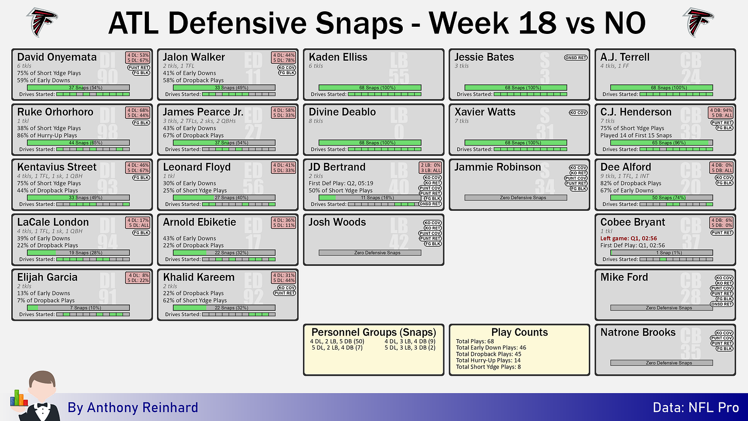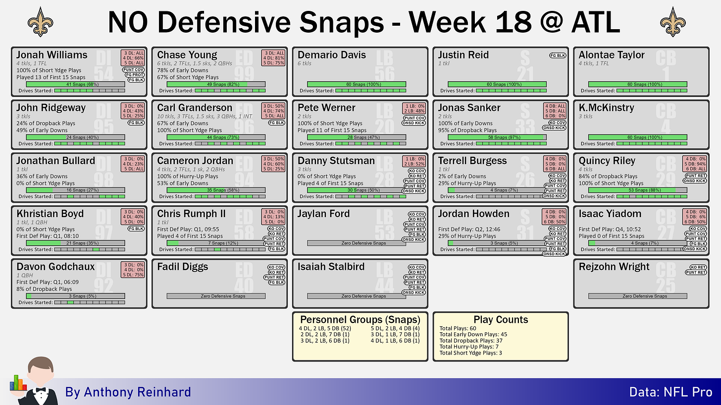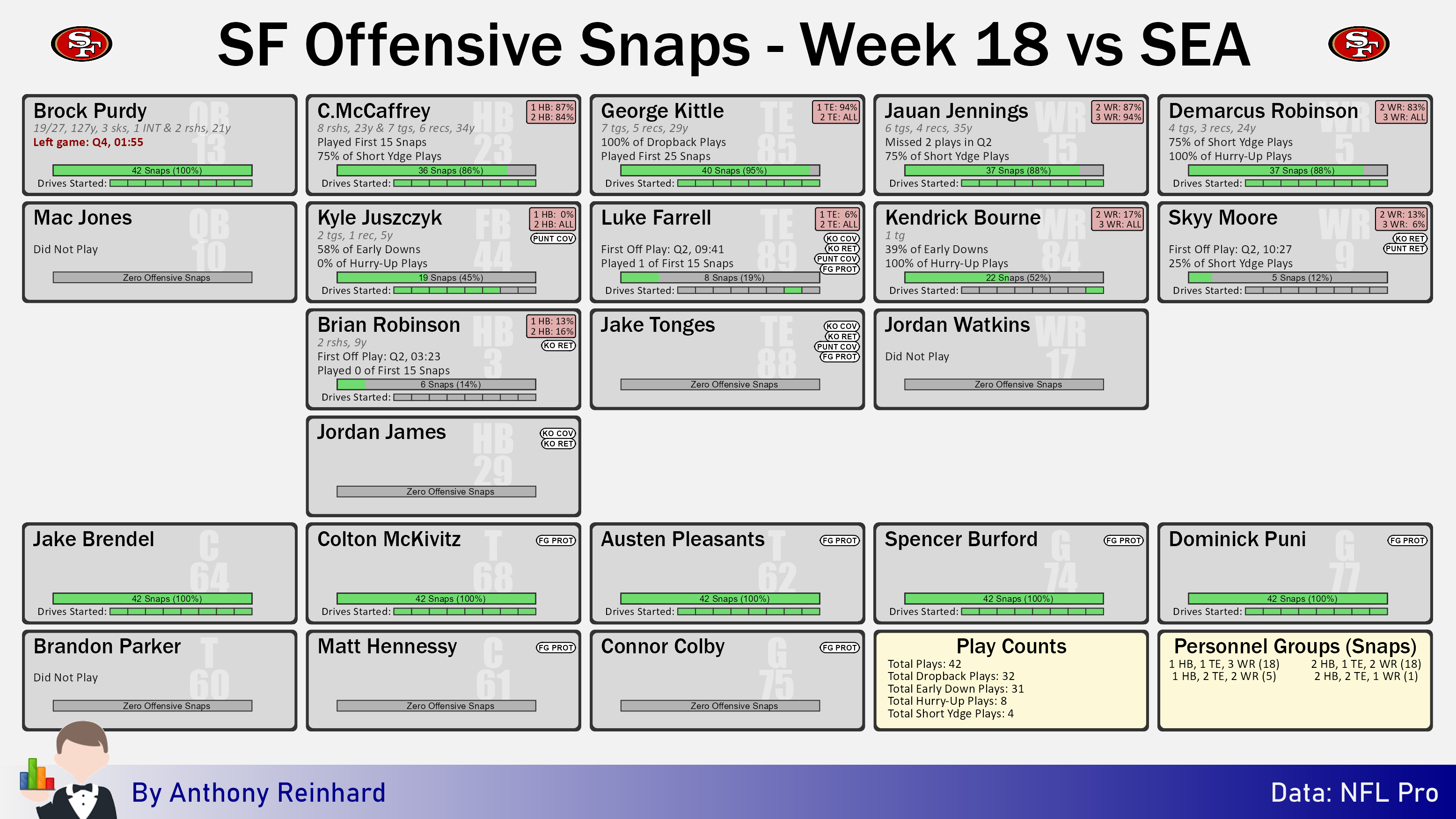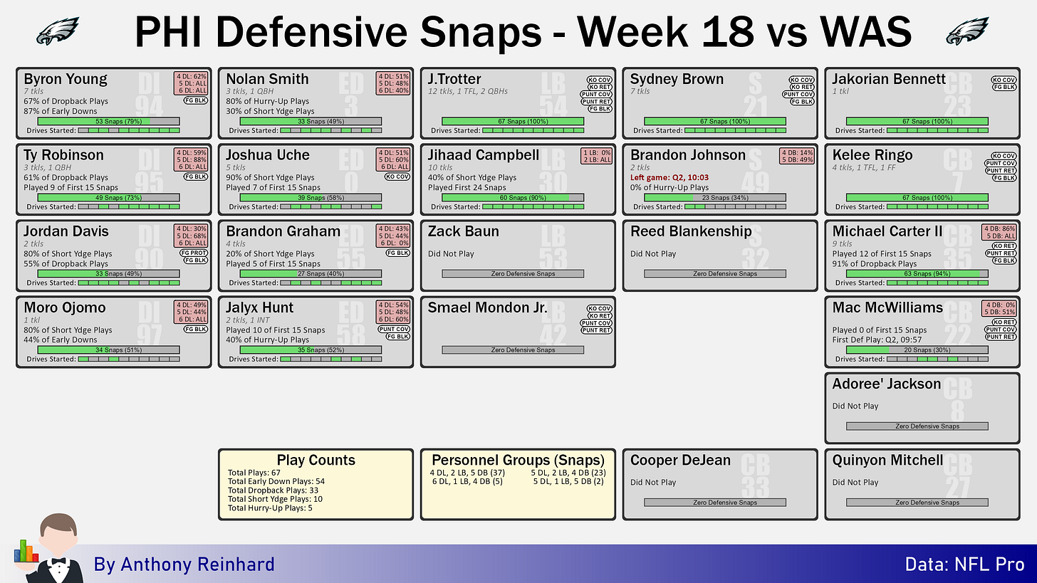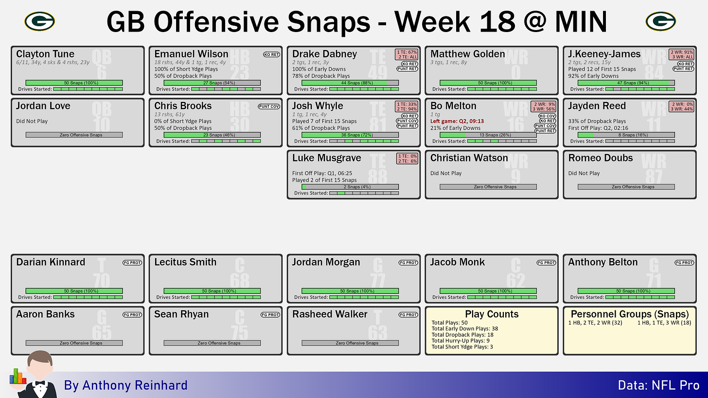 Snap Counts: Week 18Snap Count graphs for each team in Week 18Anthony ReinhardJan 05, 20261ShareCAR-TBSEA-SFNO-ATLCLE-CININD-HOUTEN-JAXGB-MINDAL-NYGNYJ-BUFDET-CHILAC-DENARI-LAKC-LVMIA-NEWAS-PHIBAL-PITSubscribePreviousNext
