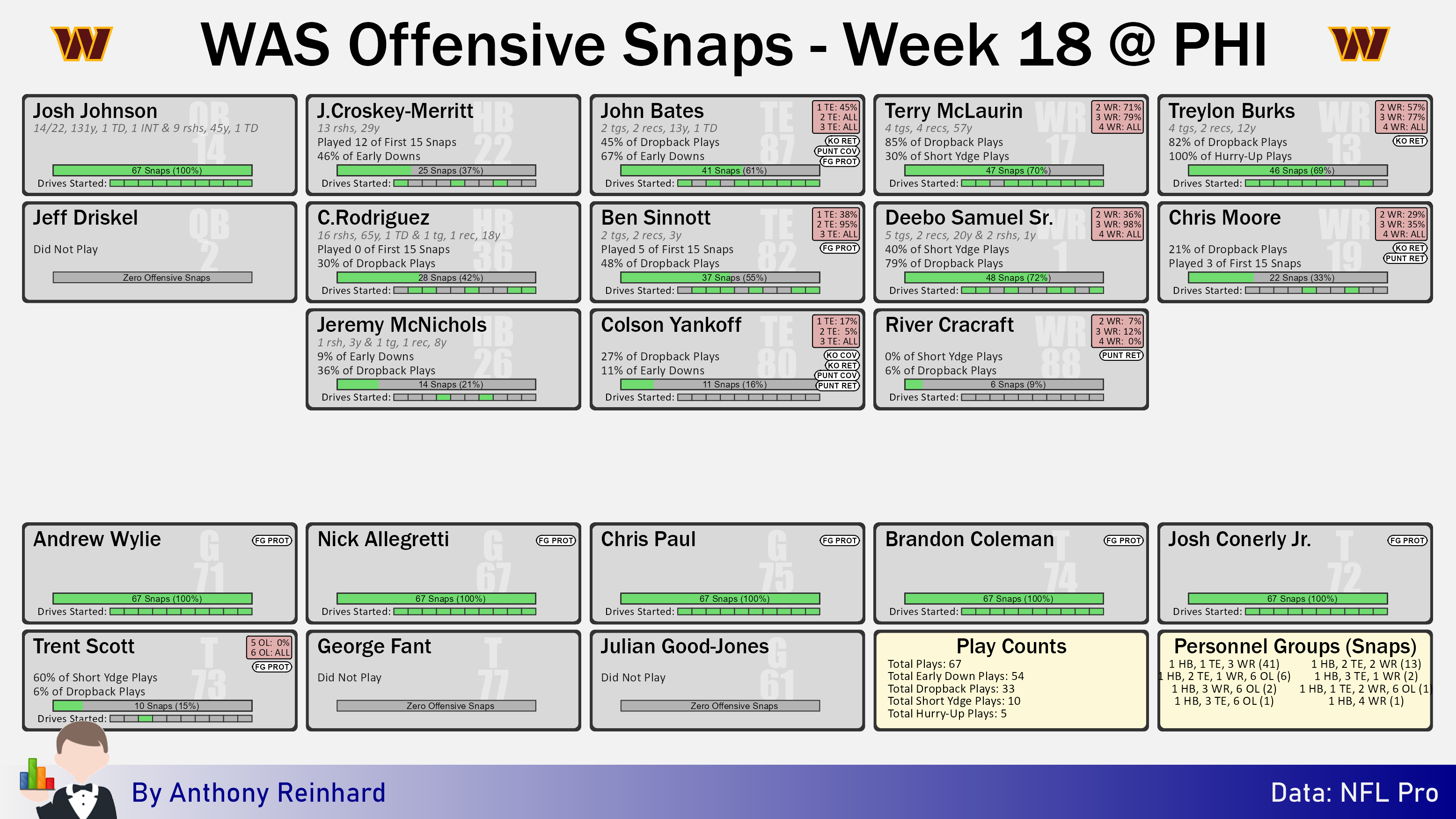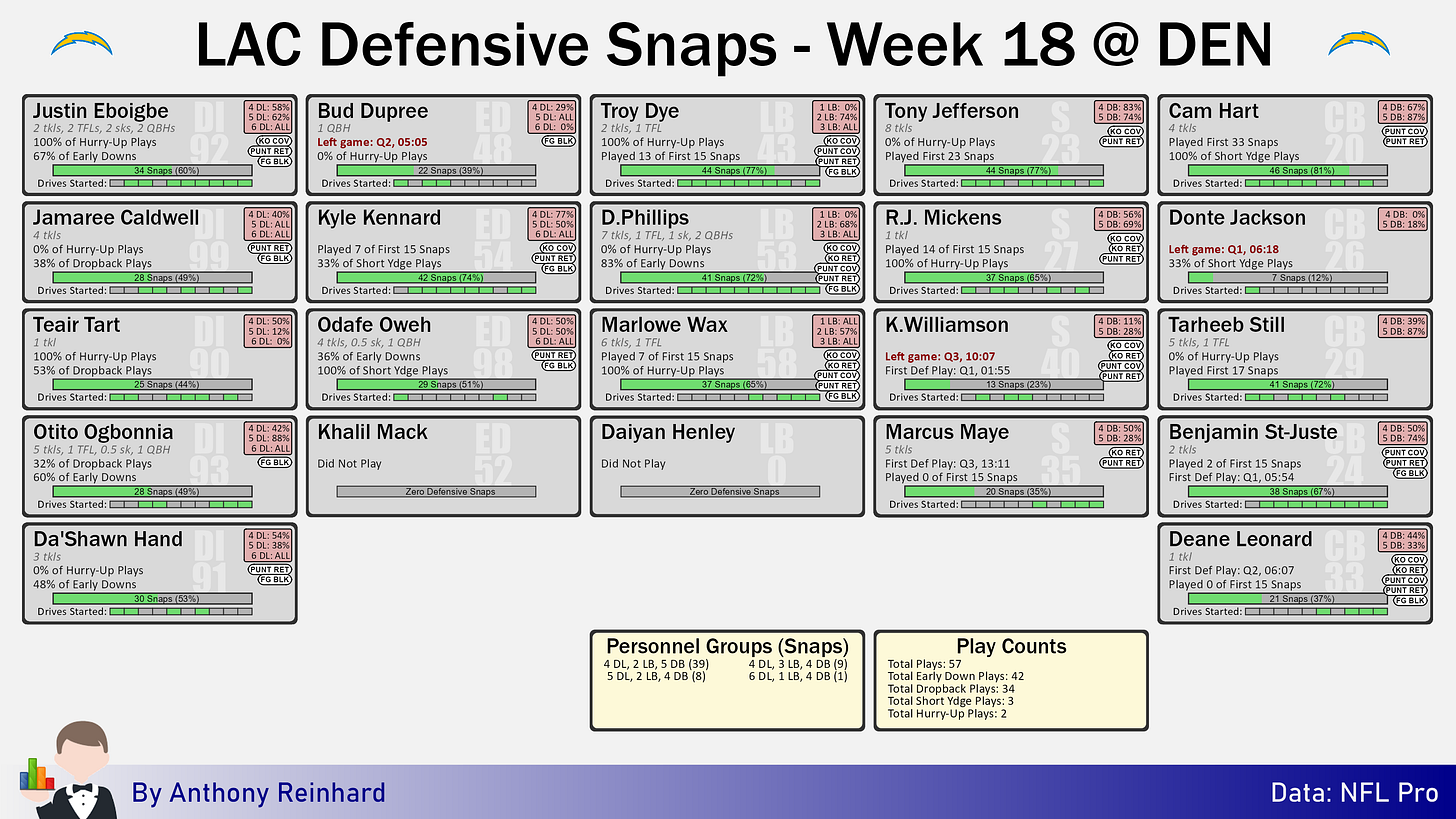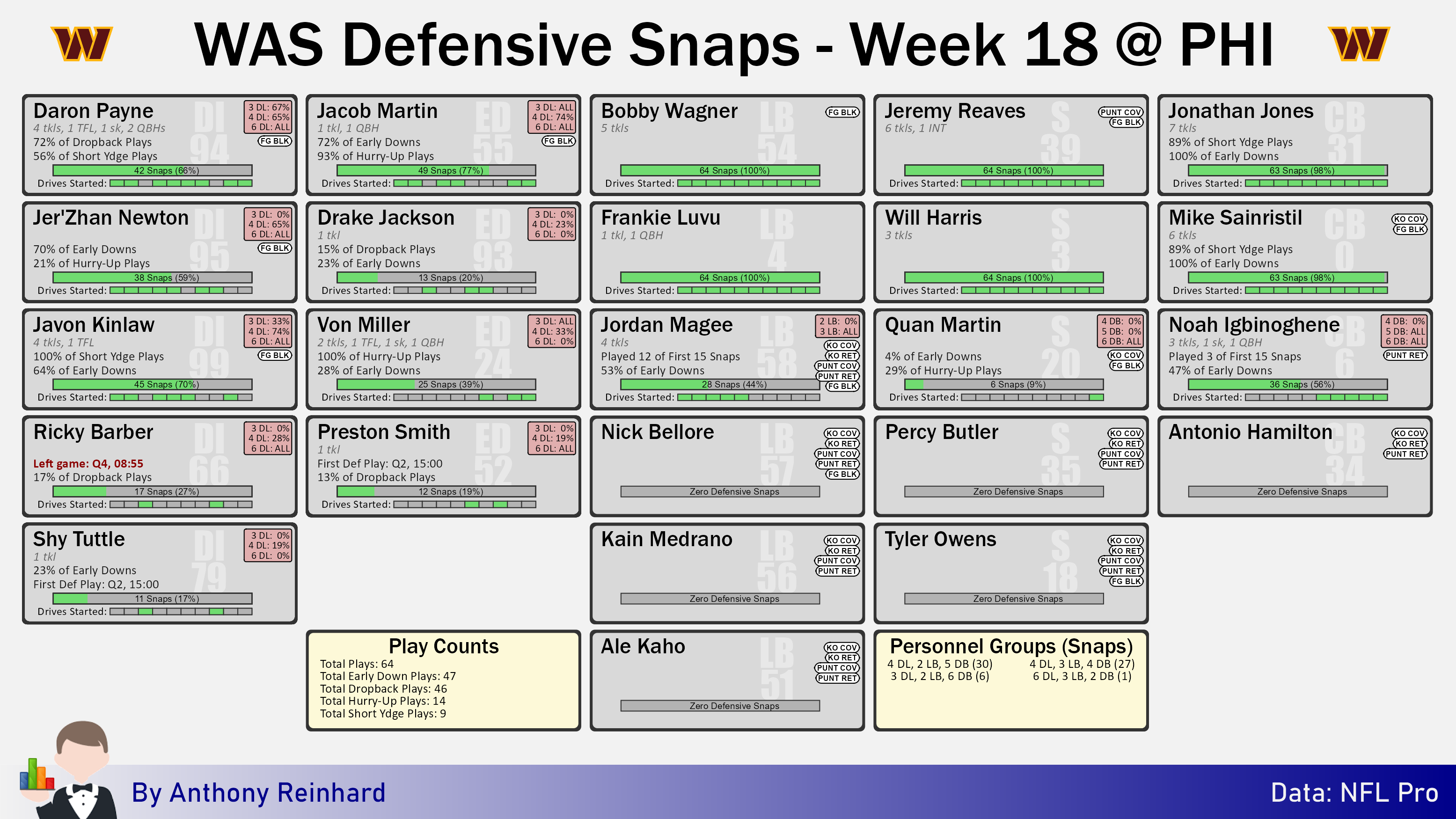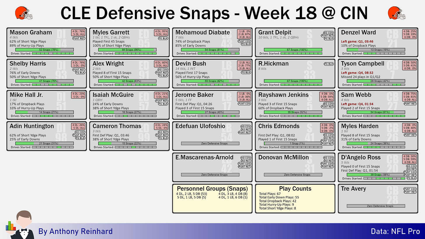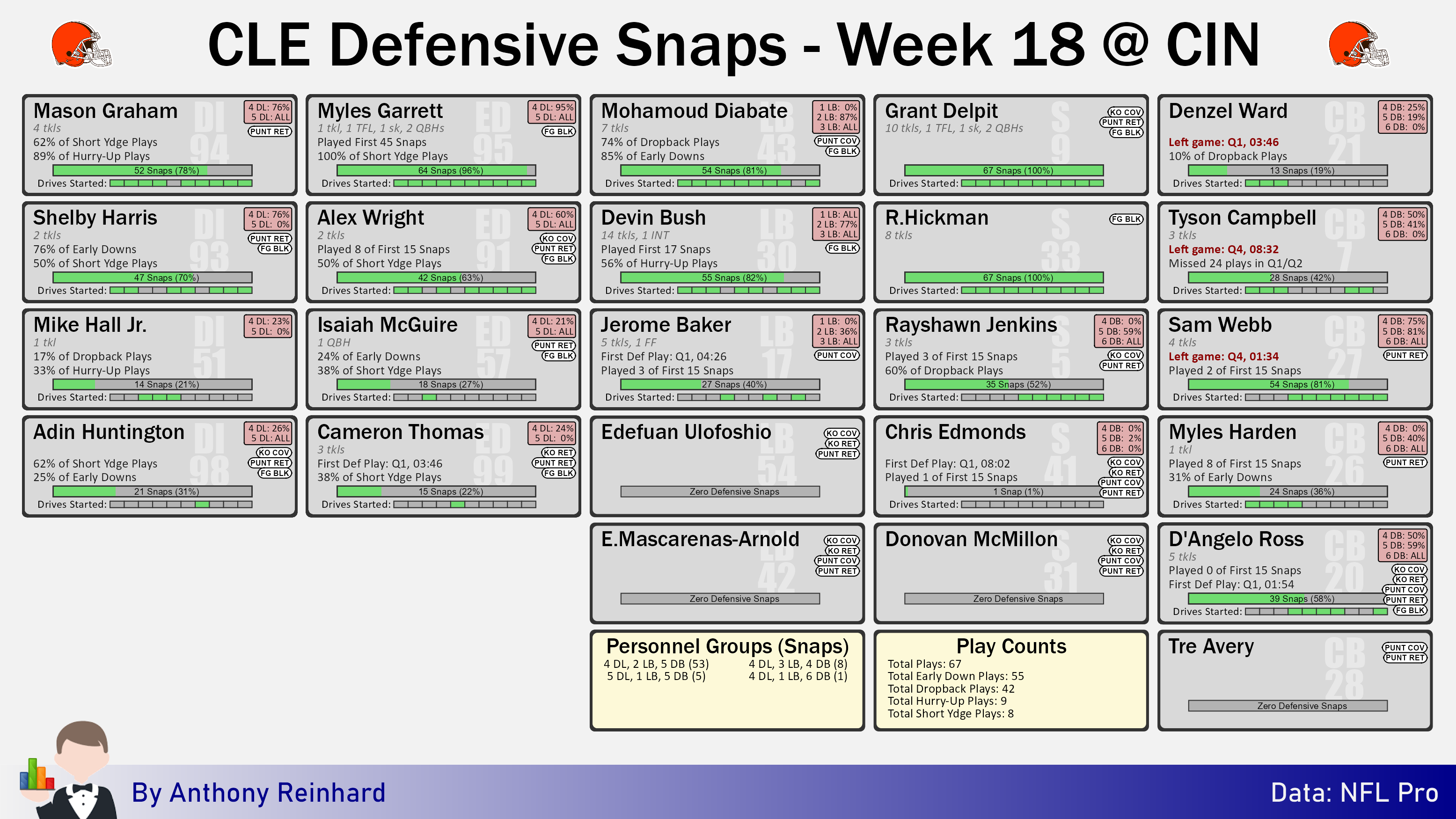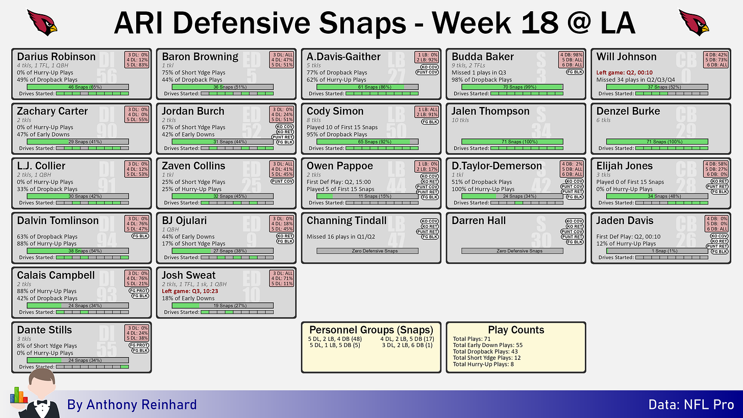 Snap Counts: Week 18Snap Count graphs for each team in Week 18Anthony ReinhardJan 05, 20261ShareCAR-TBSEA-SFNO-ATLCLE-CININD-HOUTEN-JAXGB-MINDAL-NYGNYJ-BUFDET-CHILAC-DENARI-LAKC-LVMIA-NEWAS-PHIBAL-PITSubscribePreviousNext