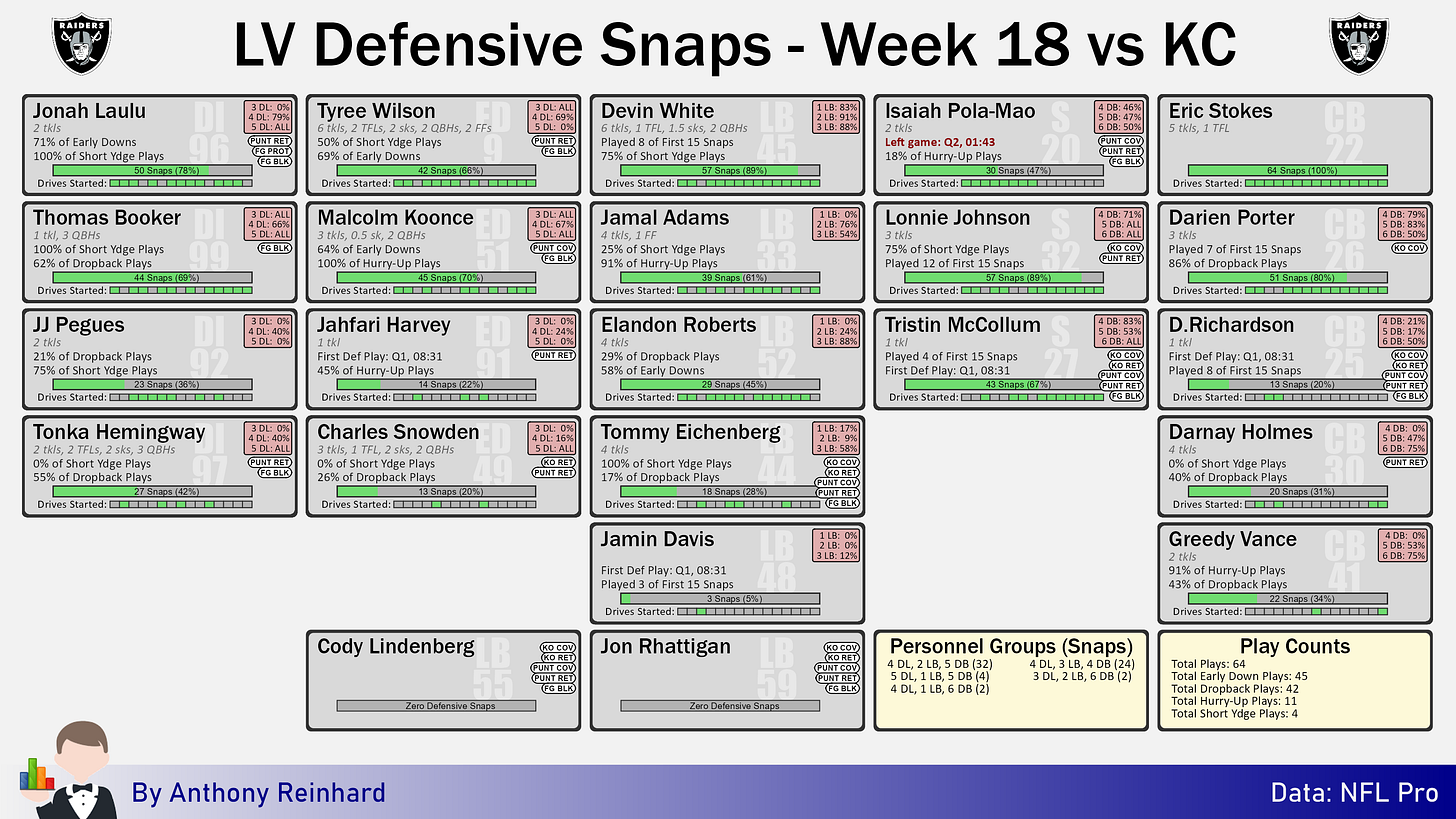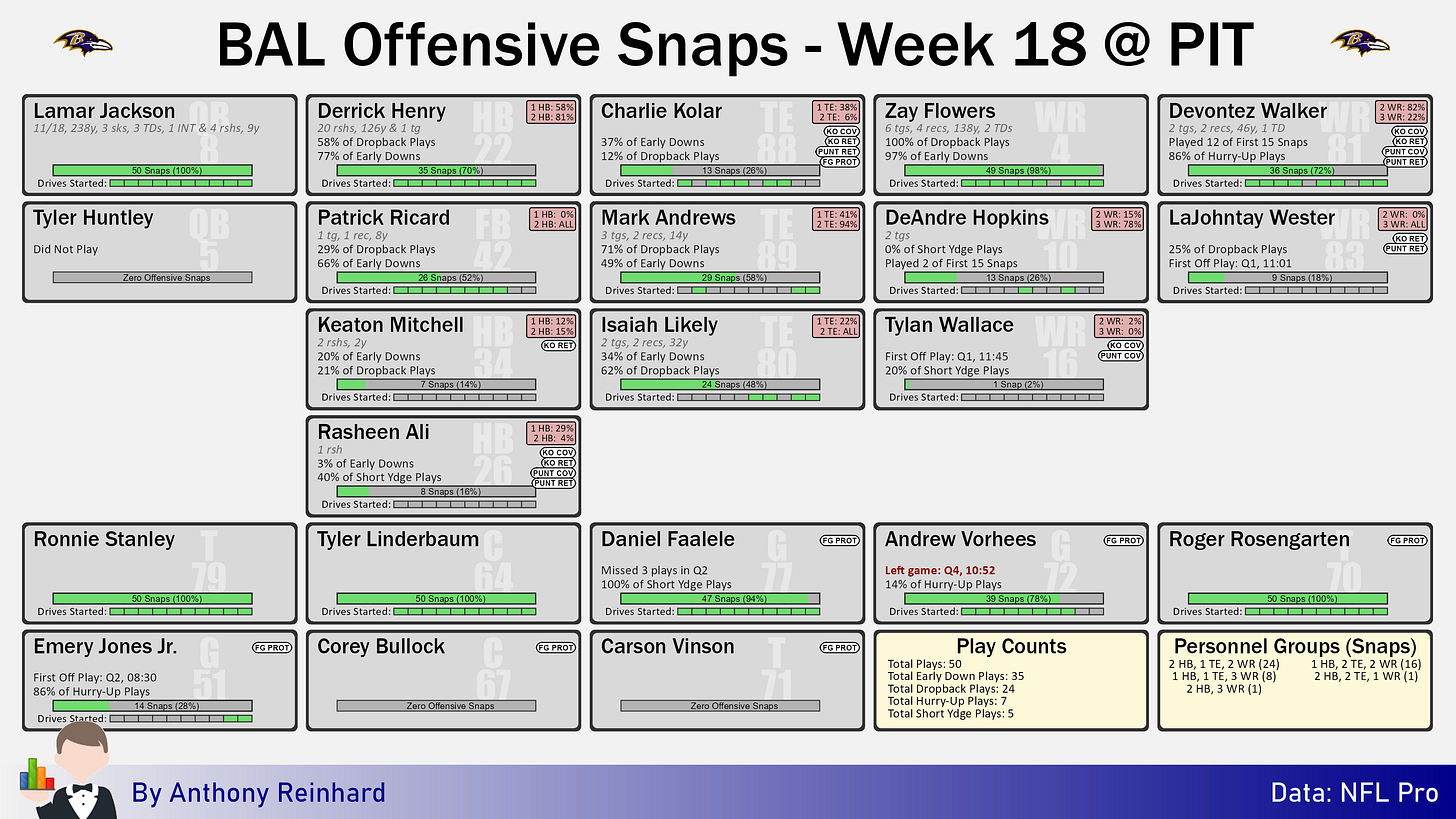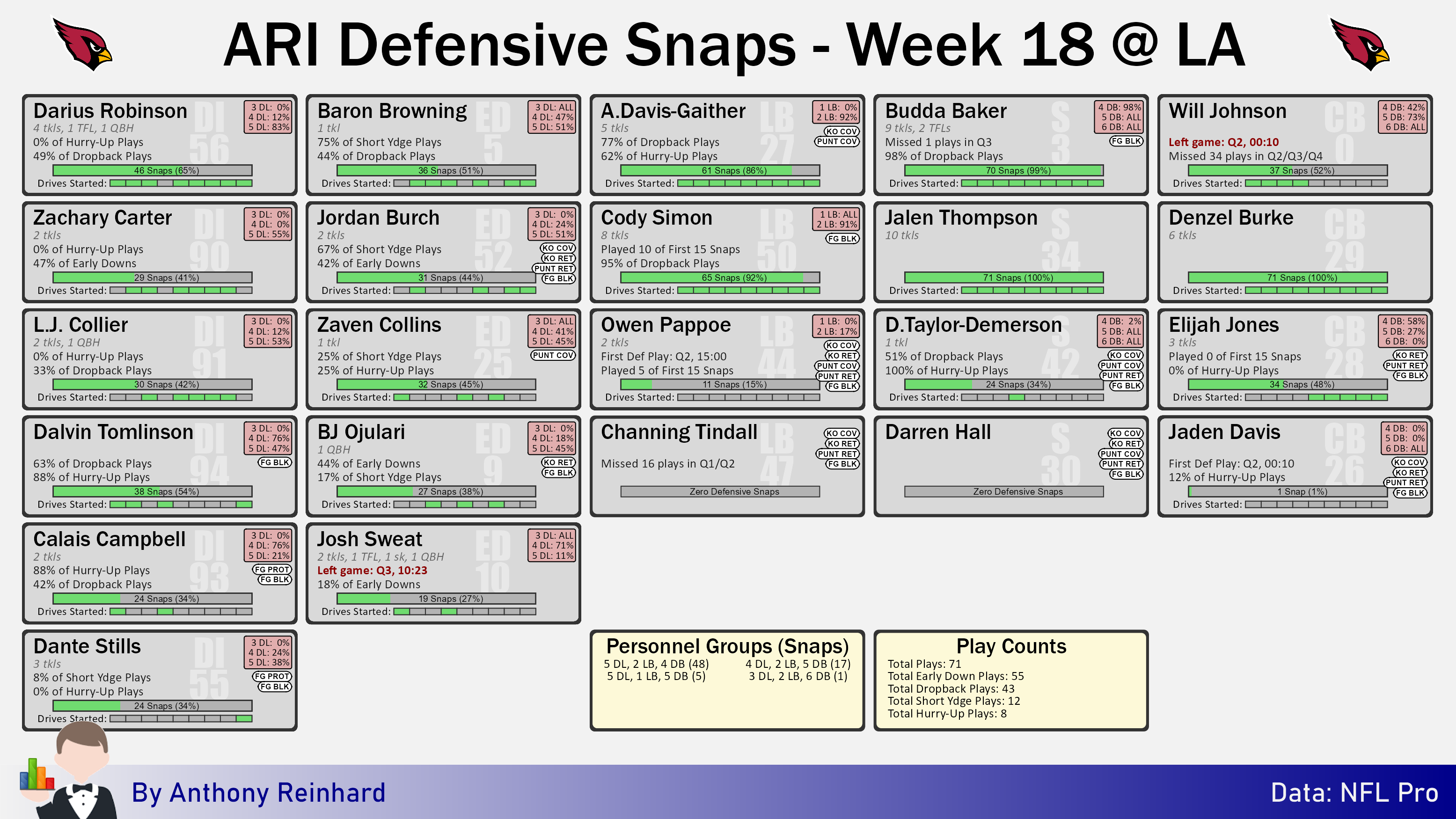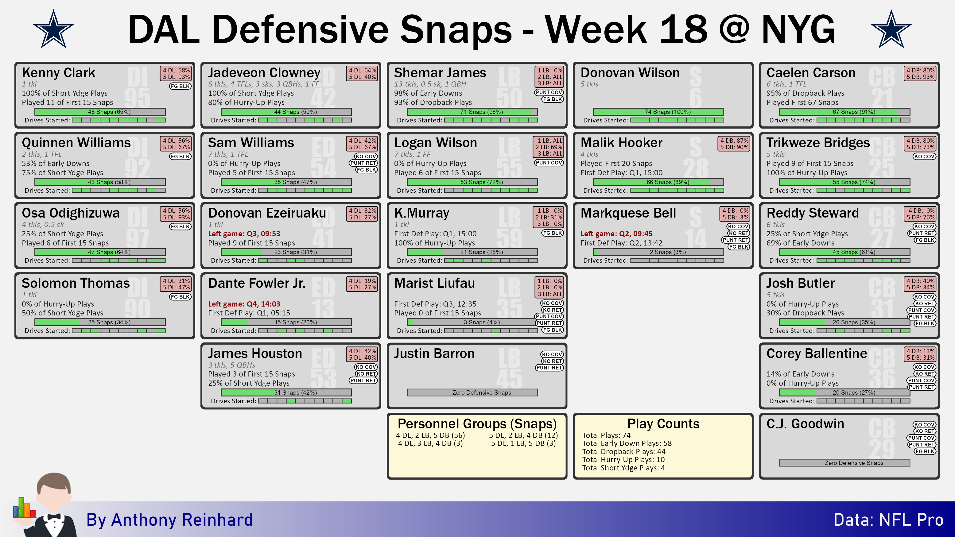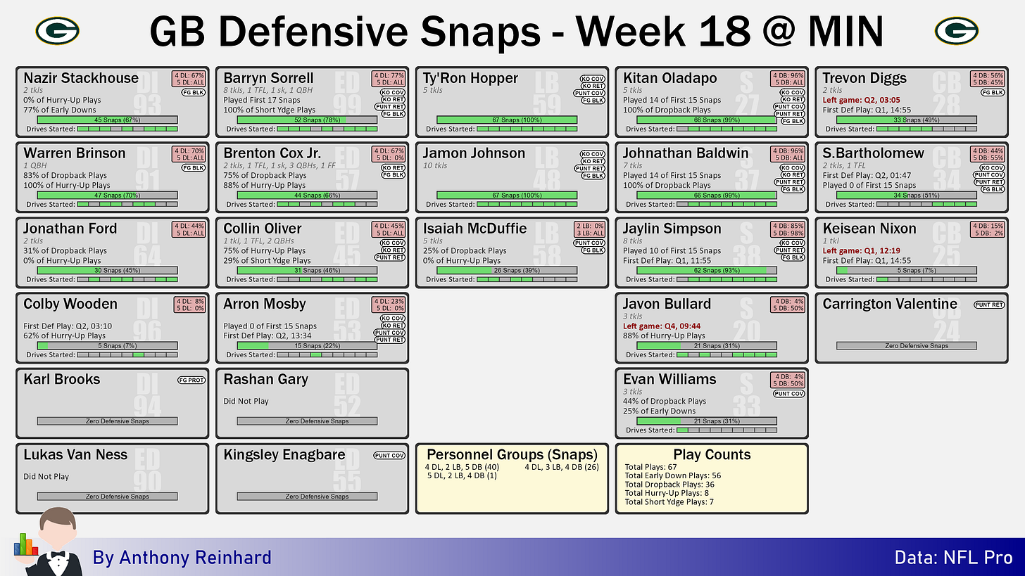 Snap Counts: Week 18Snap Count graphs for each team in Week 18Anthony ReinhardJan 05, 20261ShareCAR-TBSEA-SFNO-ATLCLE-CININD-HOUTEN-JAXGB-MINDAL-NYGNYJ-BUFDET-CHILAC-DENARI-LAKC-LVMIA-NEWAS-PHIBAL-PITSubscribePreviousNext