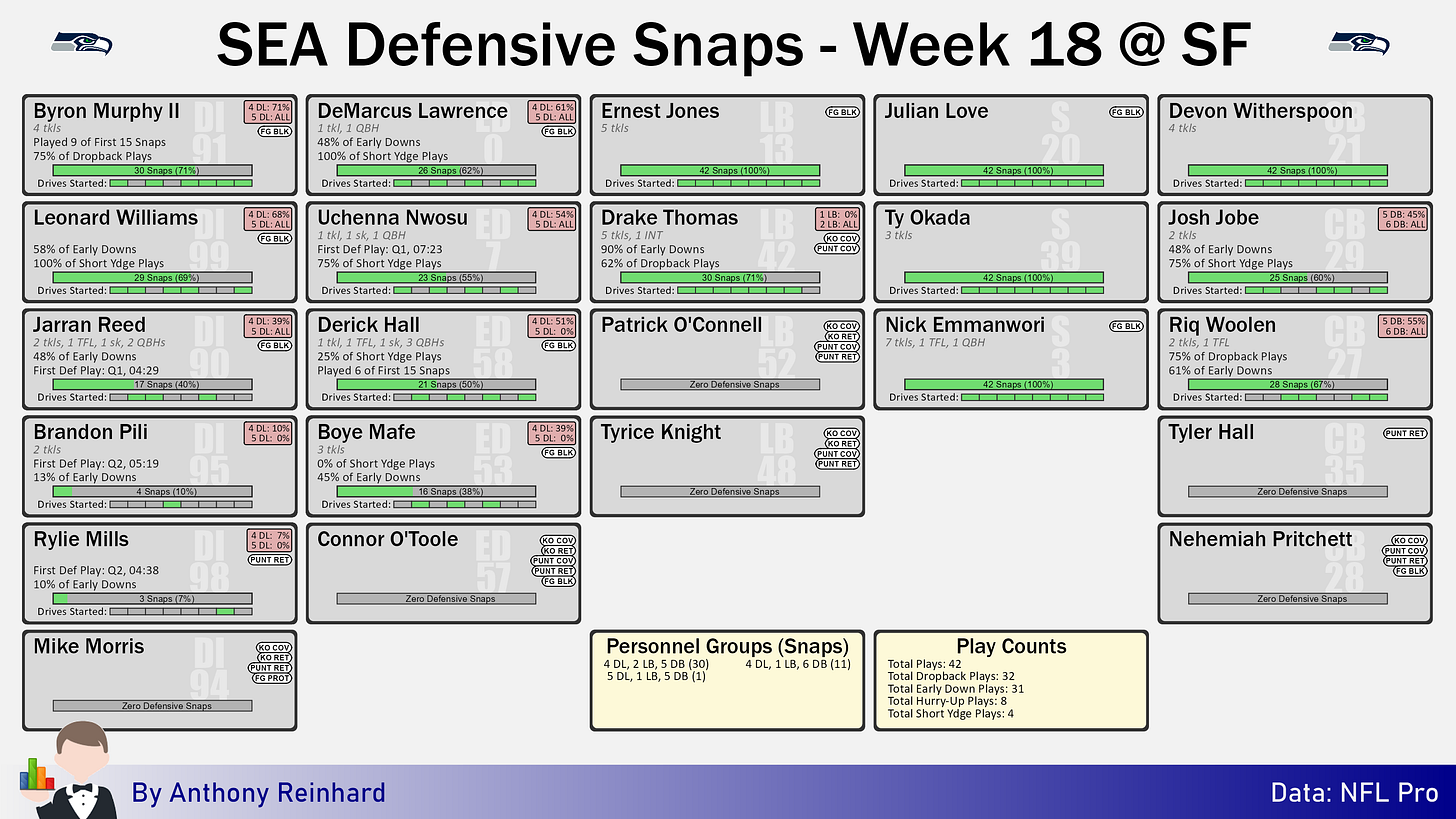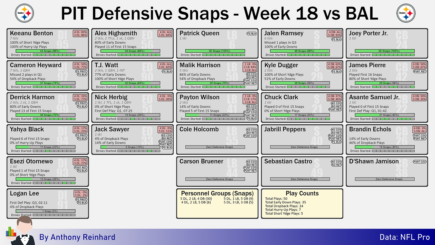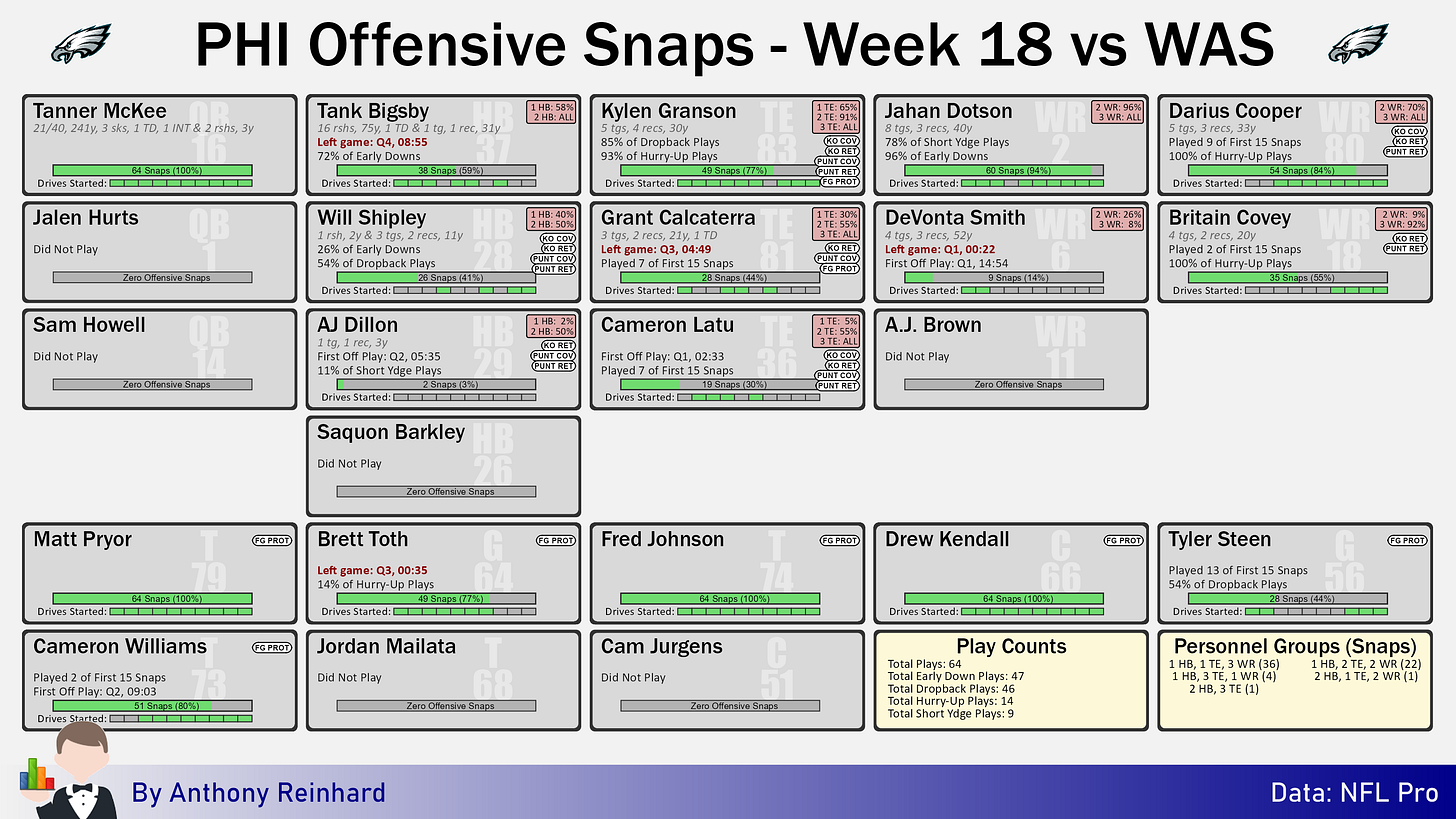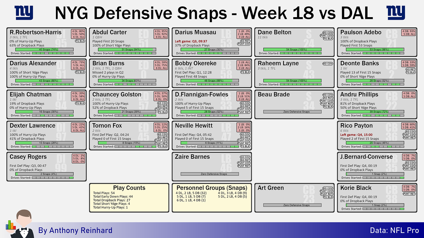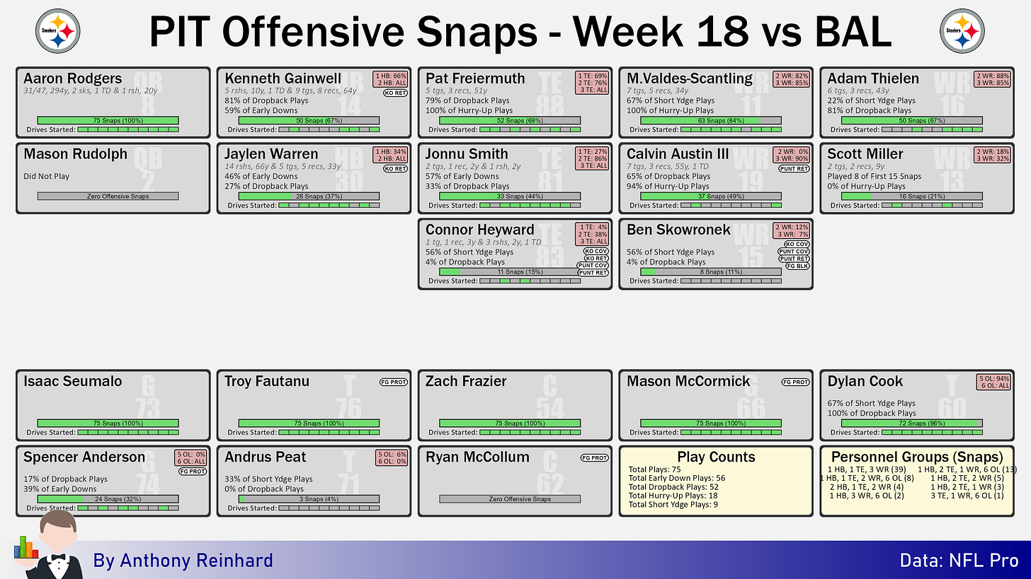 Snap Counts: Week 18Snap Count graphs for each team in Week 18Anthony ReinhardJan 05, 20261ShareCAR-TBSEA-SFNO-ATLCLE-CININD-HOUTEN-JAXGB-MINDAL-NYGNYJ-BUFDET-CHILAC-DENARI-LAKC-LVMIA-NEWAS-PHIBAL-PITSubscribePreviousNext