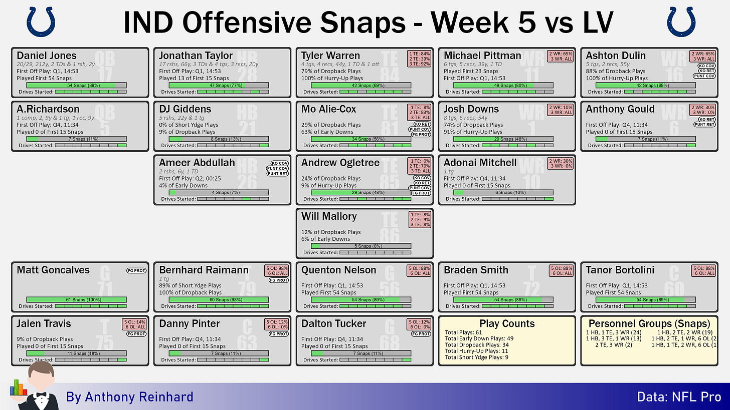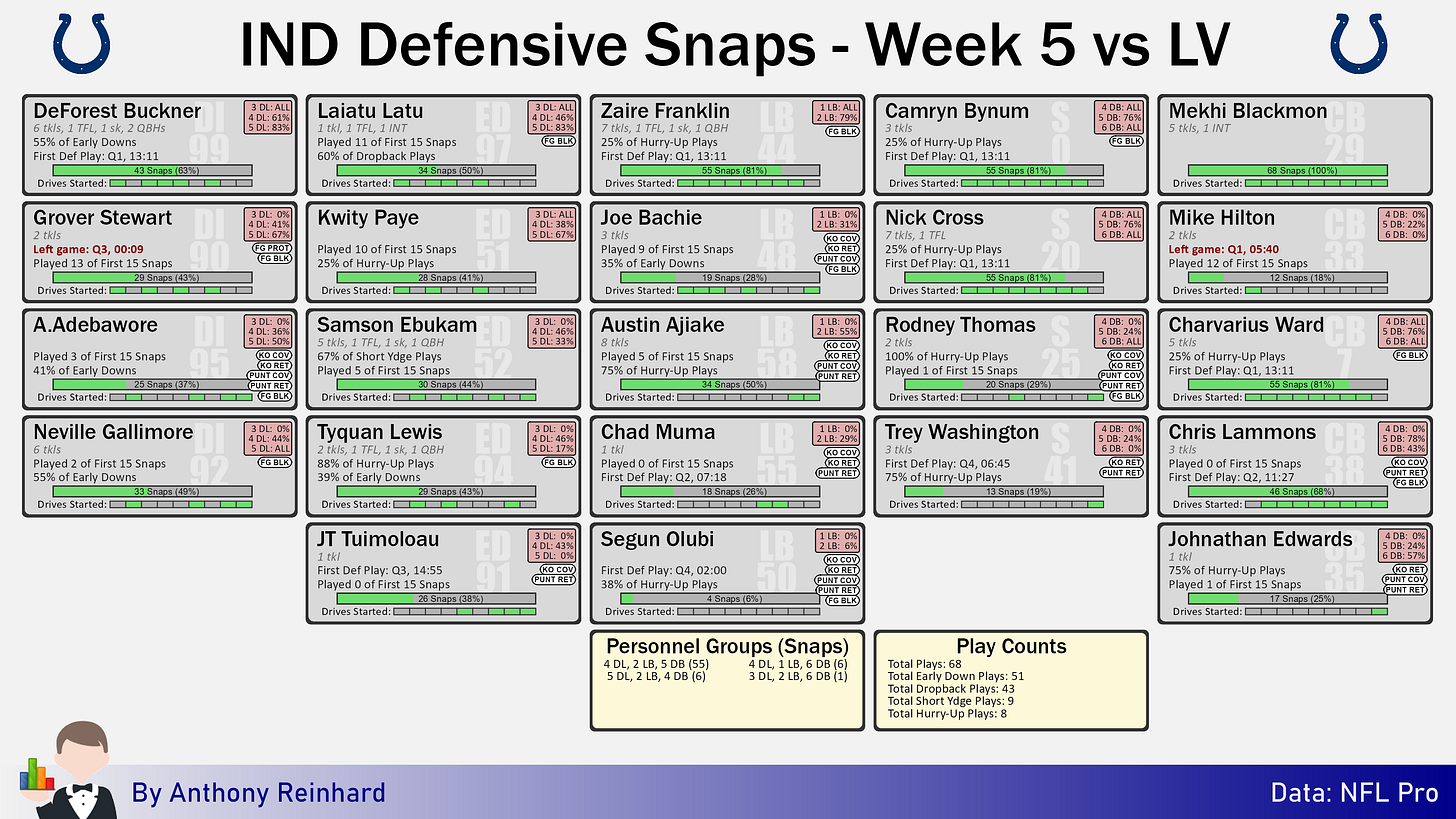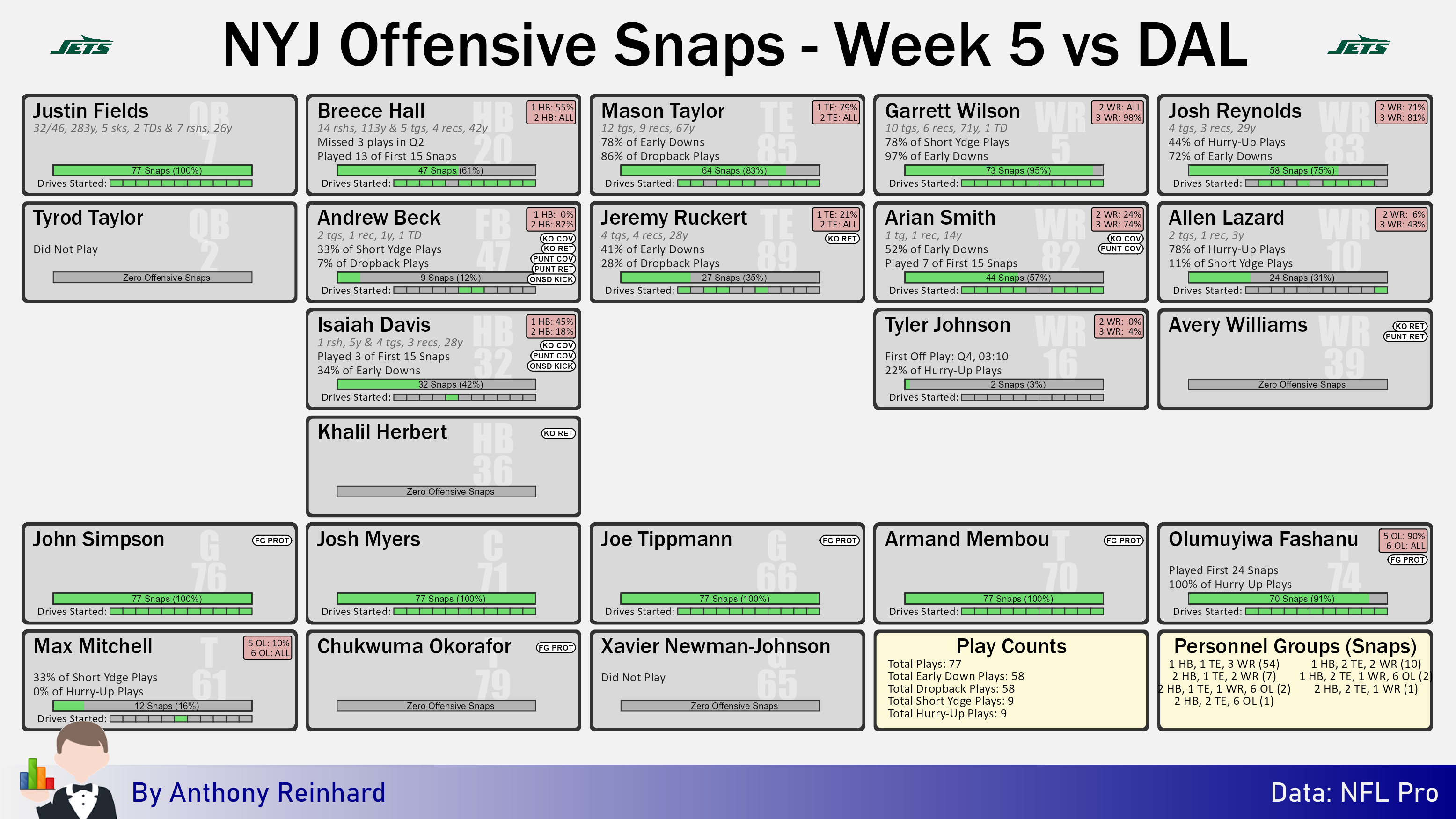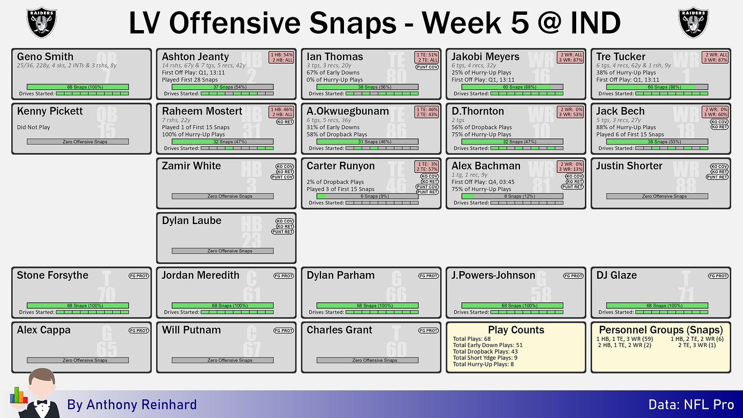 Snap Counts: Week 5Snap Count graphs for each team in Week 5Anthony ReinhardOct 06, 202511ShareThanks for reading!SubscribeSF-LAMIN-CLEHOU-BALMIA-CARLV-INDNYG-NODAL-NYJDEN-PHITEN-ARITB-SEADET-CINWAS-LACNE-BUFComing Soon!KC-JAXComing Soon!Previous