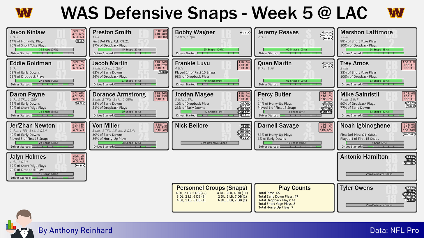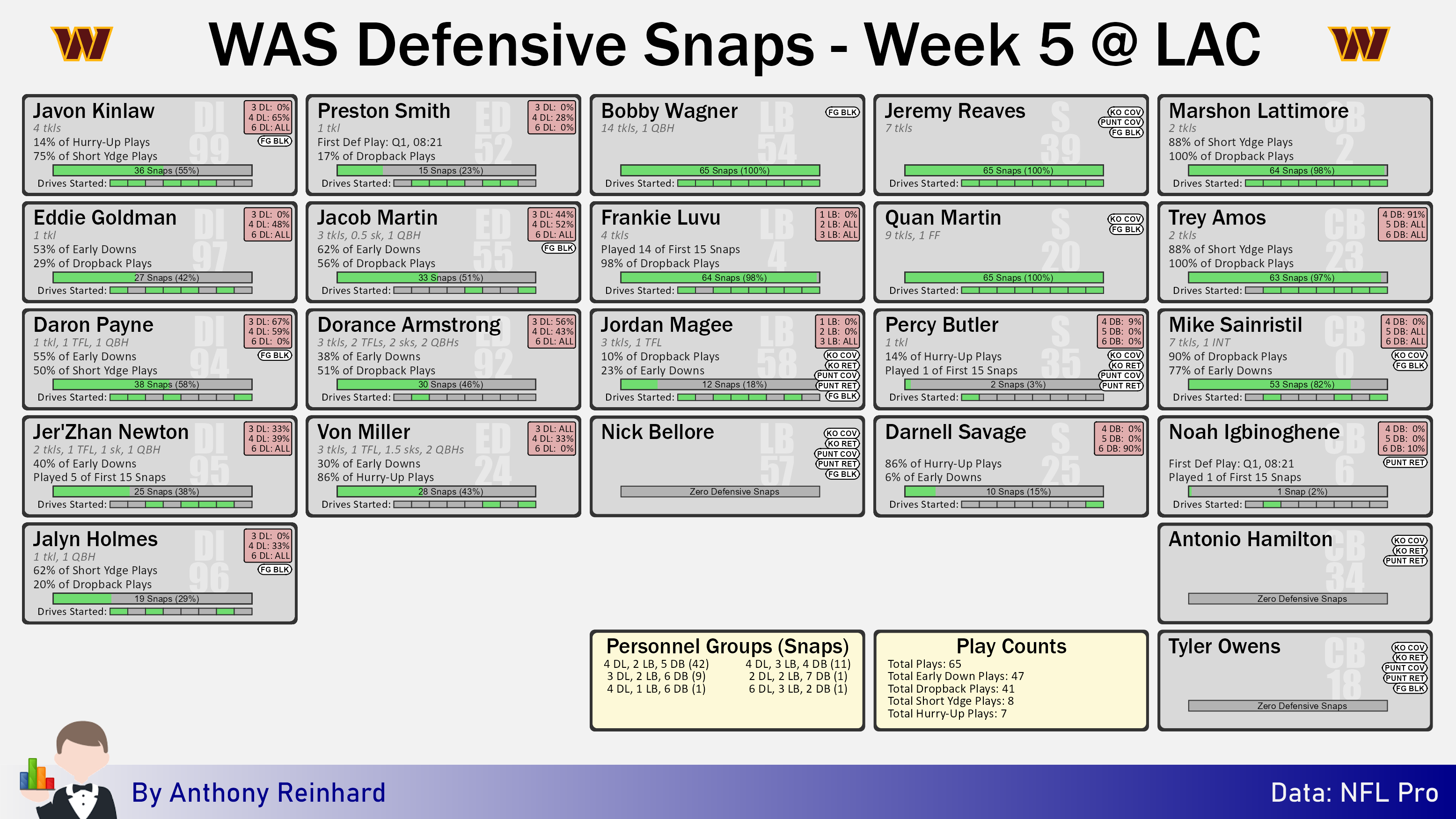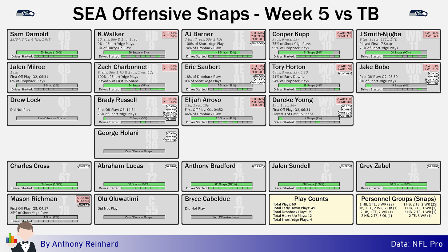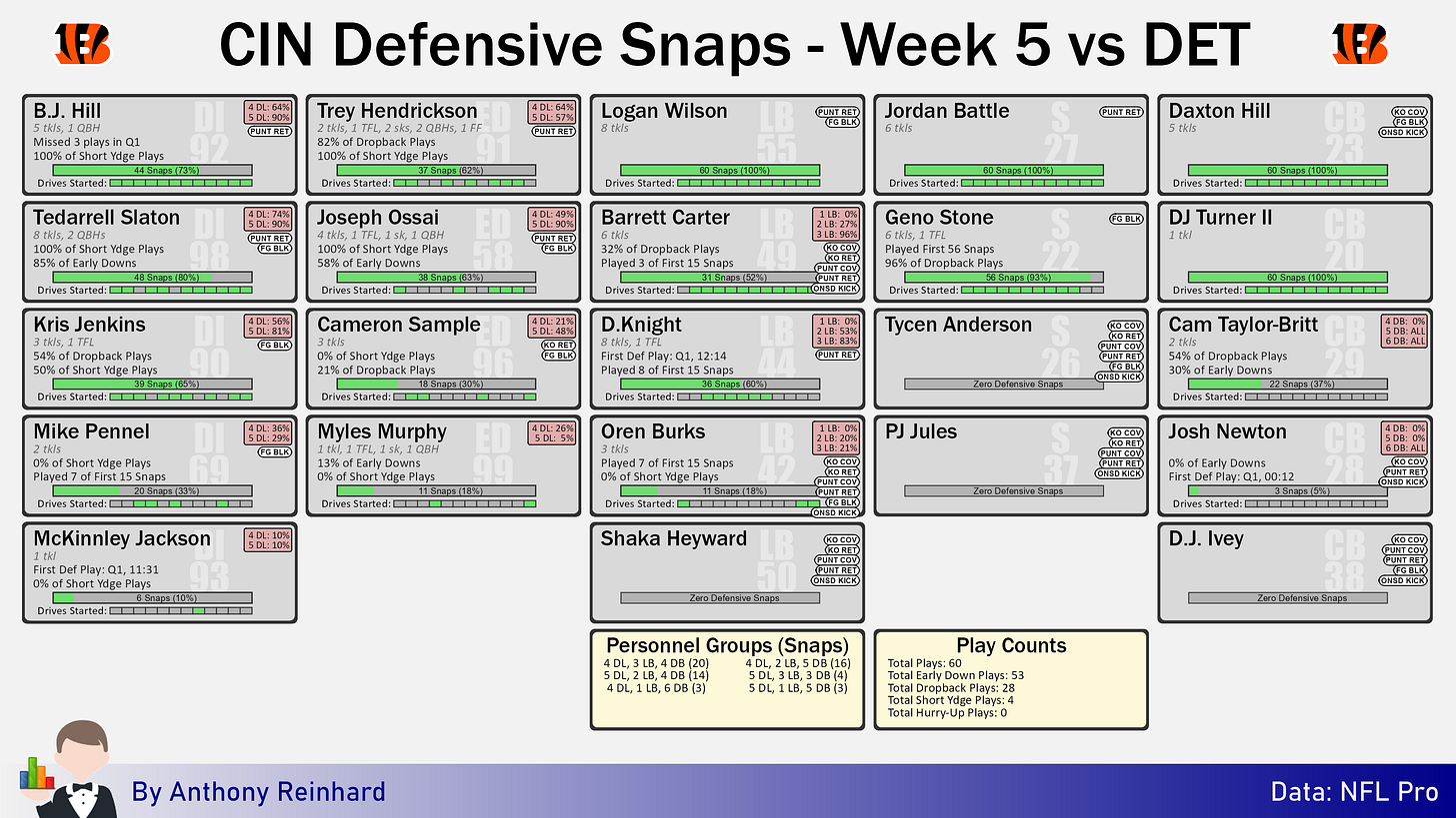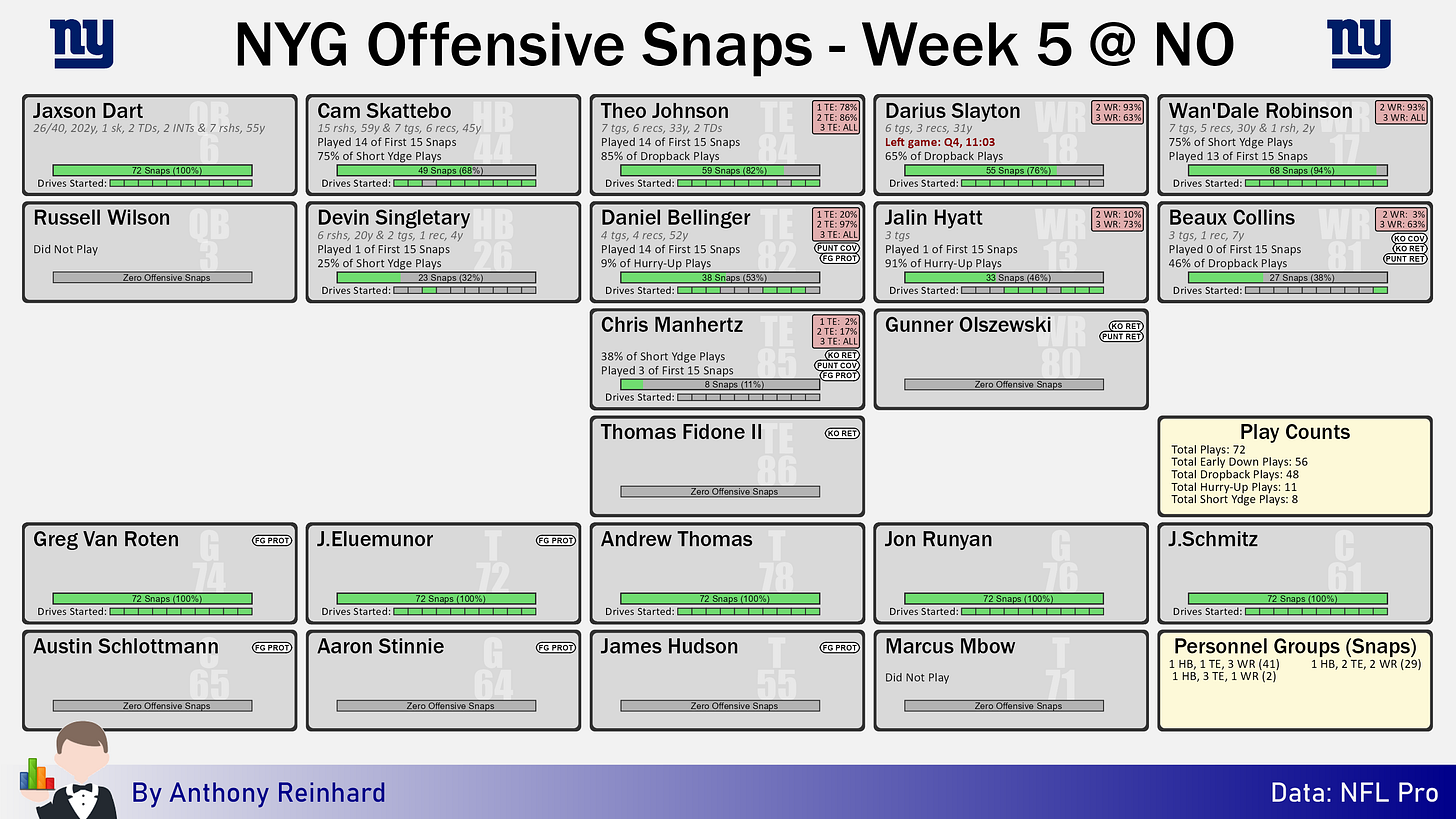 Snap Counts: Week 5Snap Count graphs for each team in Week 5Anthony ReinhardOct 06, 202511ShareThanks for reading!SubscribeSF-LAMIN-CLEHOU-BALMIA-CARLV-INDNYG-NODAL-NYJDEN-PHITEN-ARITB-SEADET-CINWAS-LACNE-BUFComing Soon!KC-JAXComing Soon!Previous