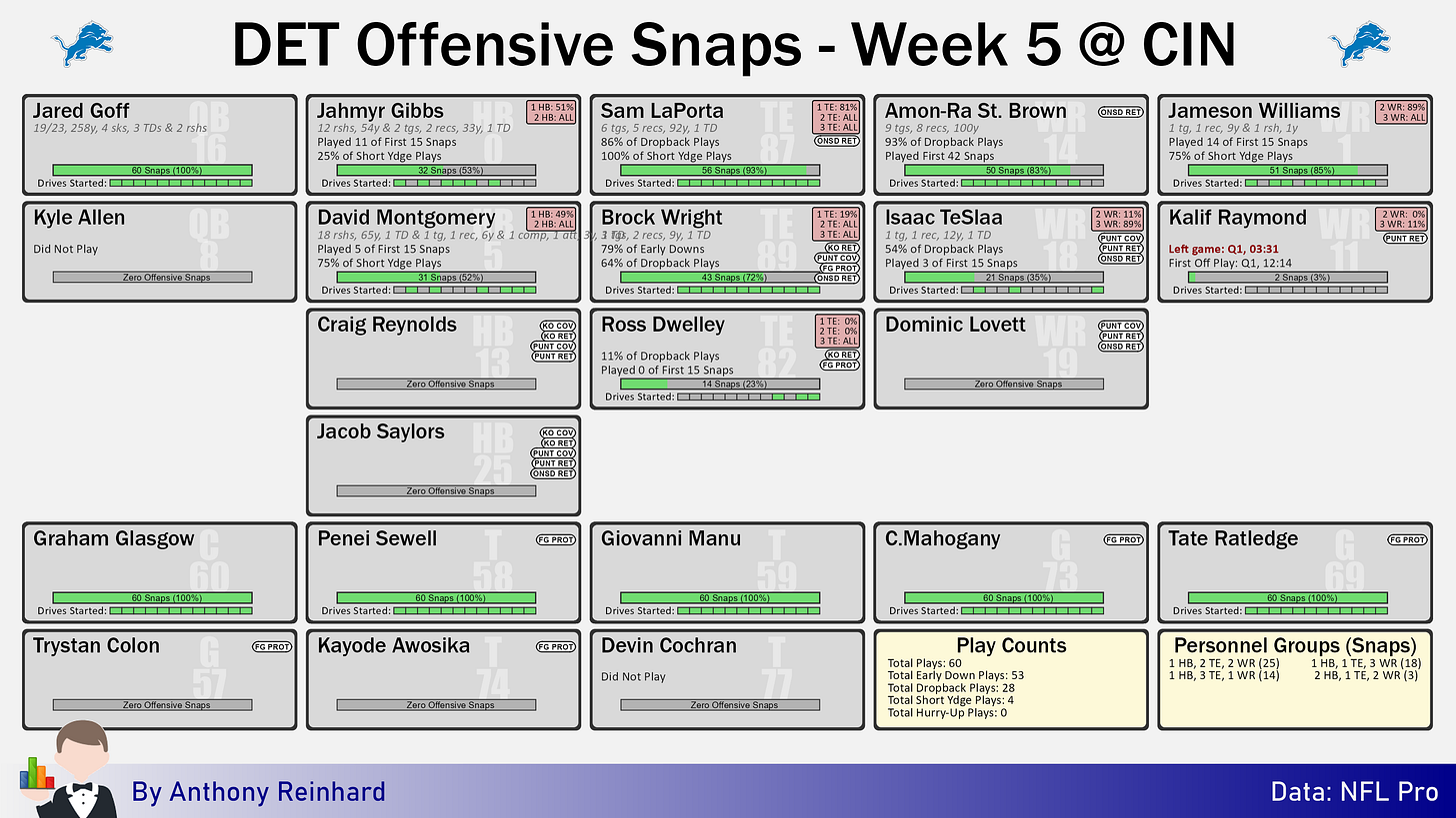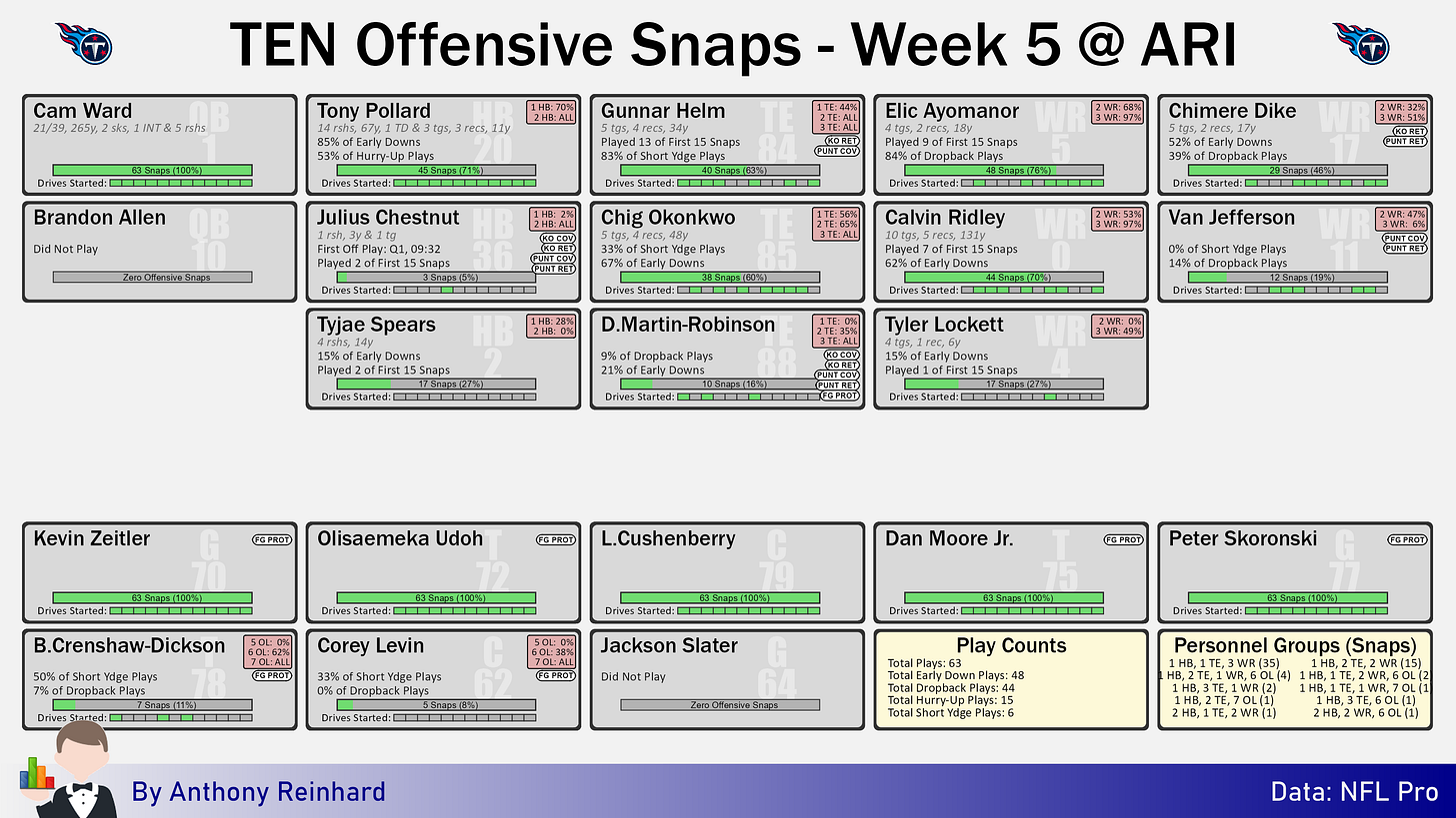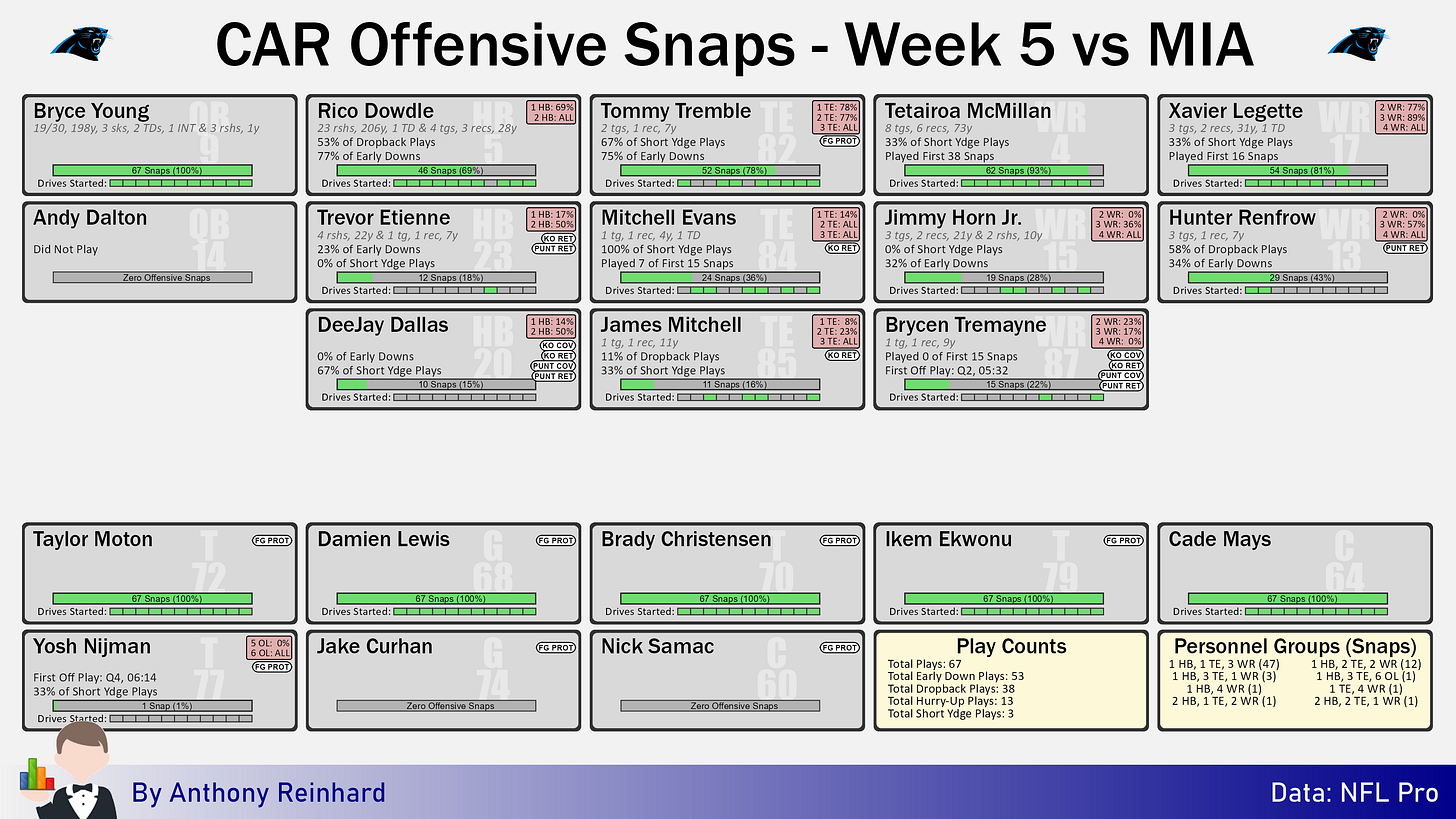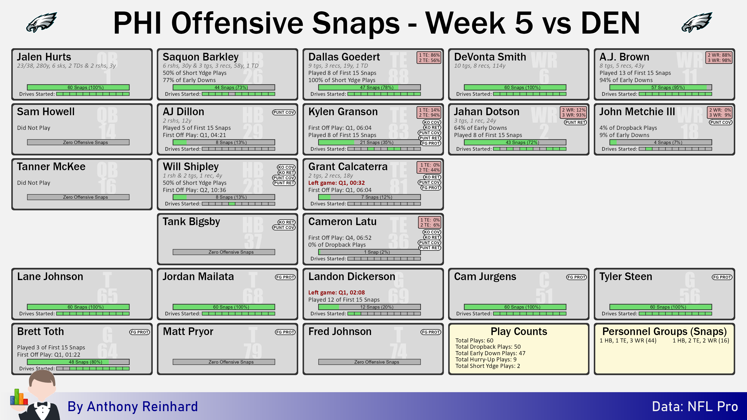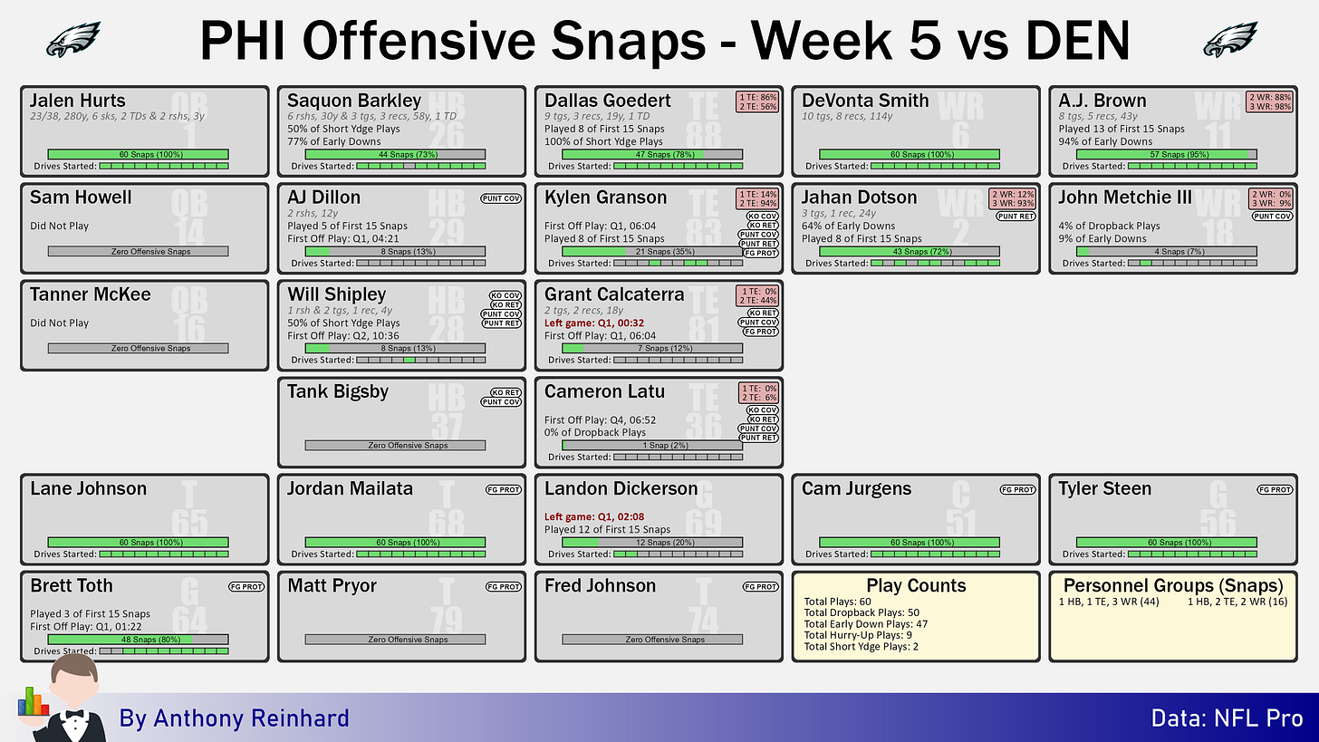Snap Counts: Week 5Snap Count graphs for each team in Week 5Anthony ReinhardOct 06, 202511ShareThanks for reading!SubscribeSF-LAMIN-CLEHOU-BALMIA-CARLV-INDNYG-NODAL-NYJDEN-PHITEN-ARITB-SEADET-CINWAS-LACNE-BUFComing Soon!KC-JAXComing Soon!Previous