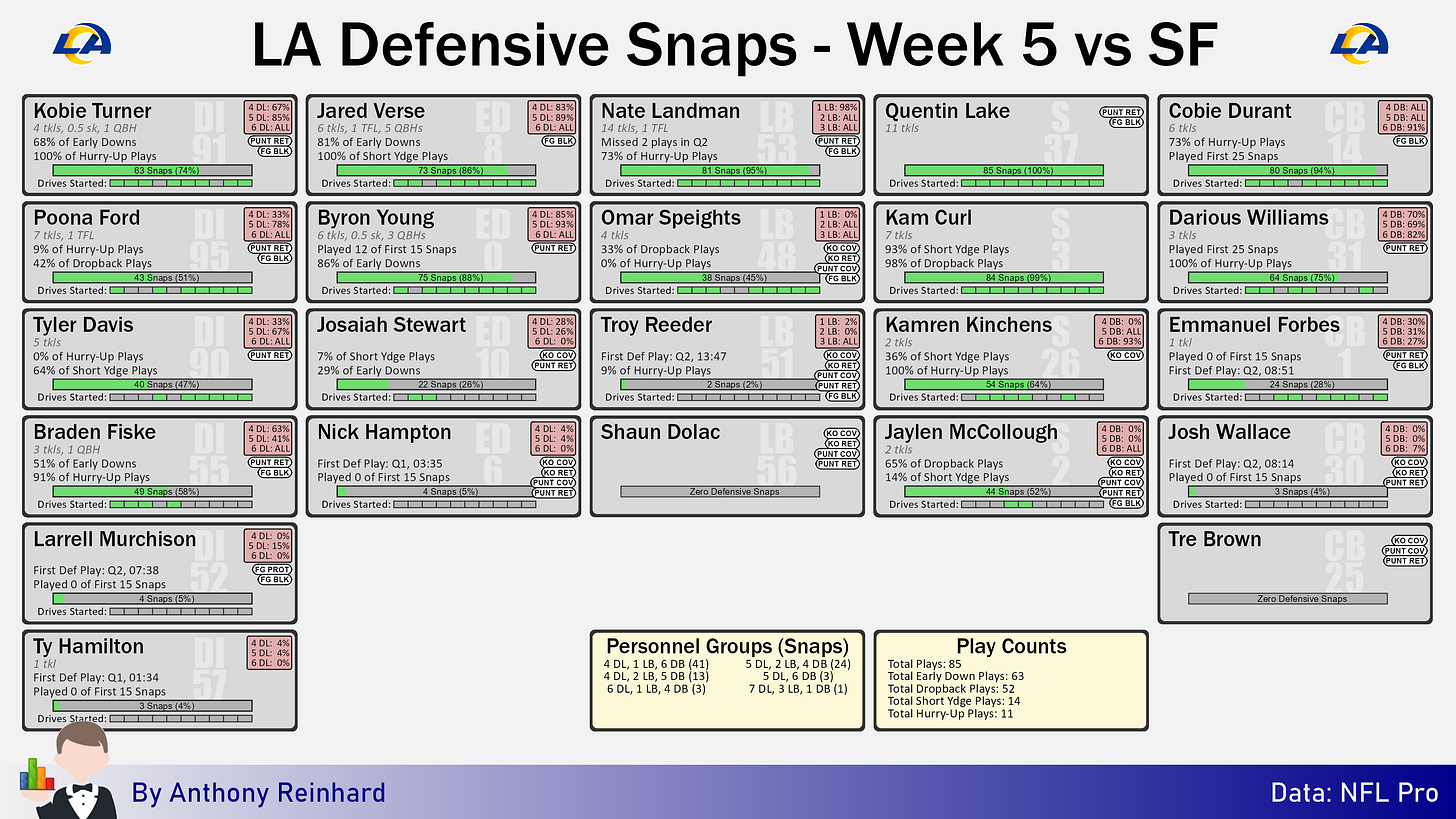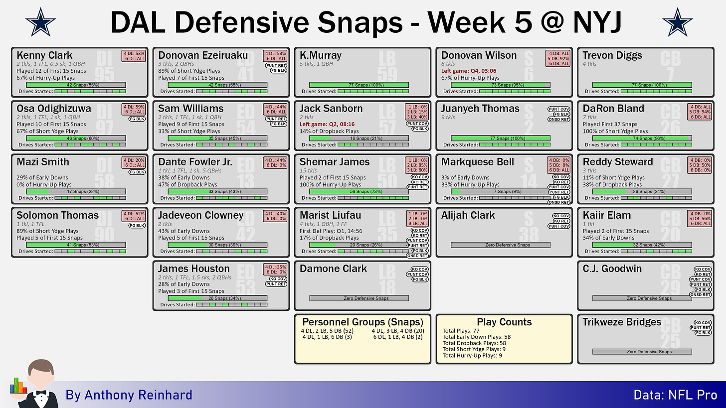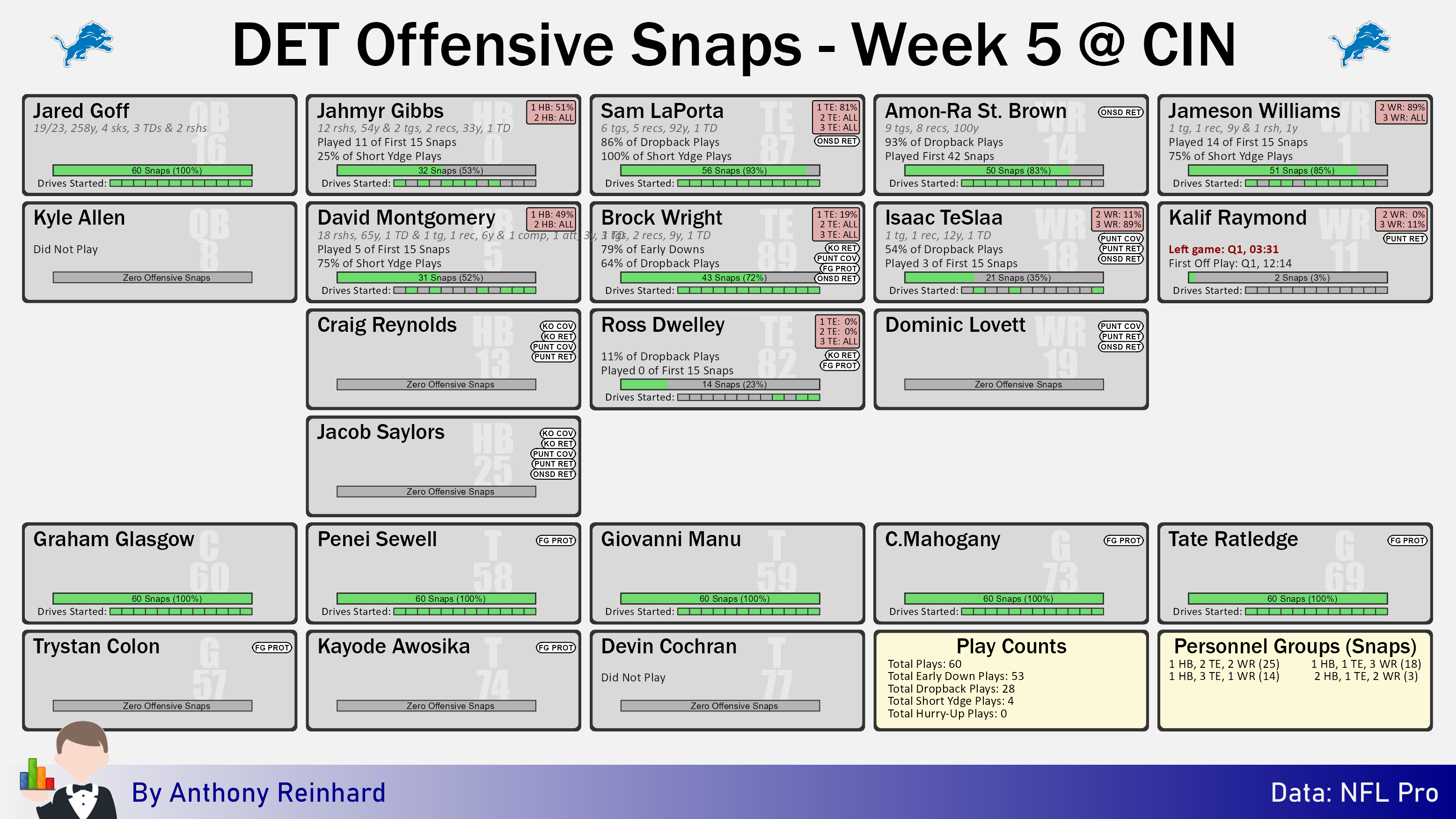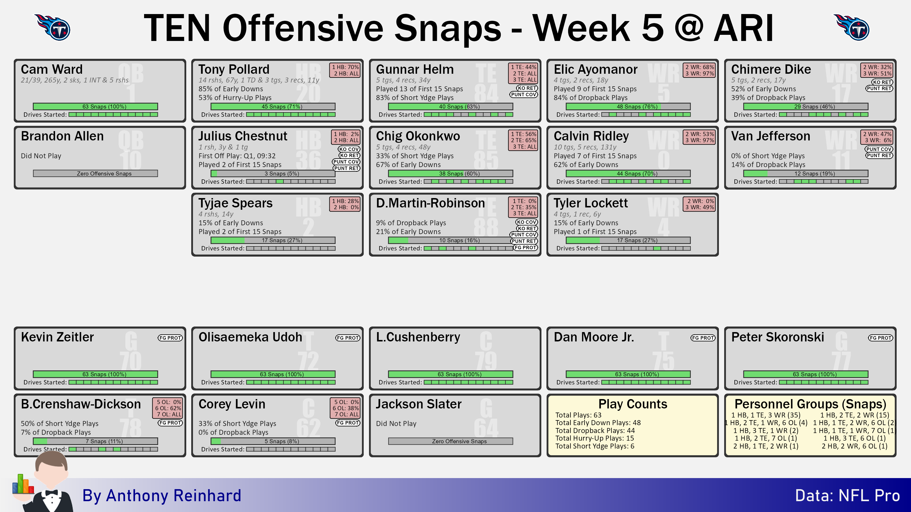 Snap Counts: Week 5Snap Count graphs for each team in Week 5Anthony ReinhardOct 06, 202511ShareThanks for reading!SubscribeSF-LAMIN-CLEHOU-BALMIA-CARLV-INDNYG-NODAL-NYJDEN-PHITEN-ARITB-SEADET-CINWAS-LACNE-BUFComing Soon!KC-JAXComing Soon!Previous