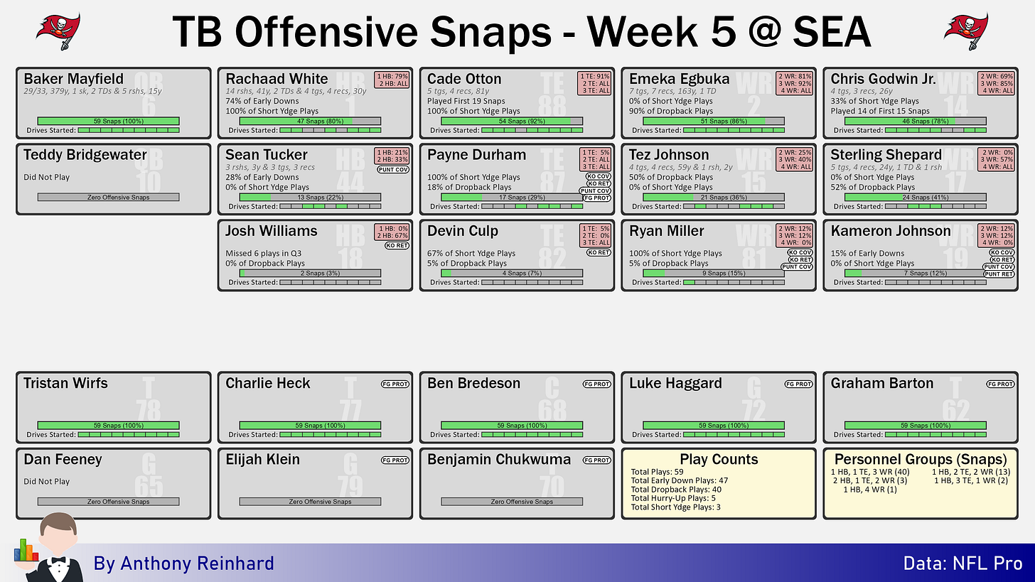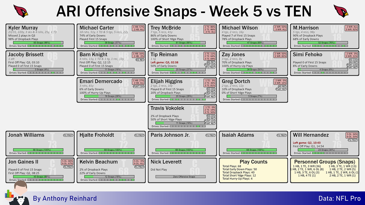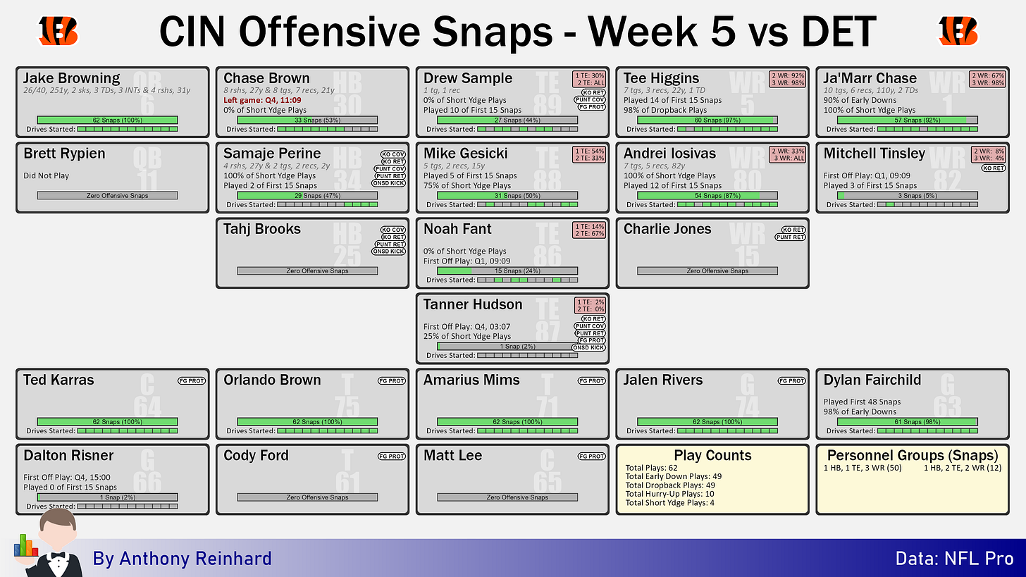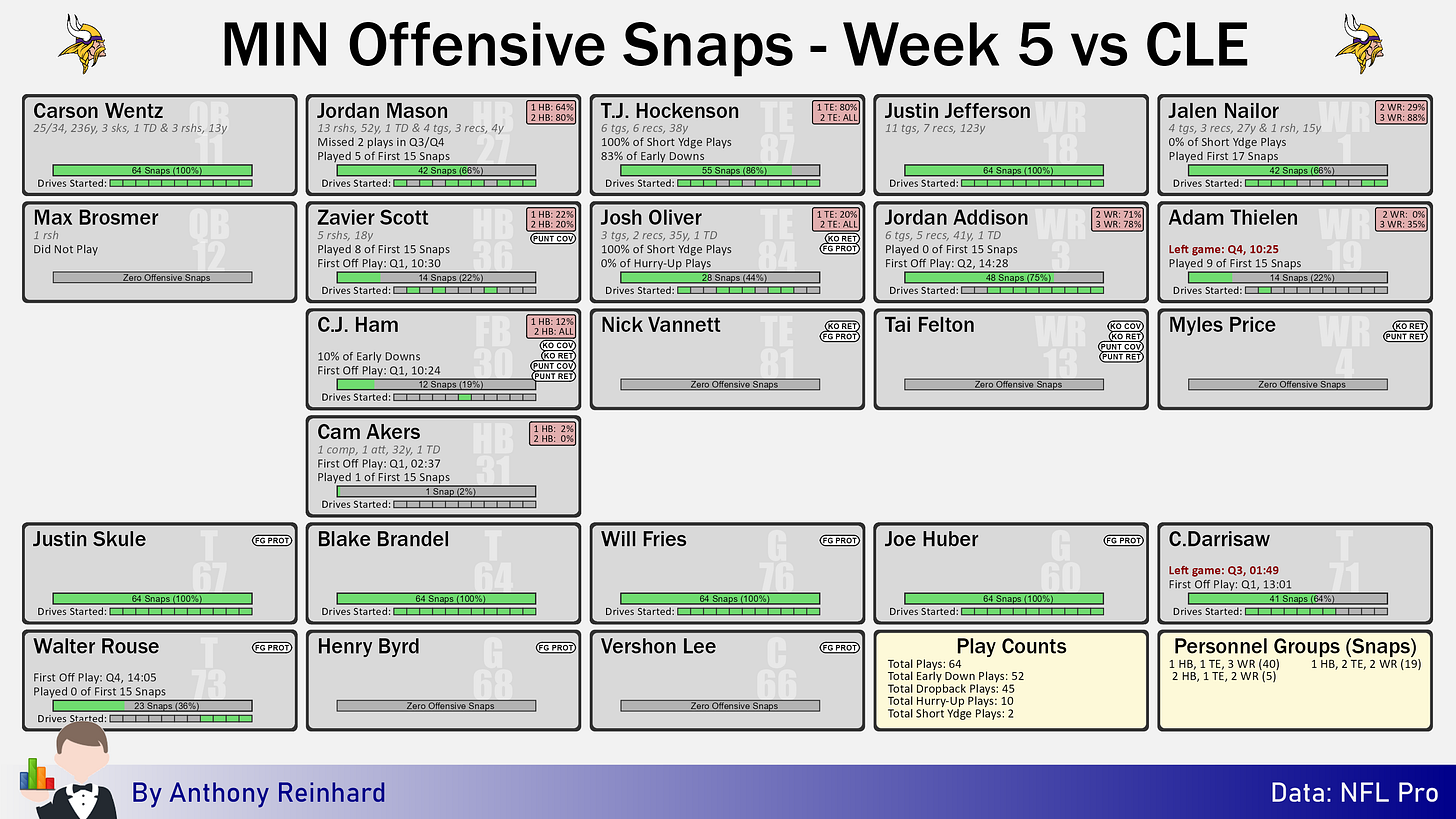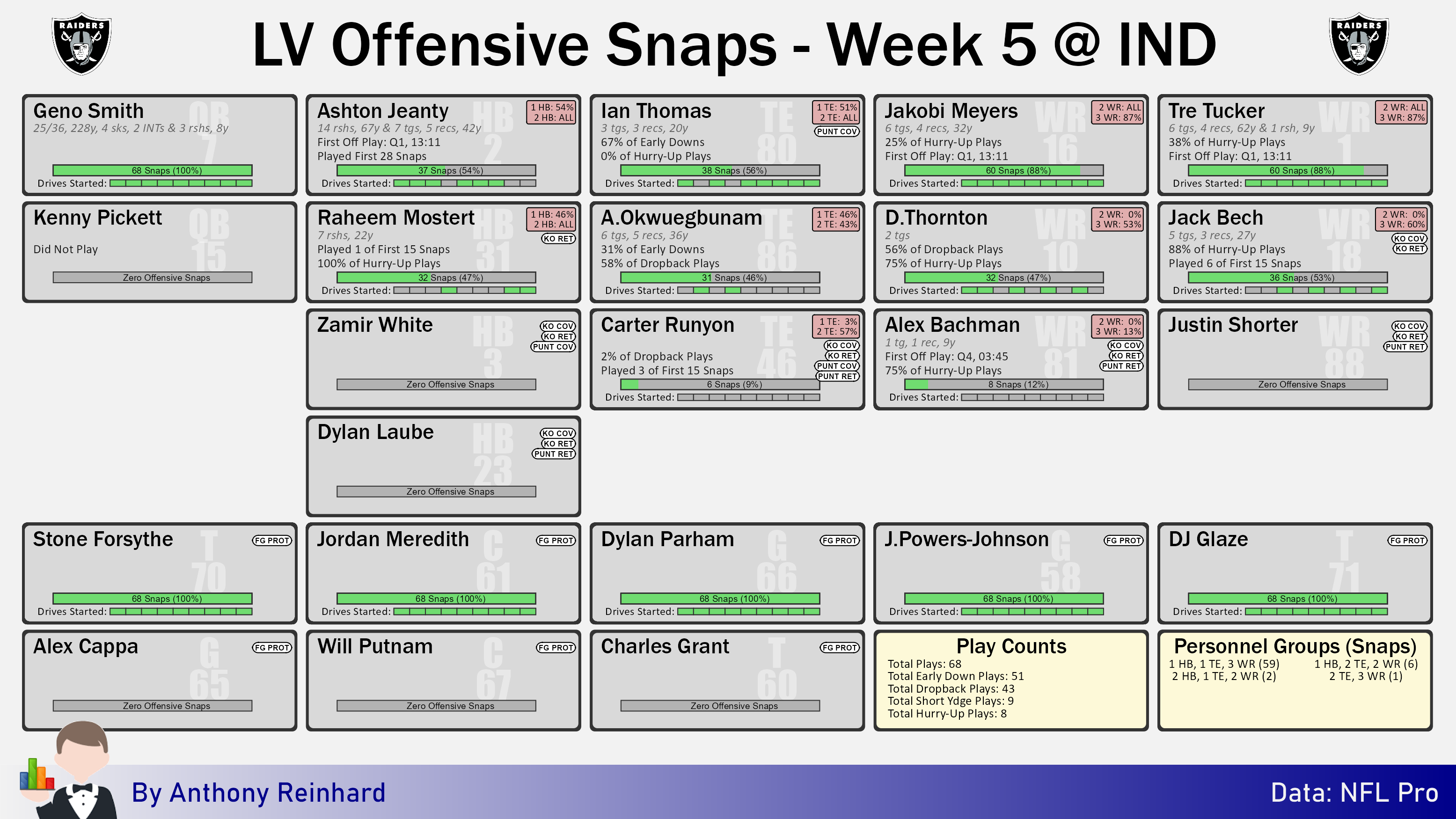 Snap Counts: Week 5Snap Count graphs for each team in Week 5Anthony ReinhardOct 06, 202511ShareThanks for reading!SubscribeSF-LAMIN-CLEHOU-BALMIA-CARLV-INDNYG-NODAL-NYJDEN-PHITEN-ARITB-SEADET-CINWAS-LACNE-BUFComing Soon!KC-JAXComing Soon!Previous