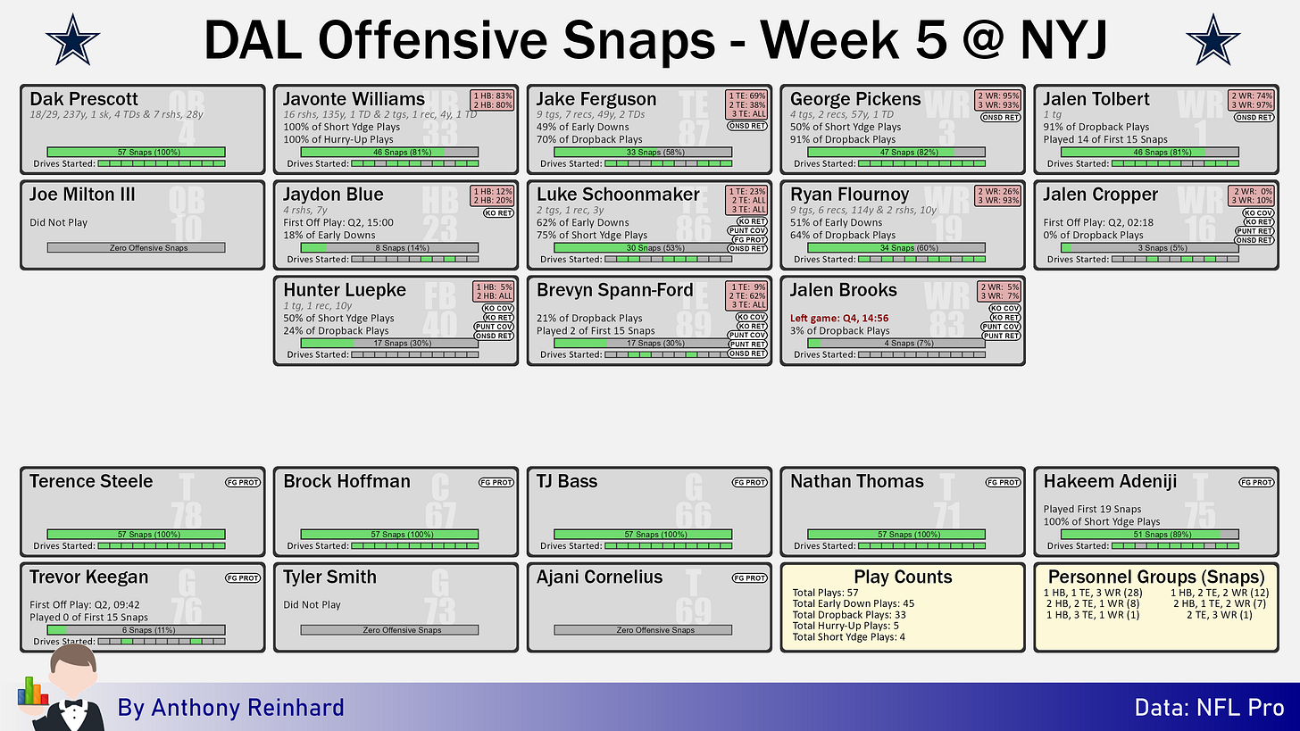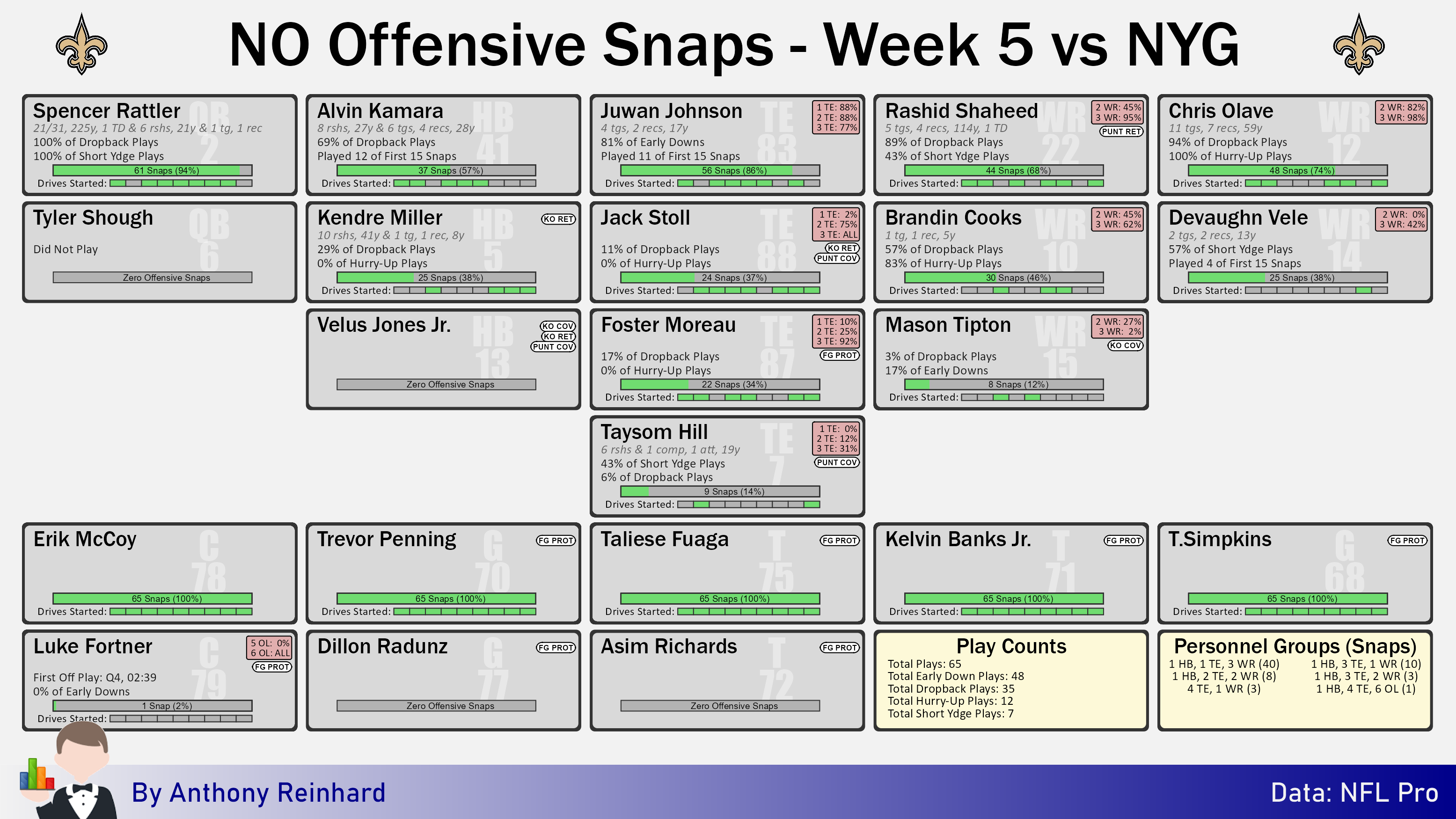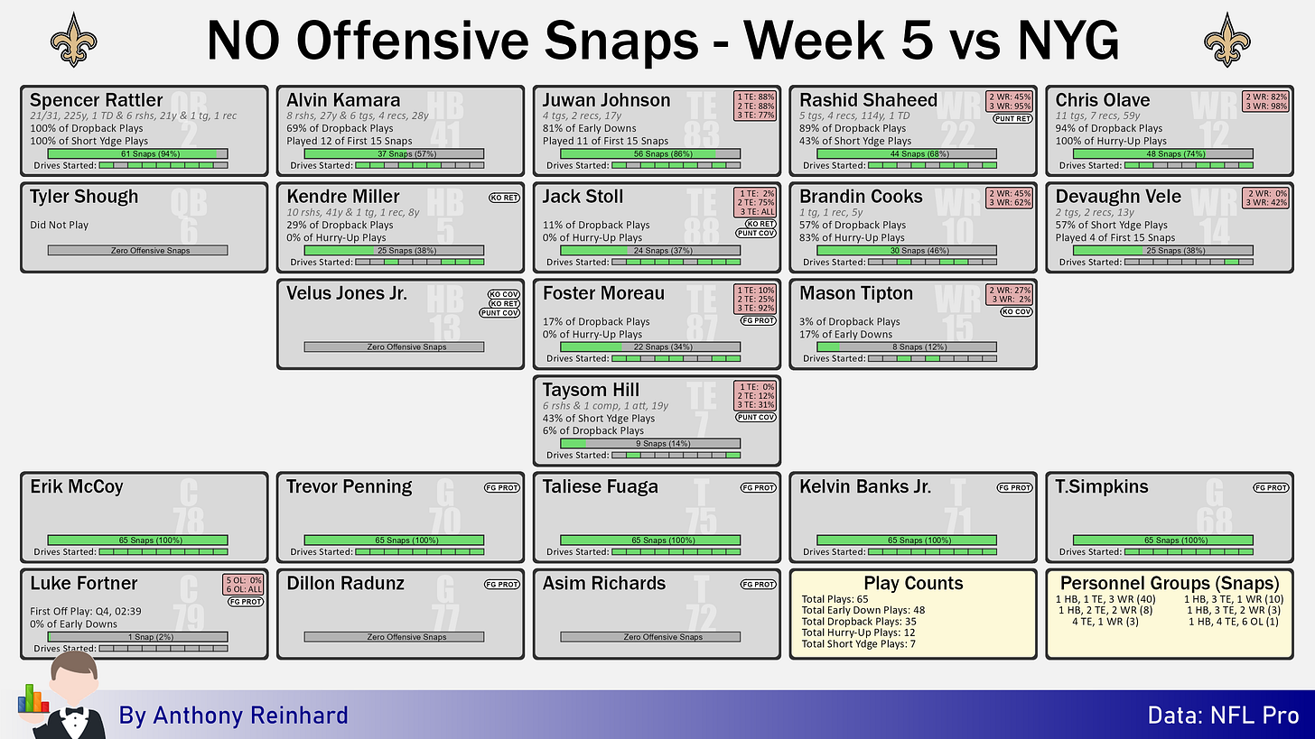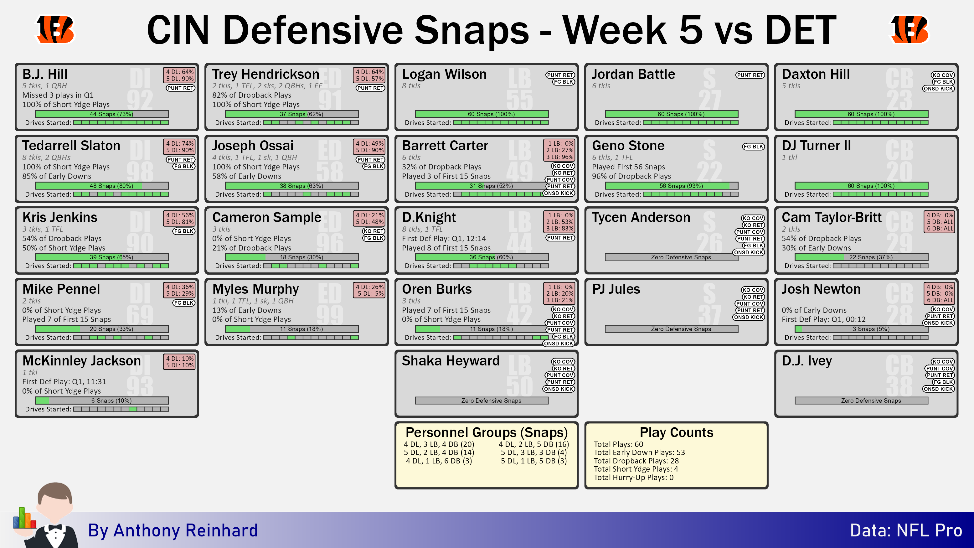 Snap Counts: Week 5Snap Count graphs for each team in Week 5Anthony ReinhardOct 06, 202511ShareThanks for reading!SubscribeSF-LAMIN-CLEHOU-BALMIA-CARLV-INDNYG-NODAL-NYJDEN-PHITEN-ARITB-SEADET-CINWAS-LACNE-BUFComing Soon!KC-JAXComing Soon!Previous