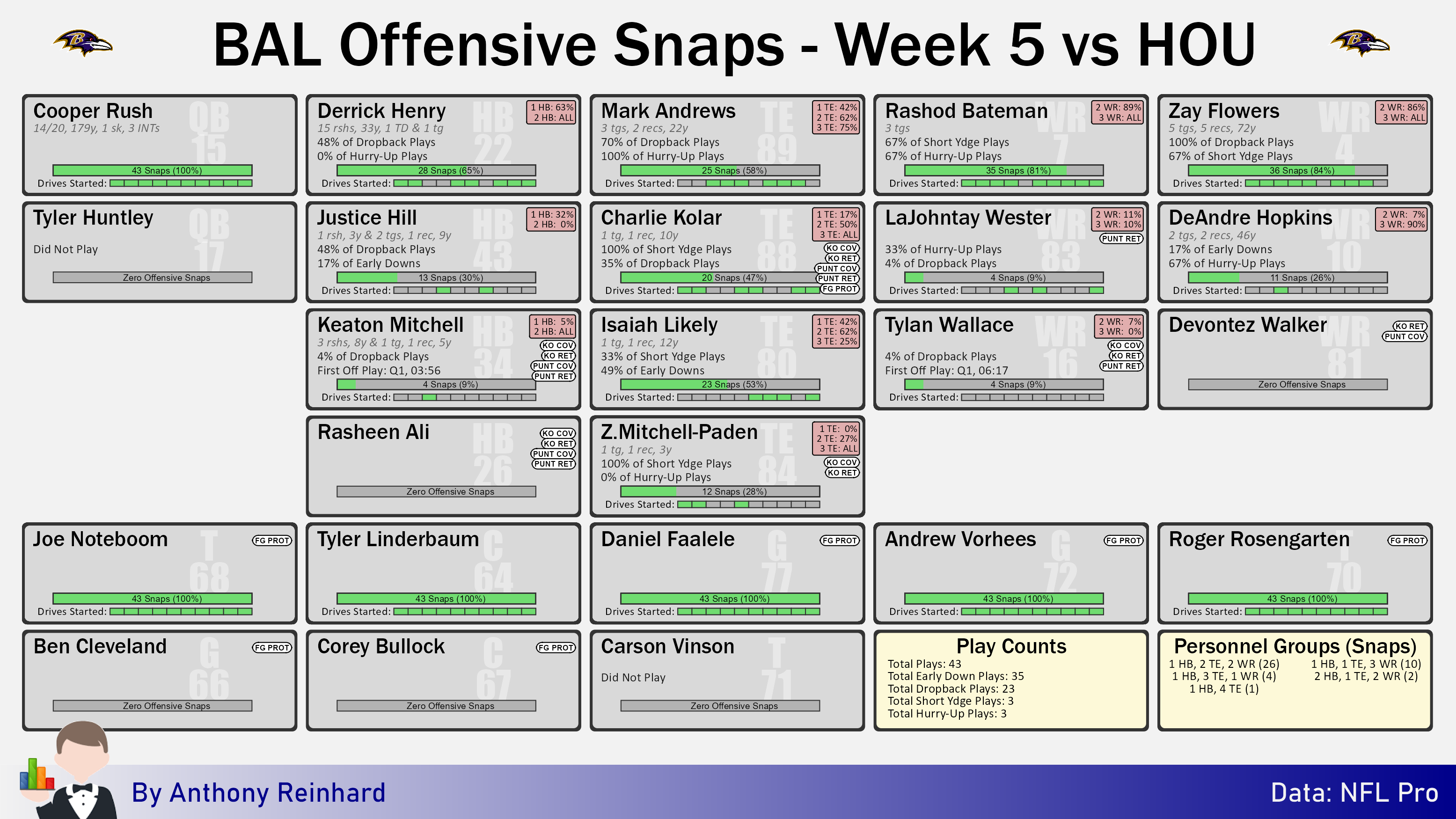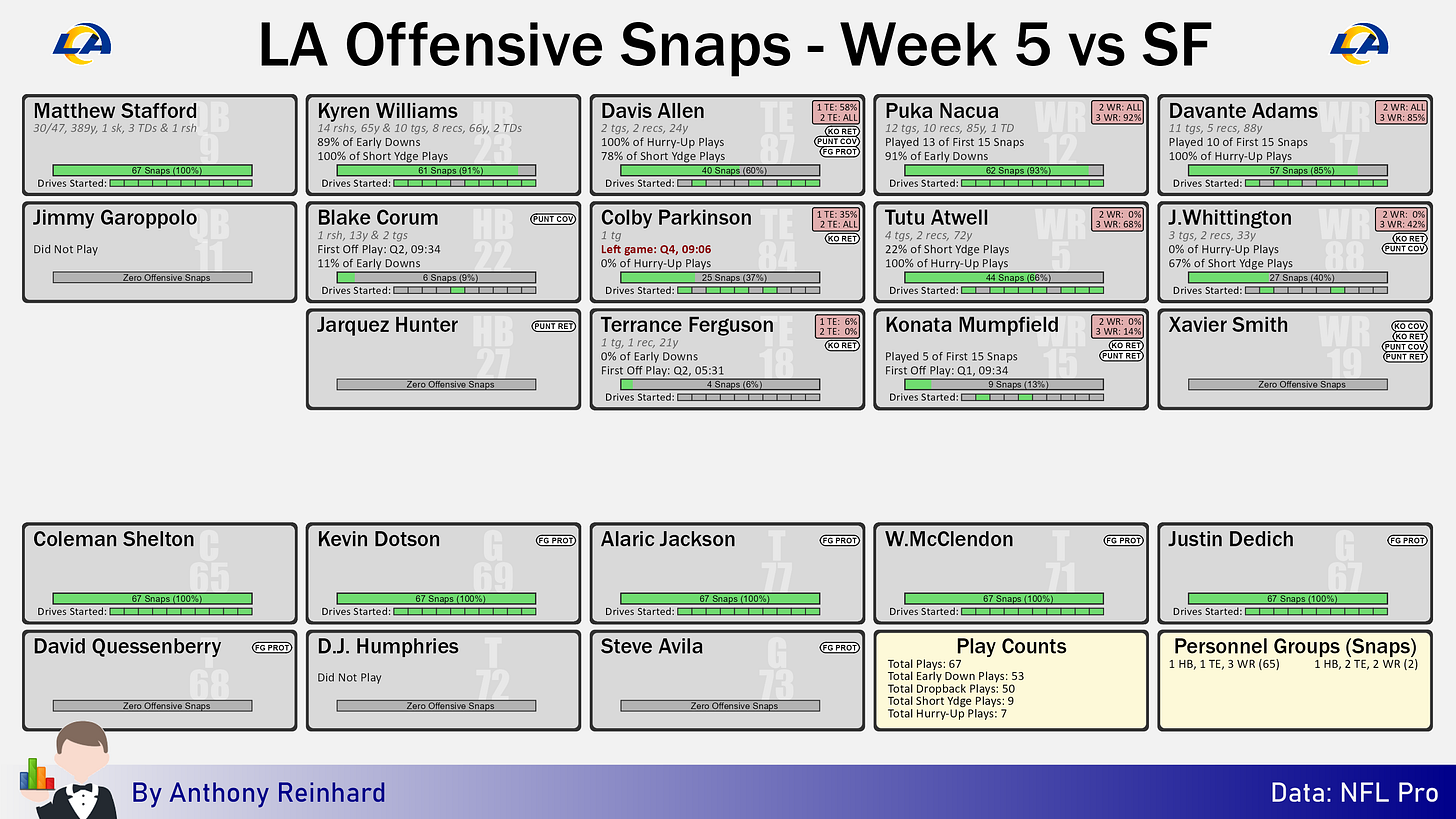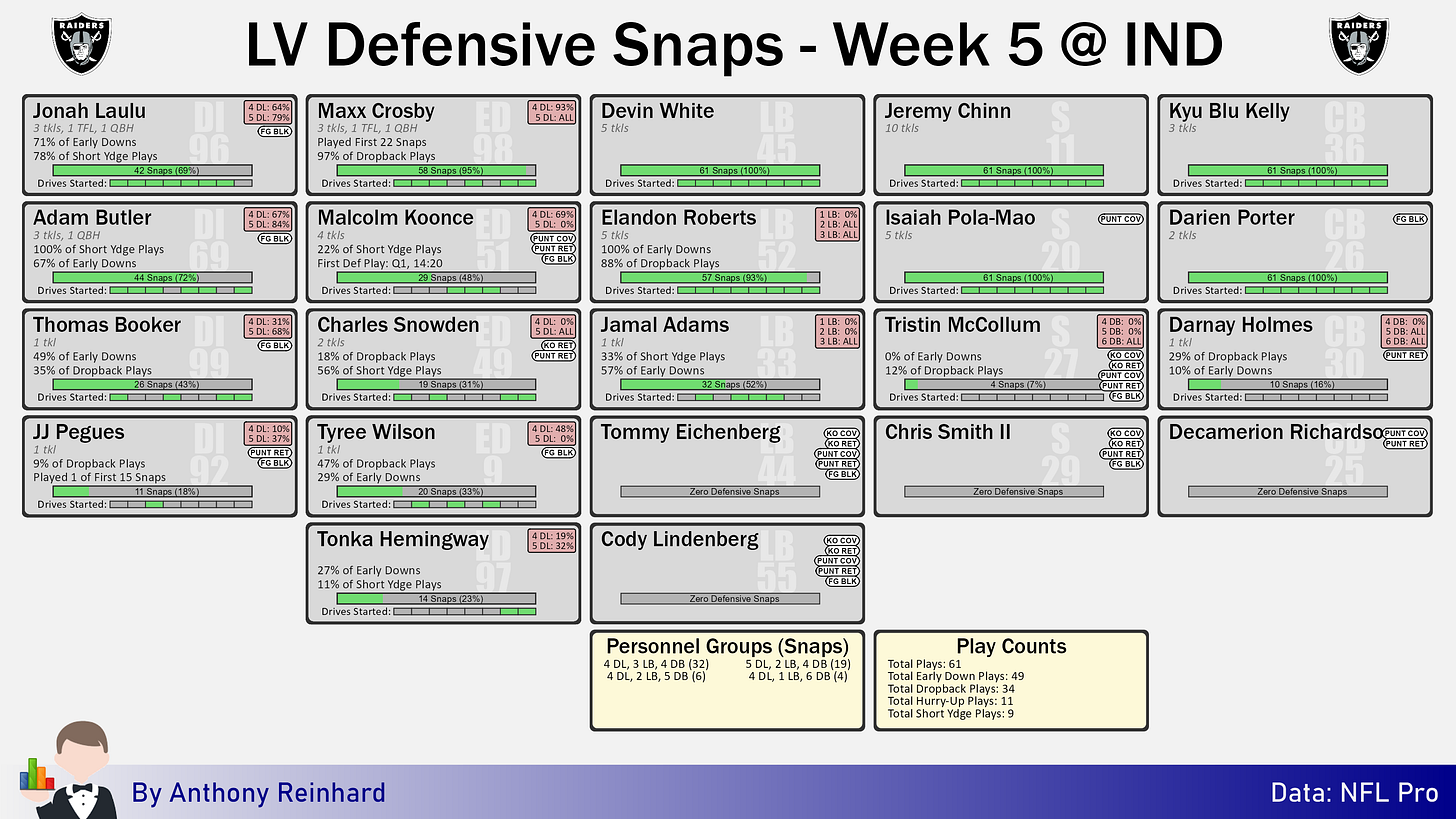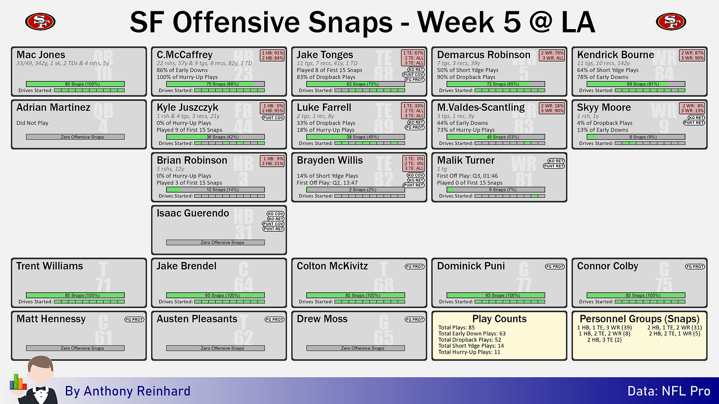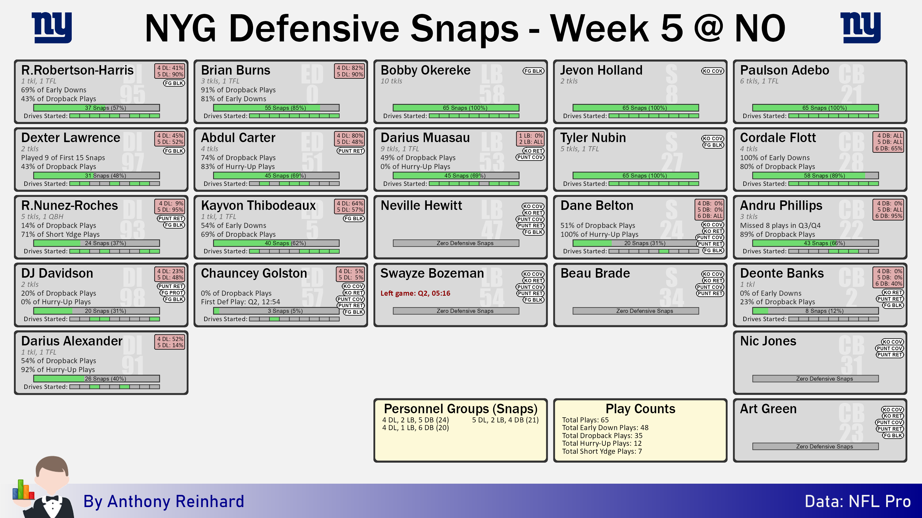 Snap Counts: Week 5Snap Count graphs for each team in Week 5Anthony ReinhardOct 06, 202511ShareThanks for reading!SubscribeSF-LAMIN-CLEHOU-BALMIA-CARLV-INDNYG-NODAL-NYJDEN-PHITEN-ARITB-SEADET-CINWAS-LACNE-BUFComing Soon!KC-JAXComing Soon!Previous