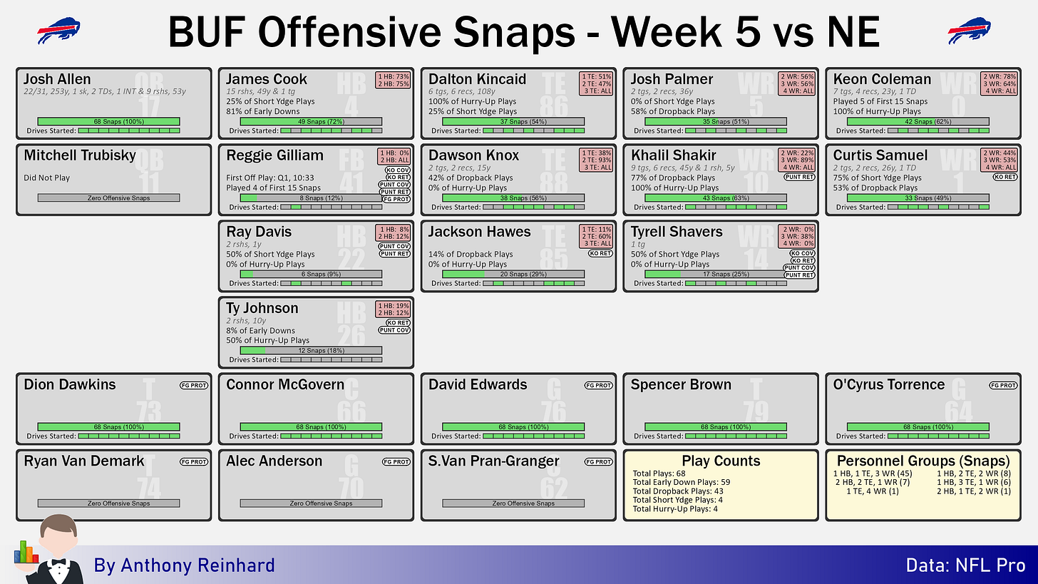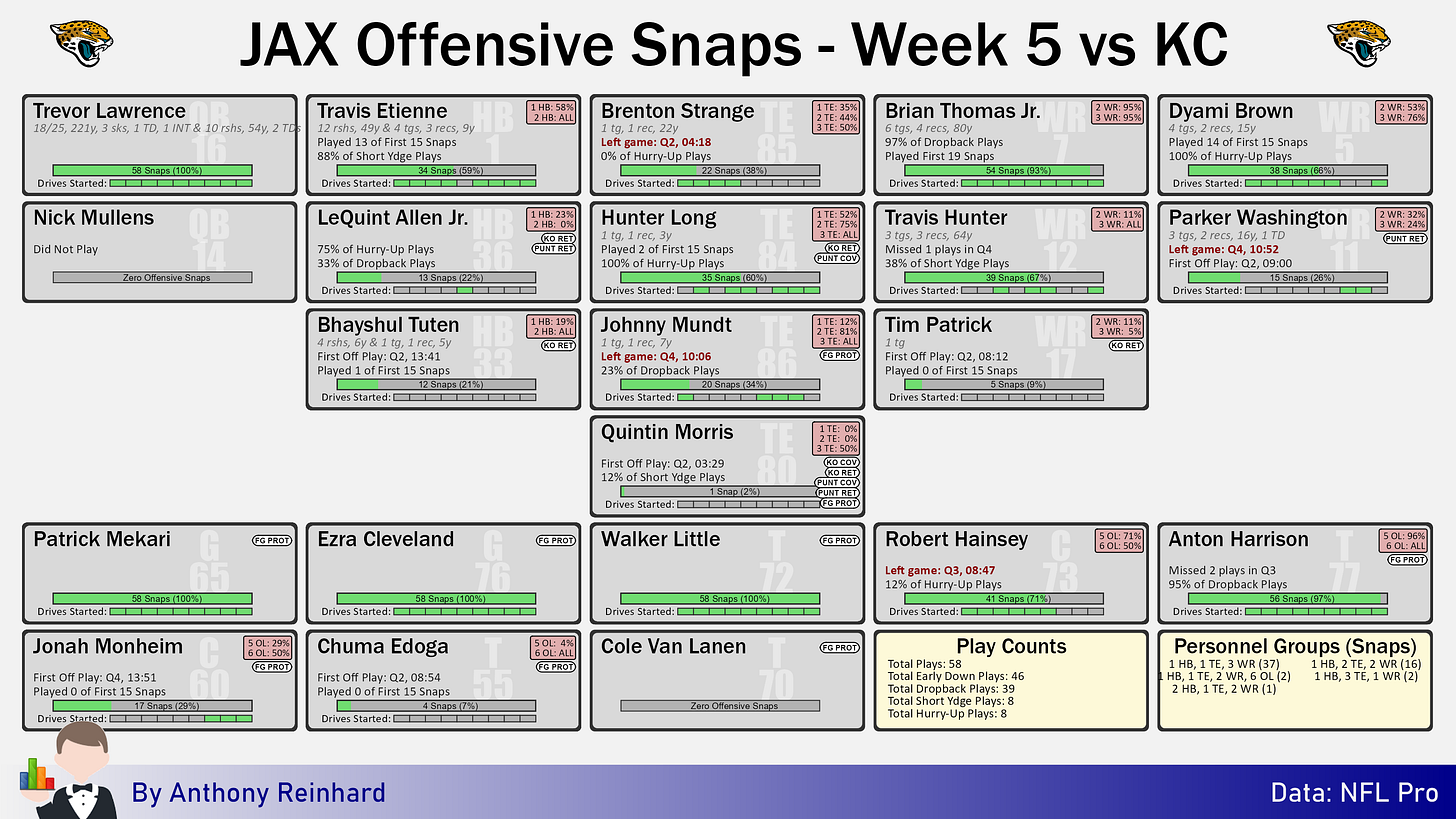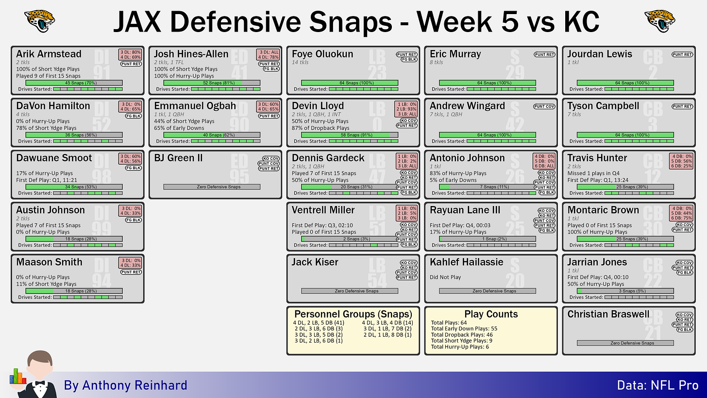 Snap Counts: Week 5Snap Count graphs for each team in Week 5Anthony ReinhardOct 06, 202561ShareThanks for reading!SubscribeSF-LAMIN-CLEHOU-BALMIA-CARLV-INDNYG-NODAL-NYJDEN-PHITEN-ARITB-SEADET-CINWAS-LACNE-BUFKC-JAXPrevious