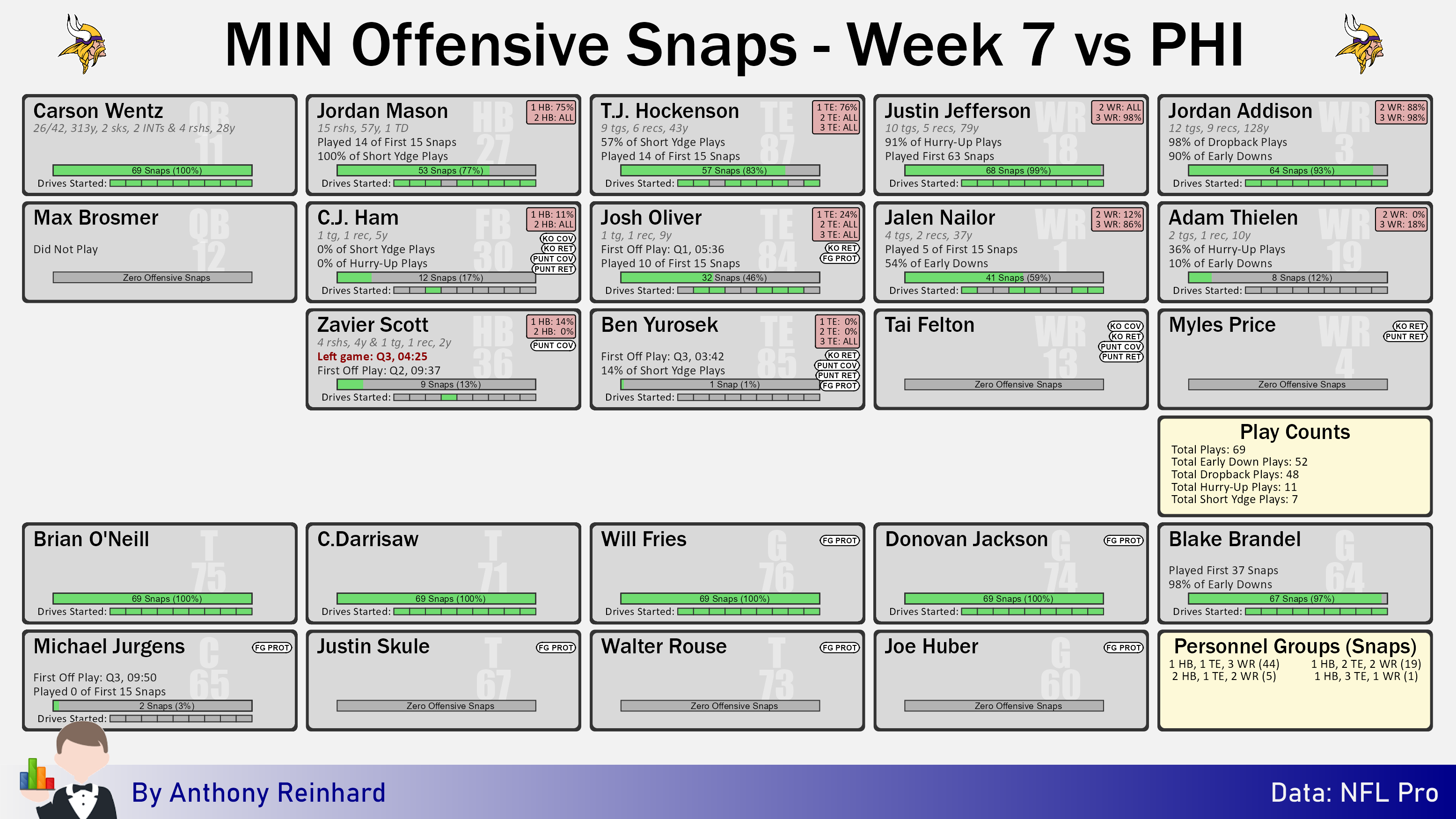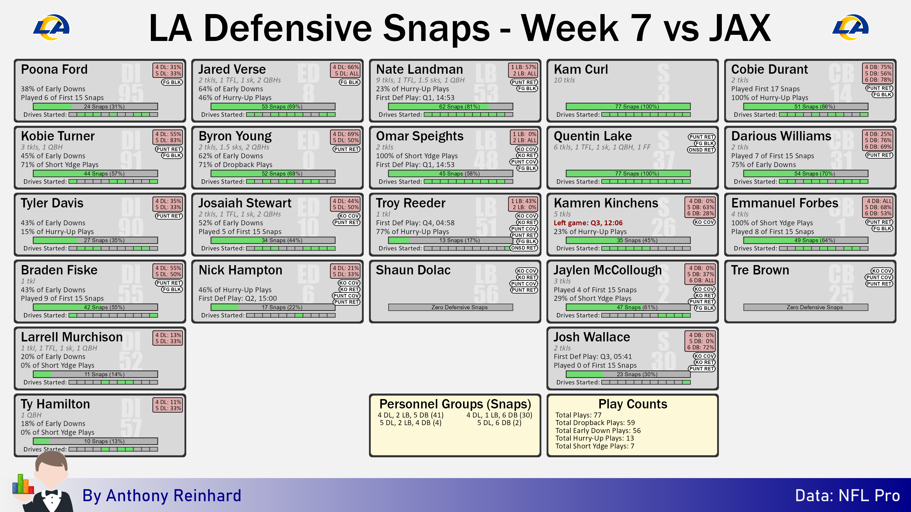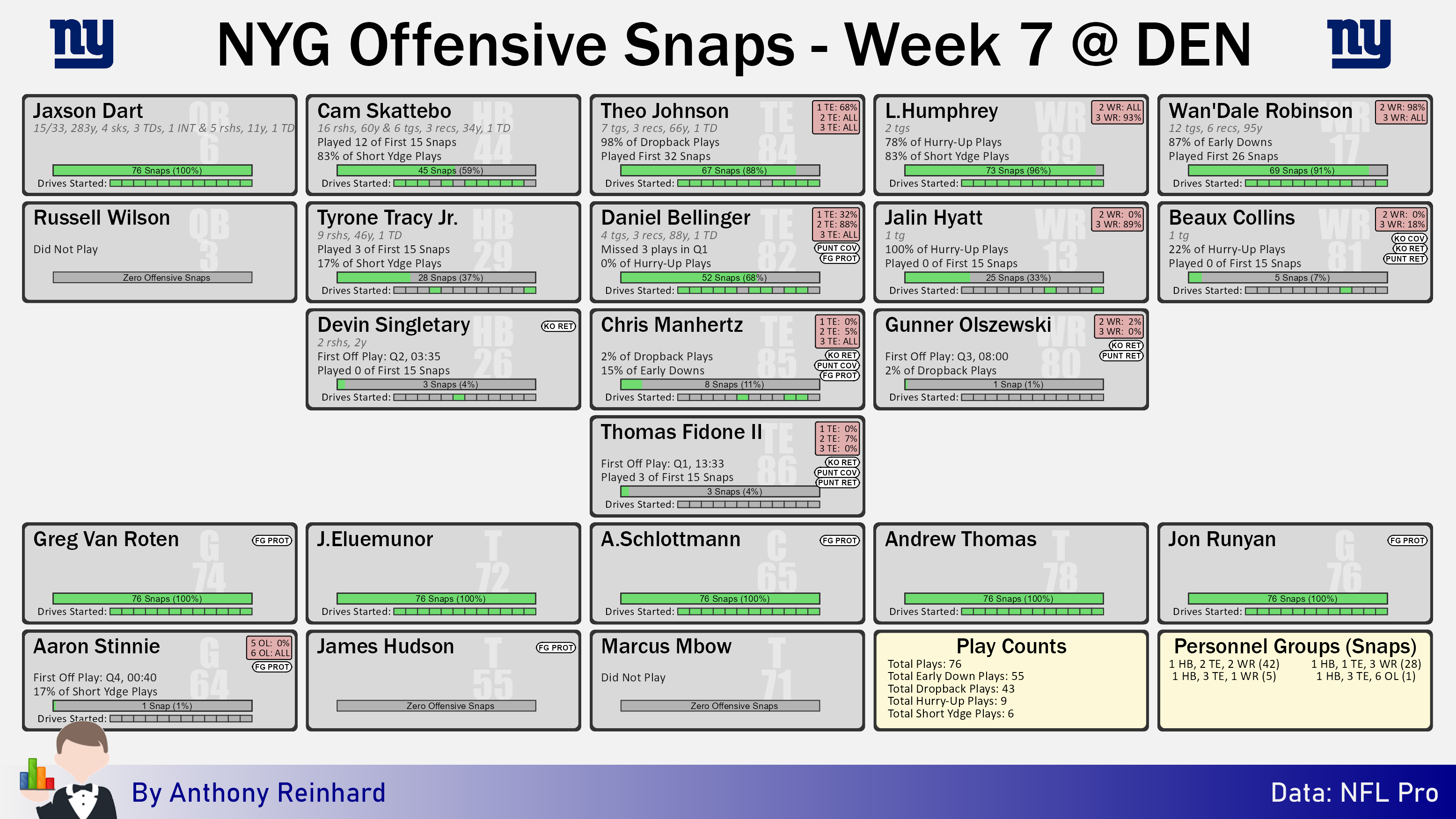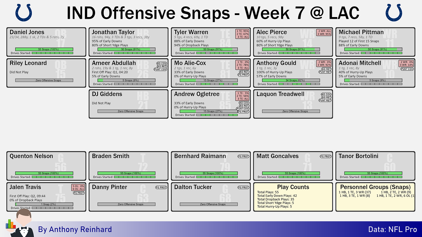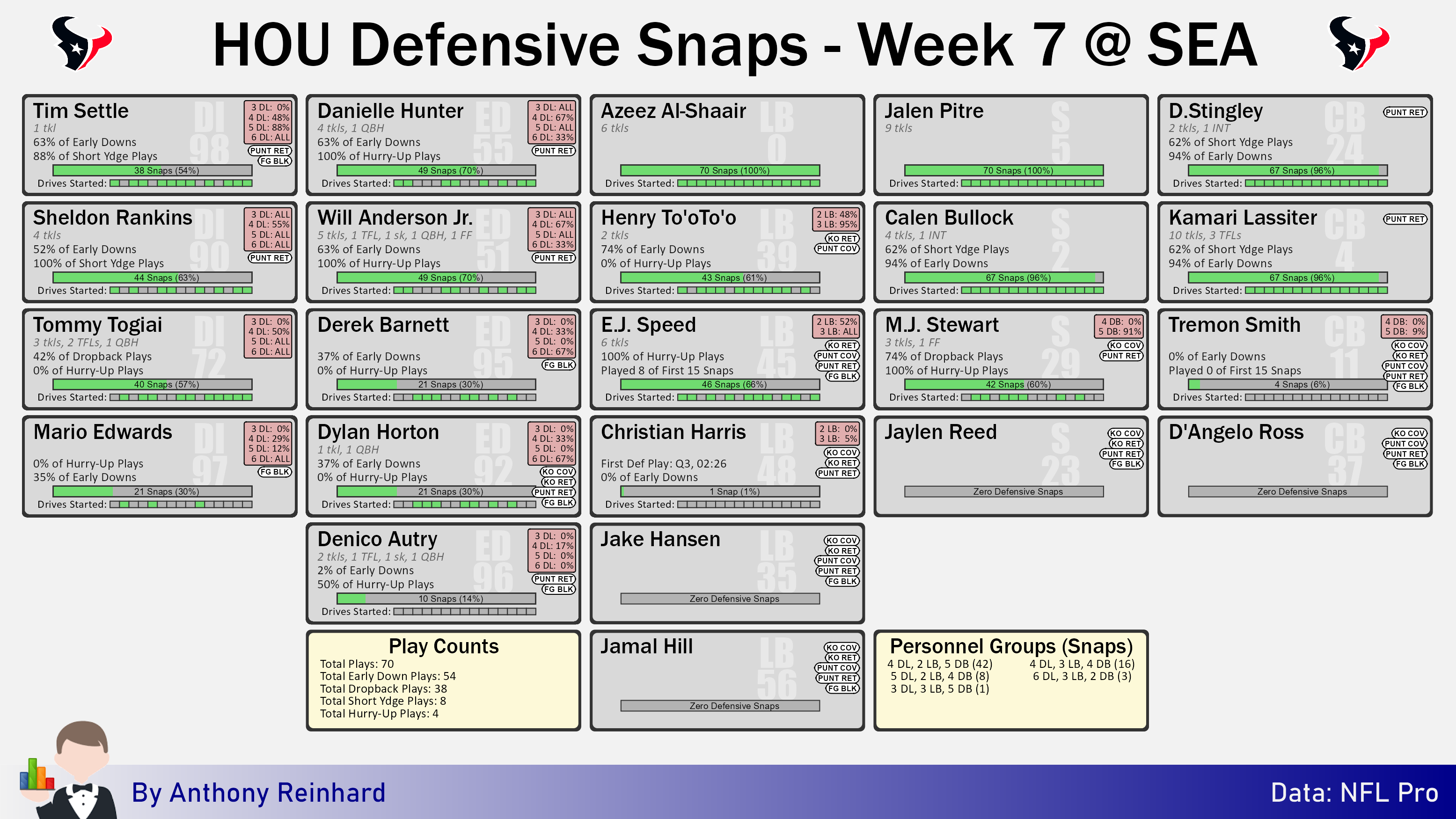 Snap Counts: Week 7Snap Count graphs for each team in Week 7Anthony ReinhardOct 20, 20251SharePIT-CINLA-JAXNO-CHIMIA-CLELV-KCPHI-MINCAR-NYJNE-TENNYG-DENIND-LACGB-ARIWAS-DALATL-SFTB-DETHOU-SEAThanks for reading!SubscribePreviousNext