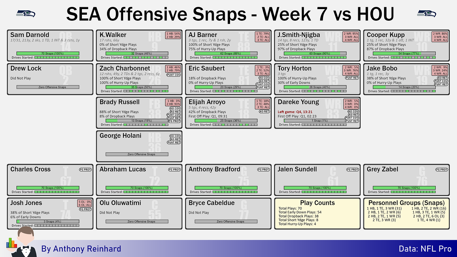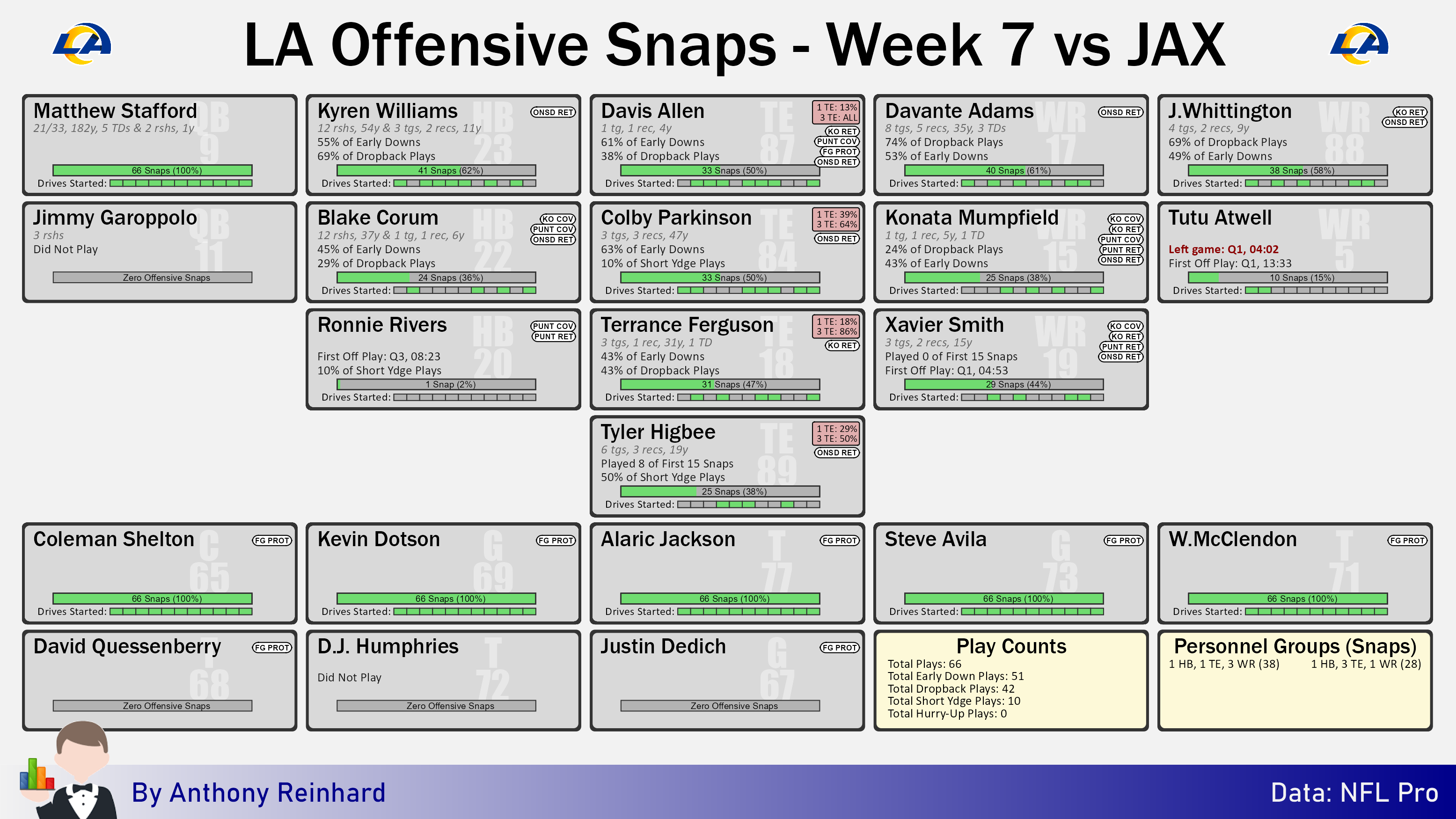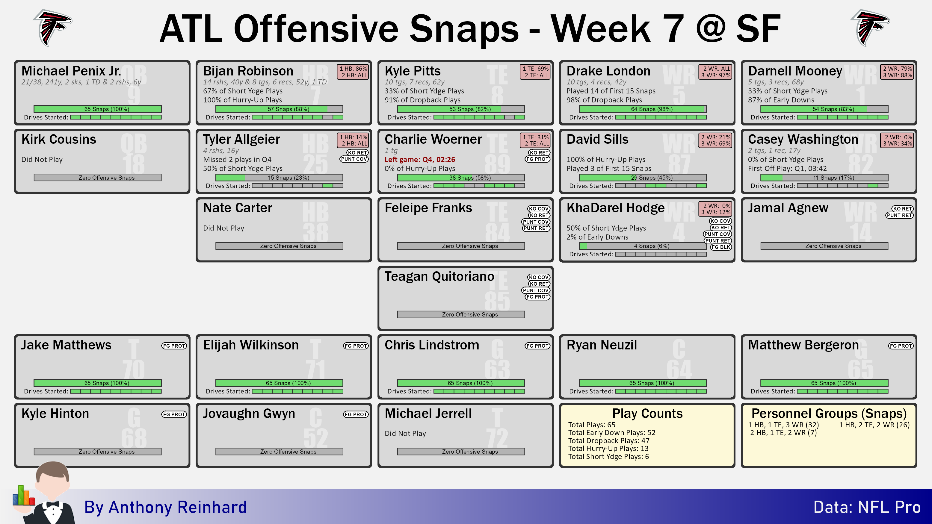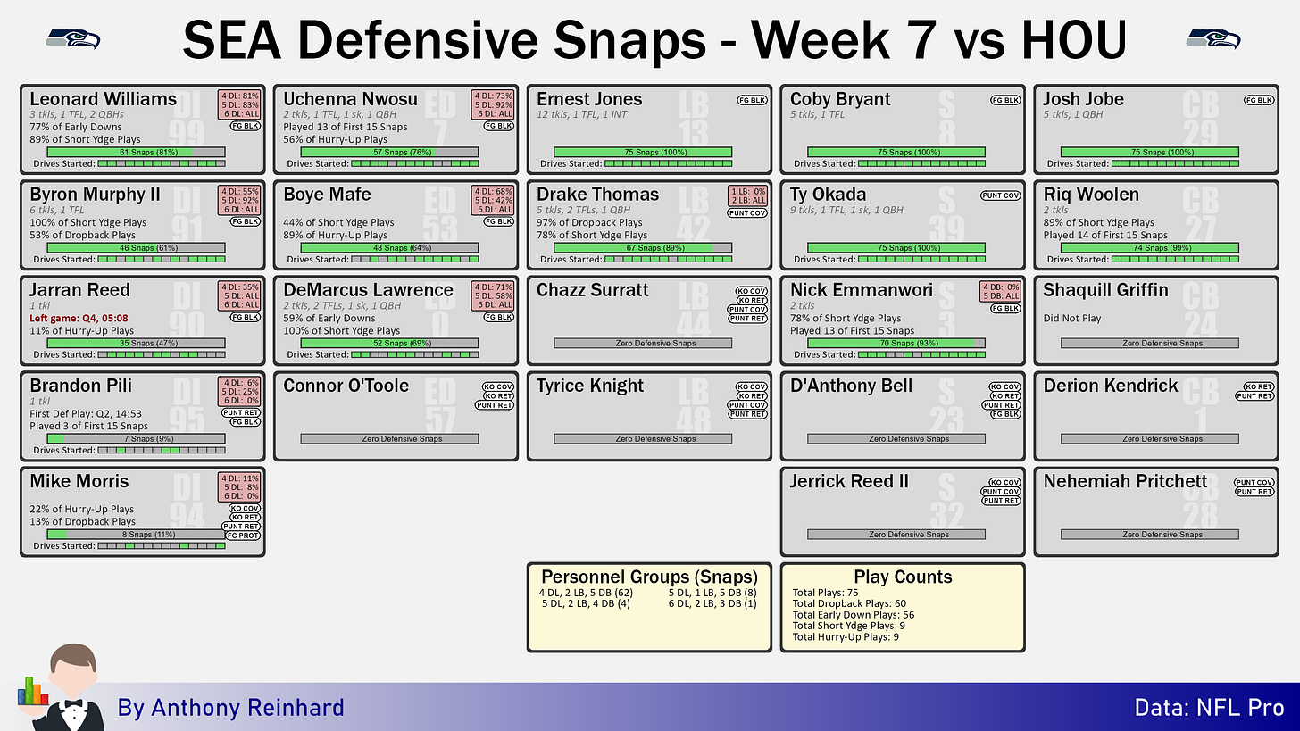 Snap Counts: Week 7Snap Count graphs for each team in Week 7Anthony ReinhardOct 20, 20251SharePIT-CINLA-JAXNO-CHIMIA-CLELV-KCPHI-MINCAR-NYJNE-TENNYG-DENIND-LACGB-ARIWAS-DALATL-SFTB-DETHOU-SEAThanks for reading!SubscribePreviousNext