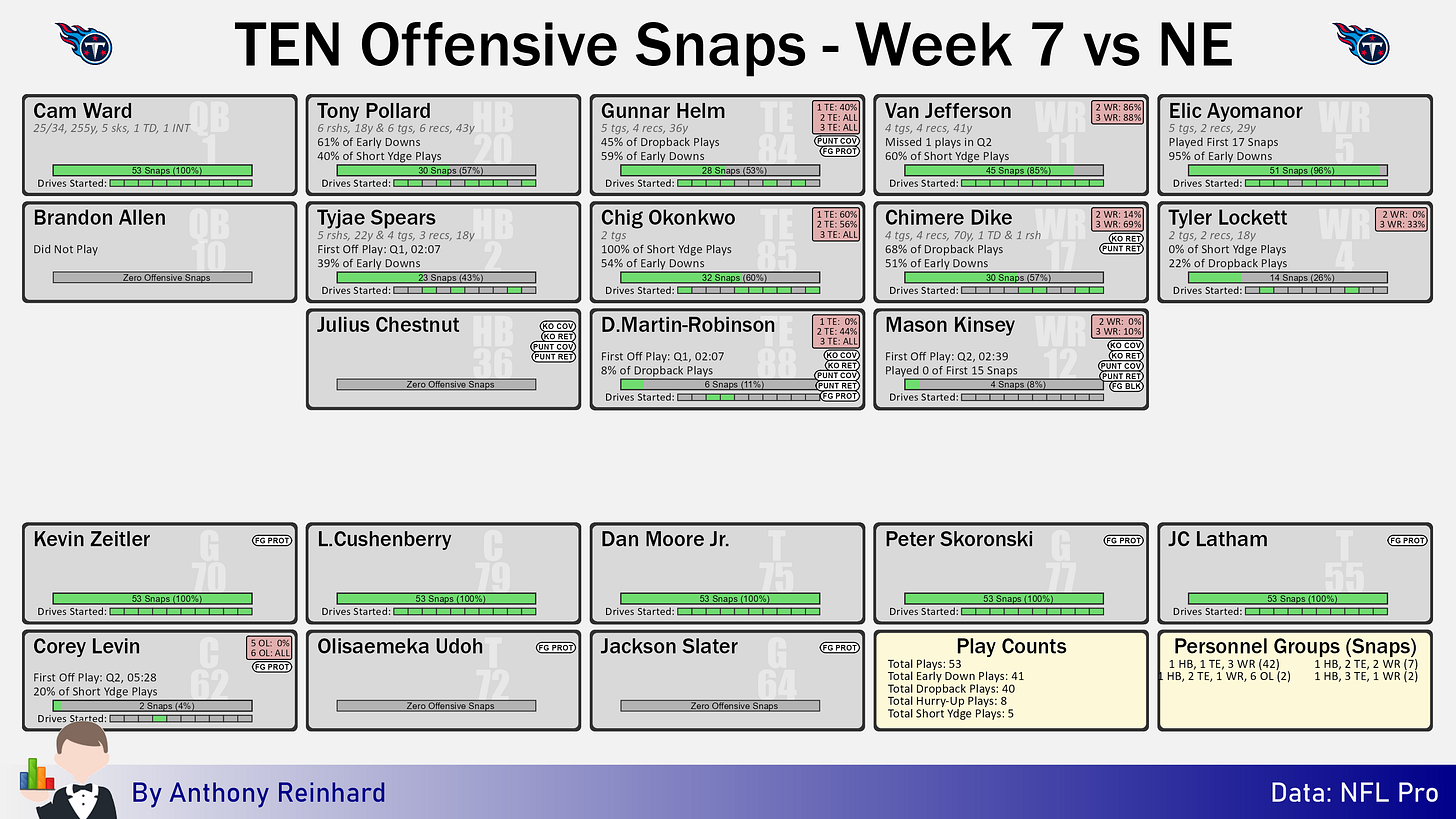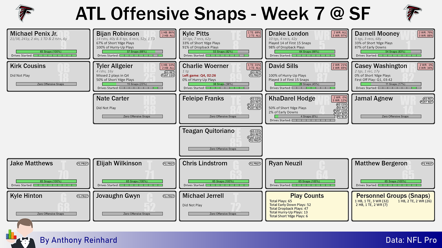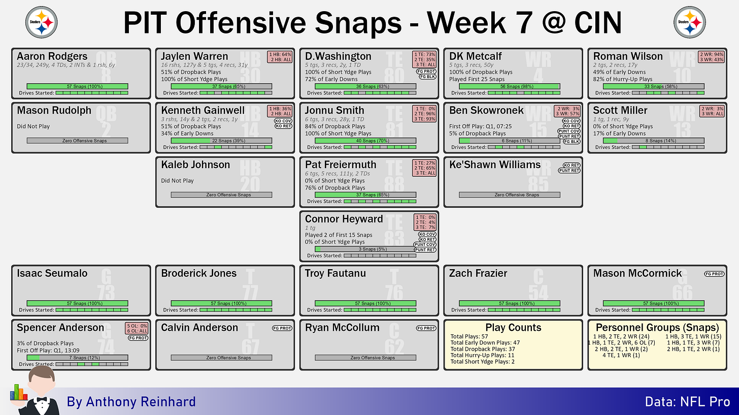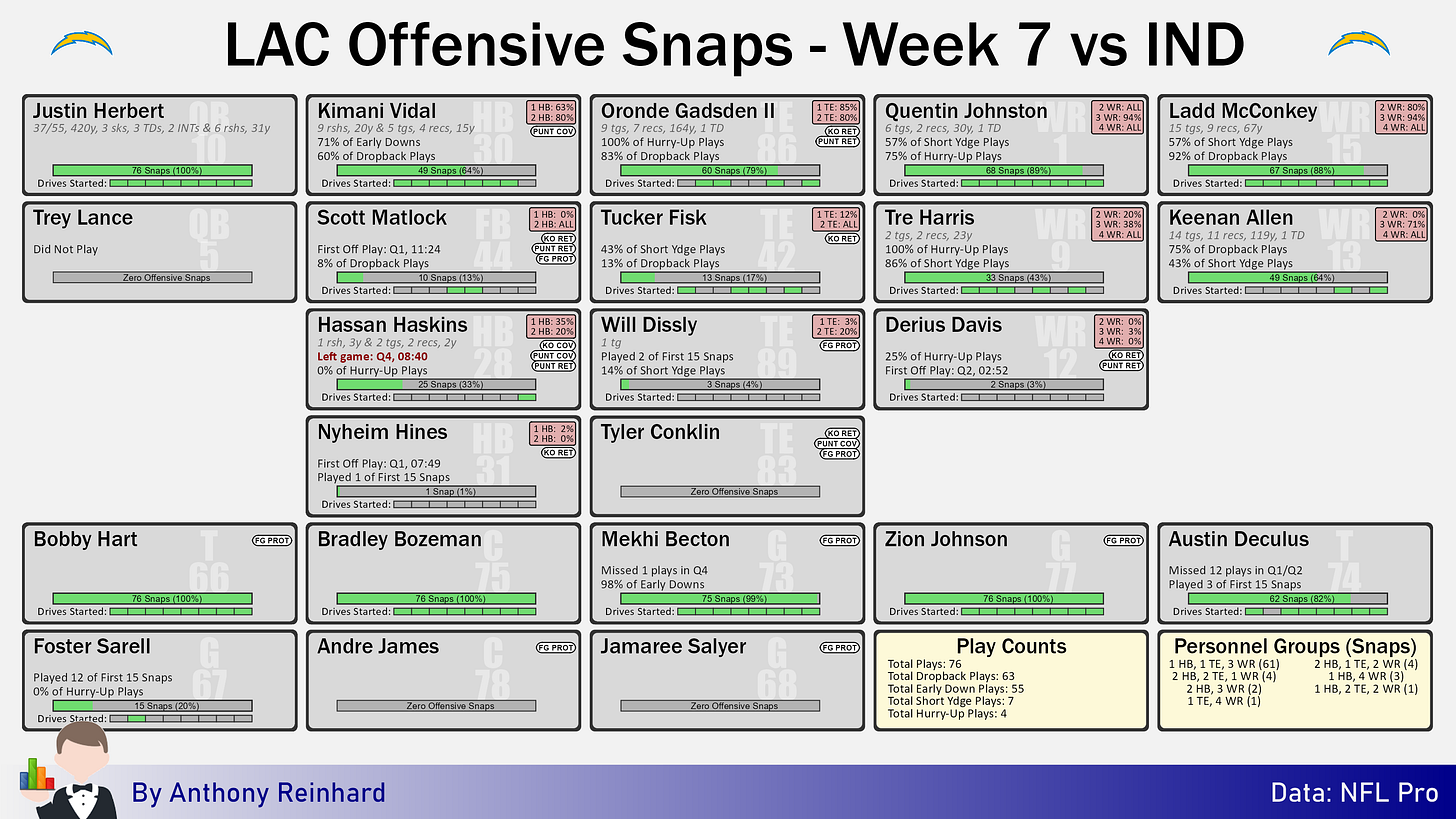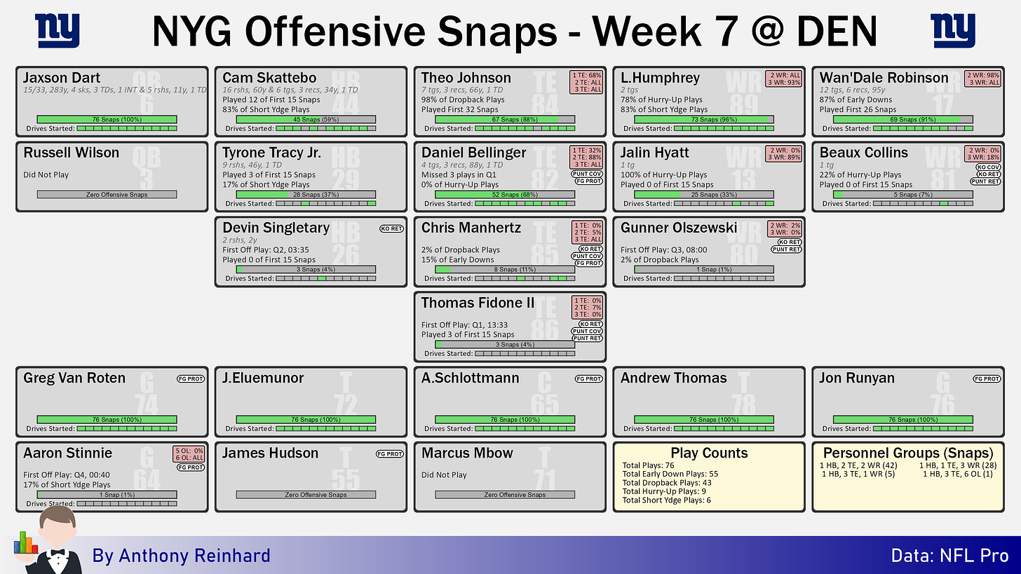 Snap Counts: Week 7Snap Count graphs for each team in Week 7Anthony ReinhardOct 20, 20251SharePIT-CINLA-JAXNO-CHIMIA-CLELV-KCPHI-MINCAR-NYJNE-TENNYG-DENIND-LACGB-ARIWAS-DALATL-SFTB-DETHOU-SEAThanks for reading!SubscribePreviousNext