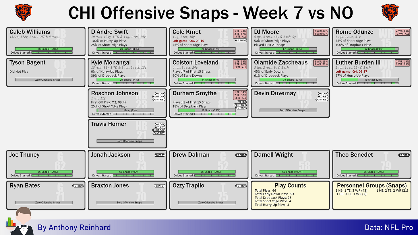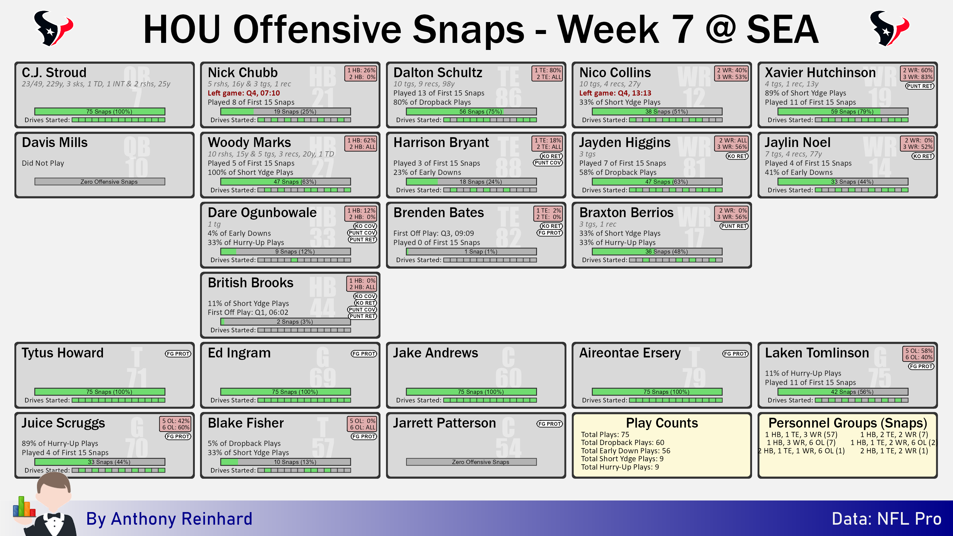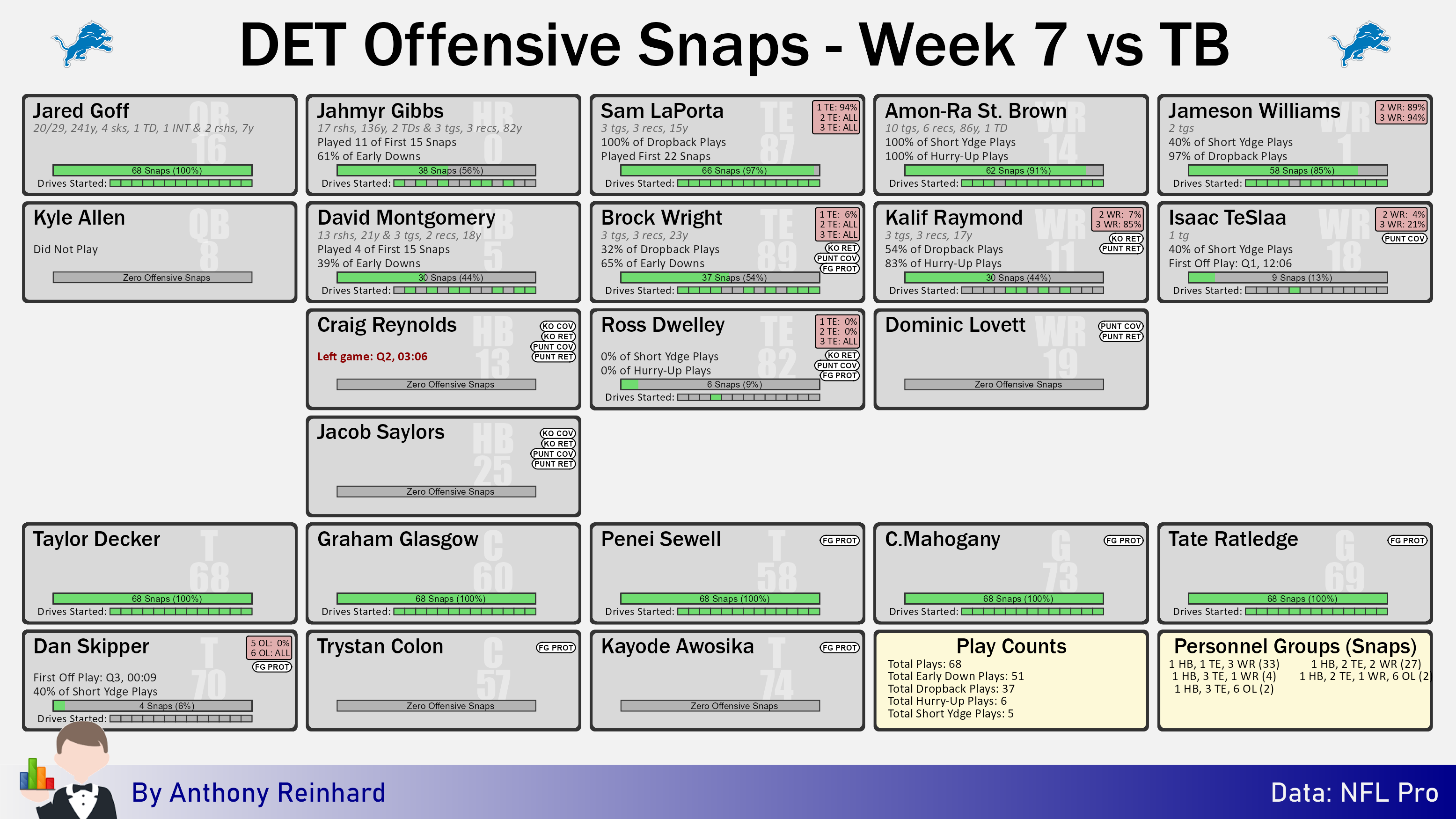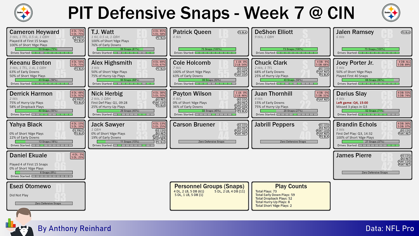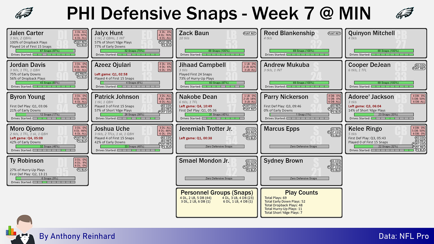 Snap Counts: Week 7Snap Count graphs for each team in Week 7Anthony ReinhardOct 20, 20251SharePIT-CINLA-JAXNO-CHIMIA-CLELV-KCPHI-MINCAR-NYJNE-TENNYG-DENIND-LACGB-ARIWAS-DALATL-SFTB-DETHOU-SEAThanks for reading!SubscribePreviousNext