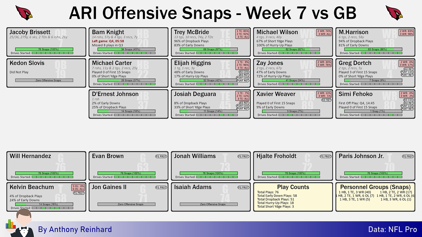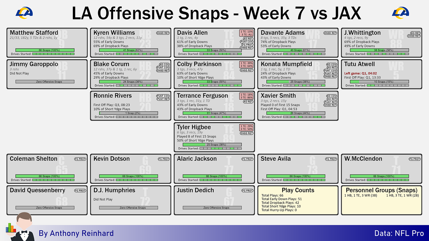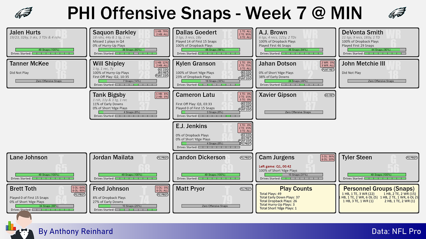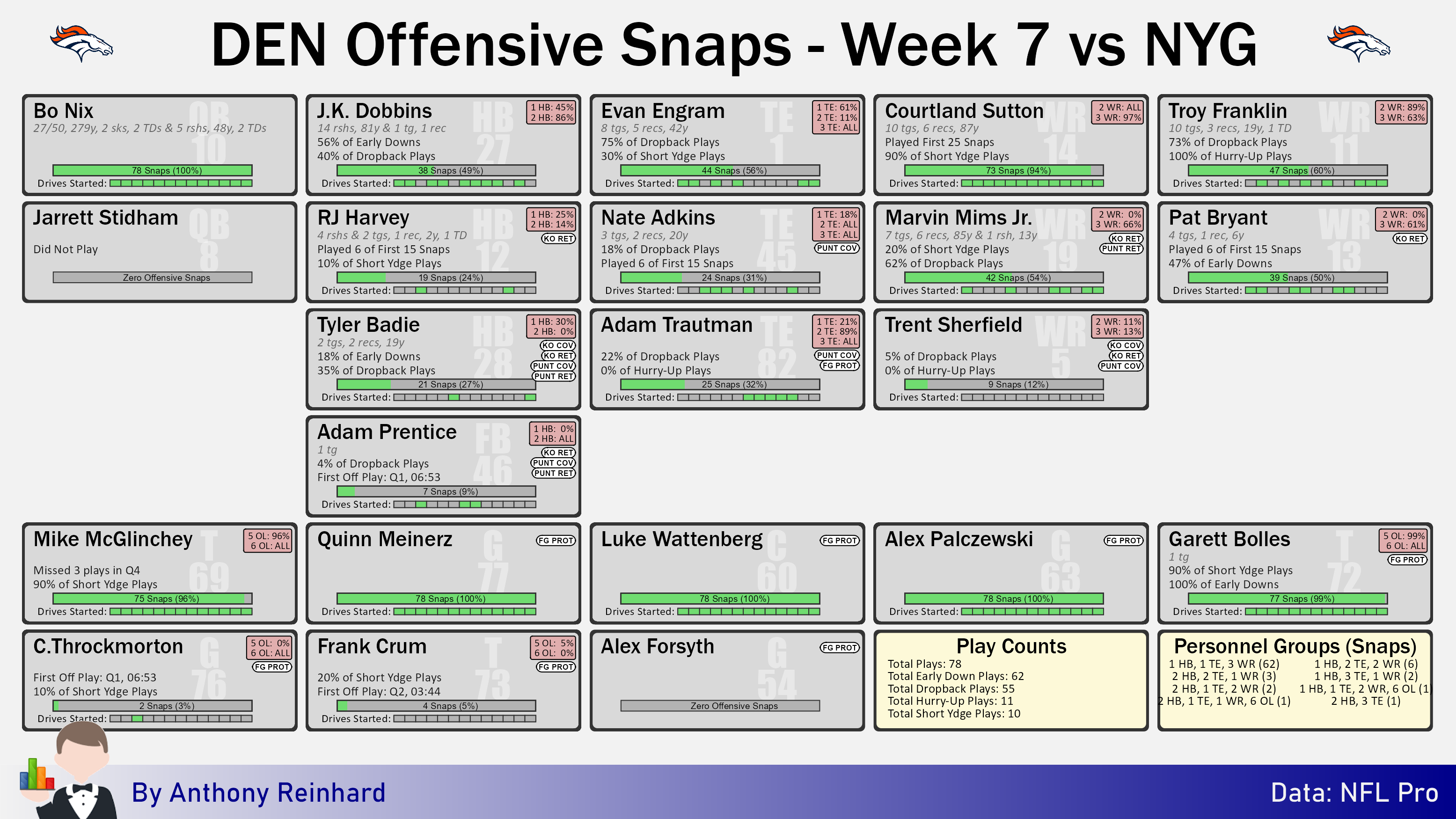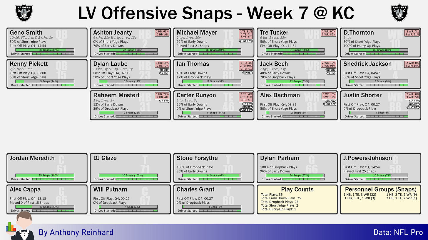 Snap Counts: Week 7Snap Count graphs for each team in Week 7Anthony ReinhardOct 20, 20251SharePIT-CINLA-JAXNO-CHIMIA-CLELV-KCPHI-MINCAR-NYJNE-TENNYG-DENIND-LACGB-ARIWAS-DALATL-SFTB-DETHOU-SEAThanks for reading!SubscribePreviousNext